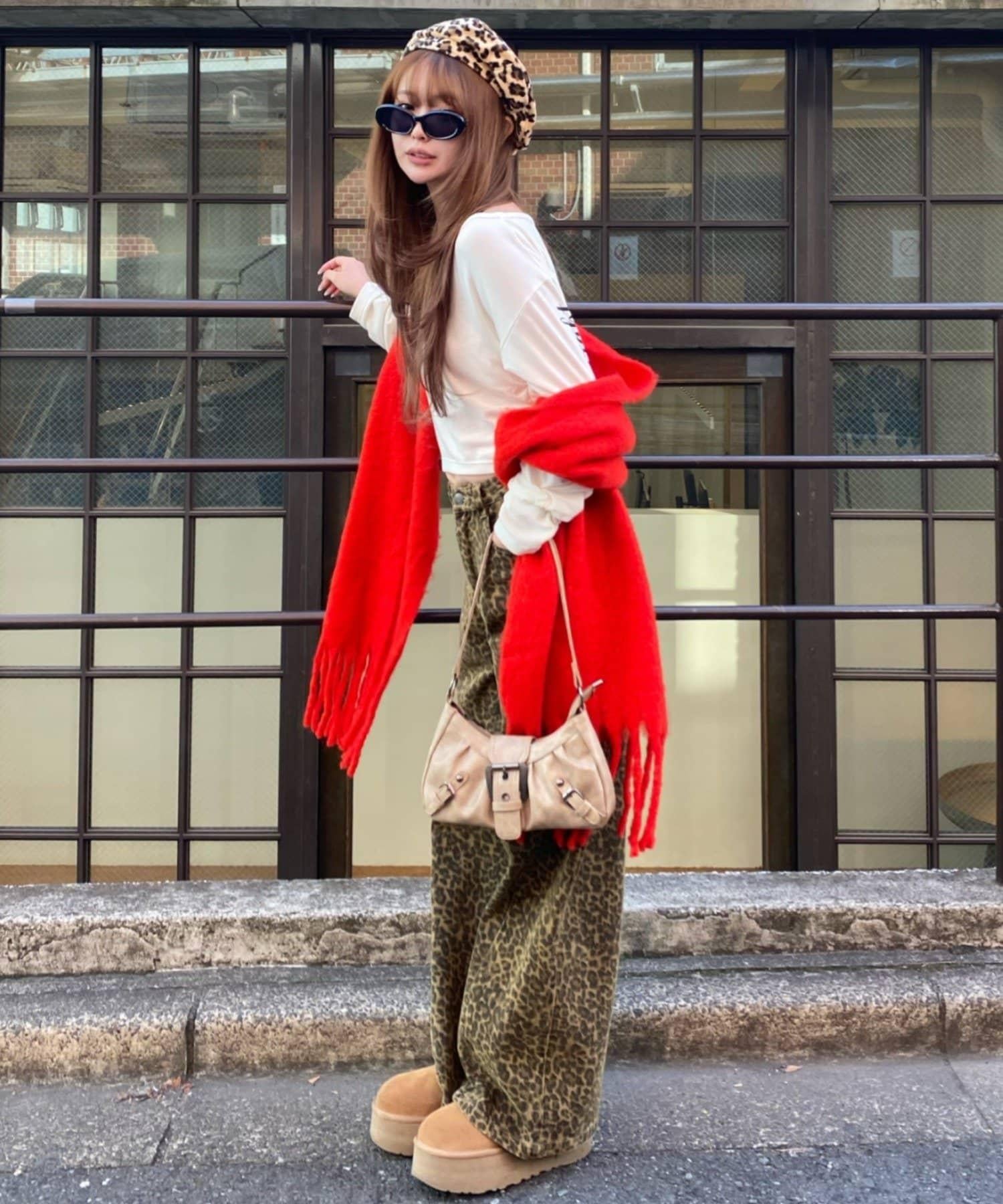 寬鬆造型,搭配寬牛仔褲。