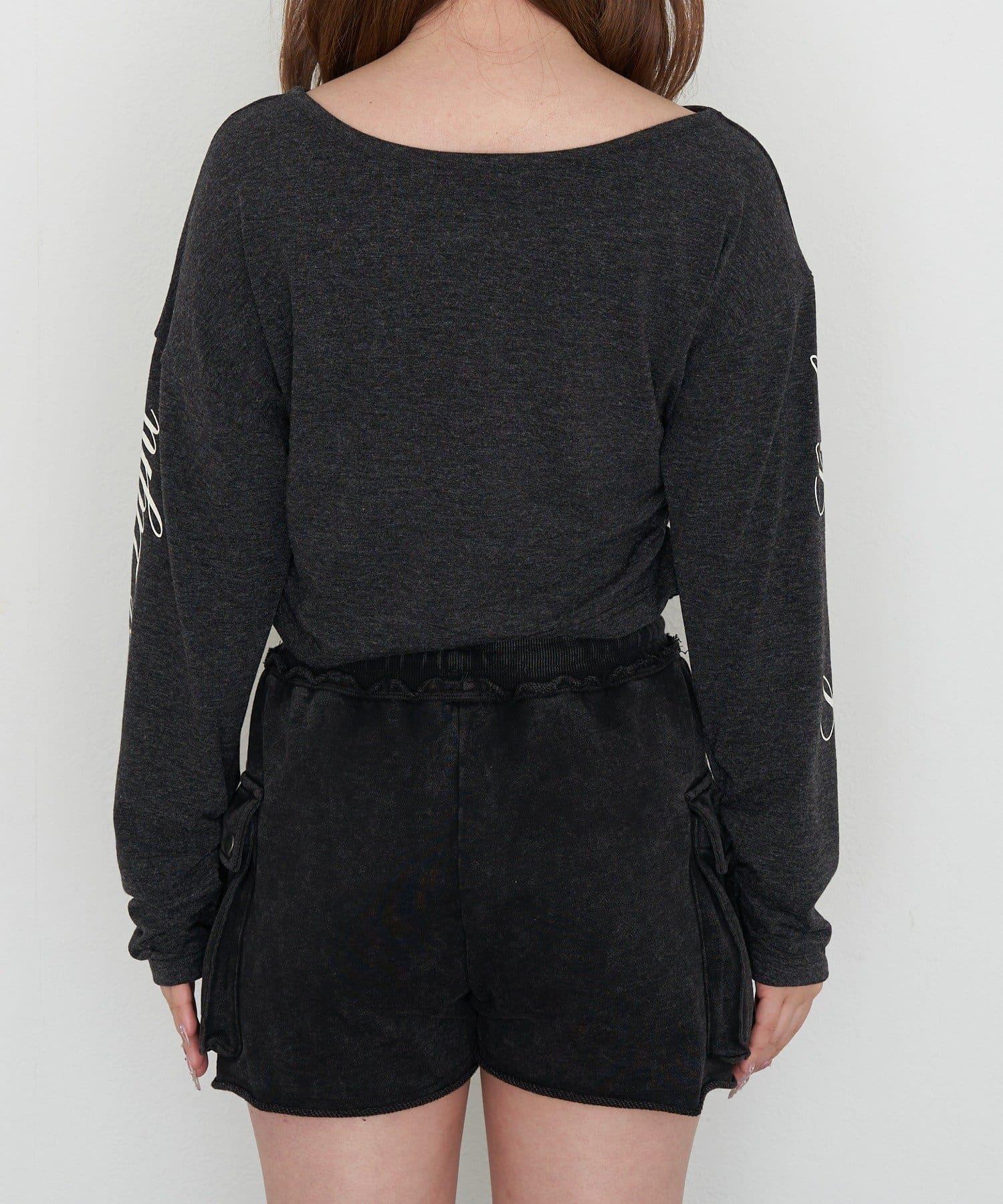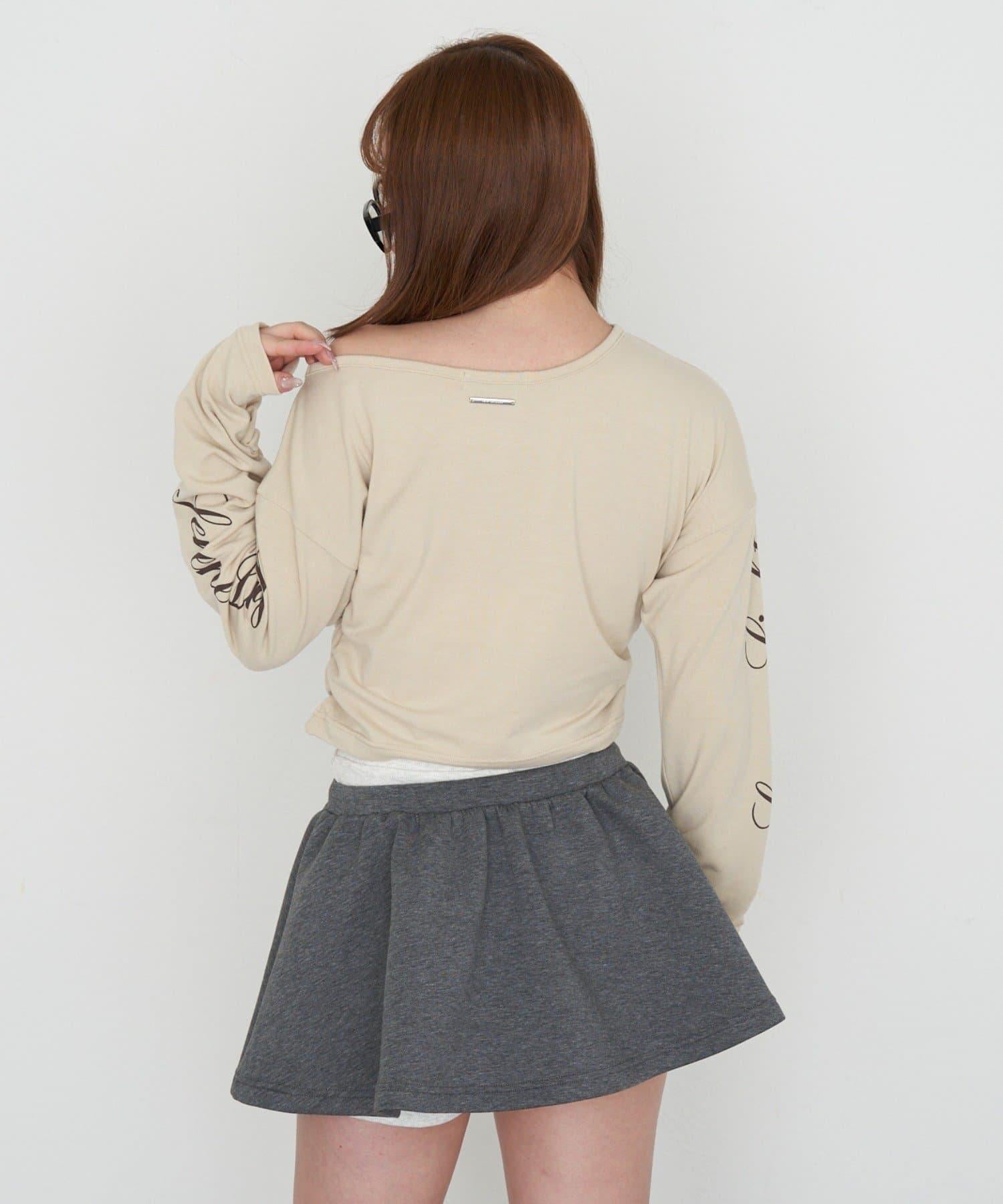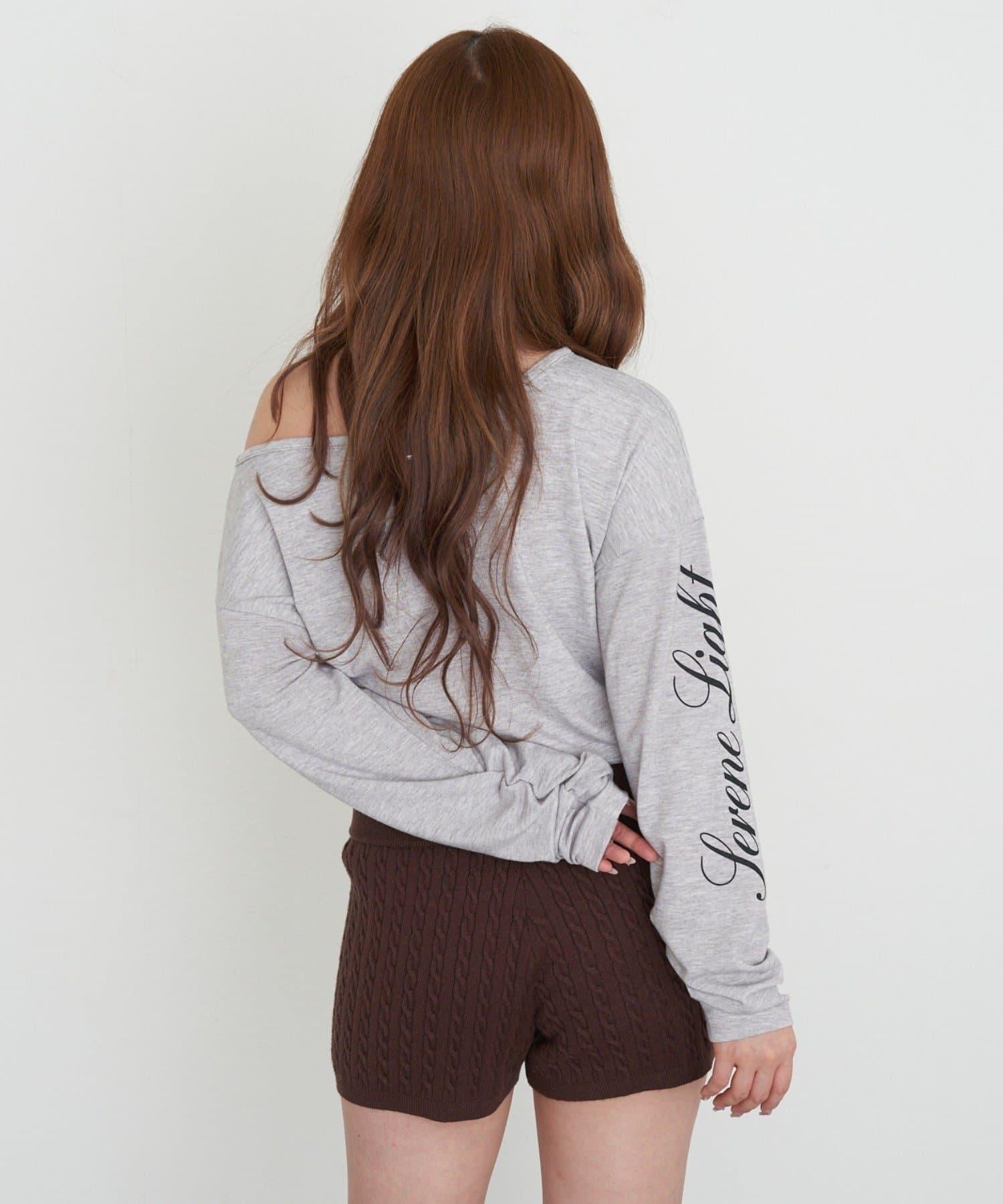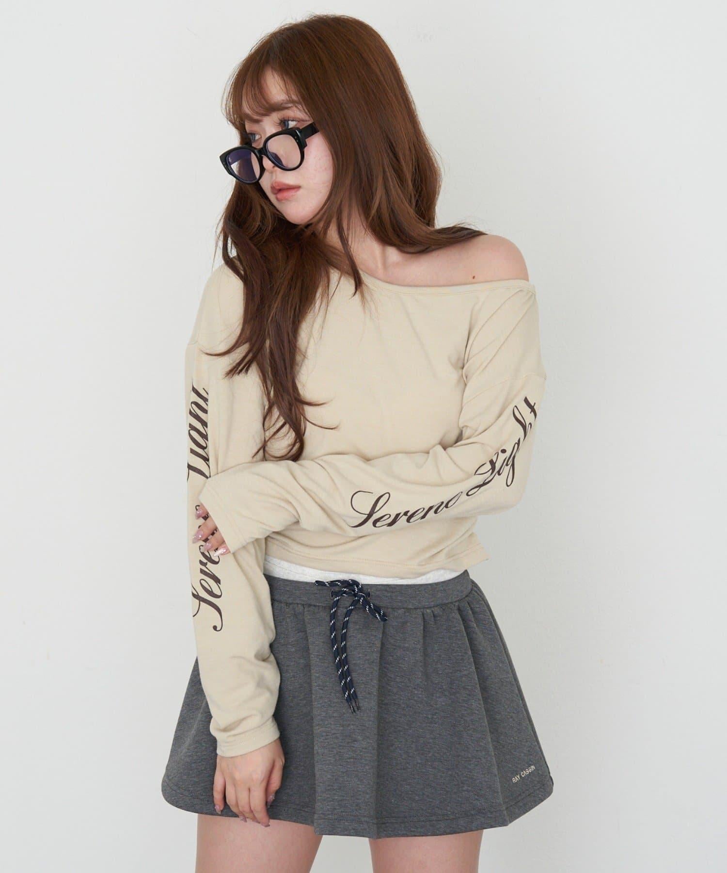 單肩印花長袖T恤