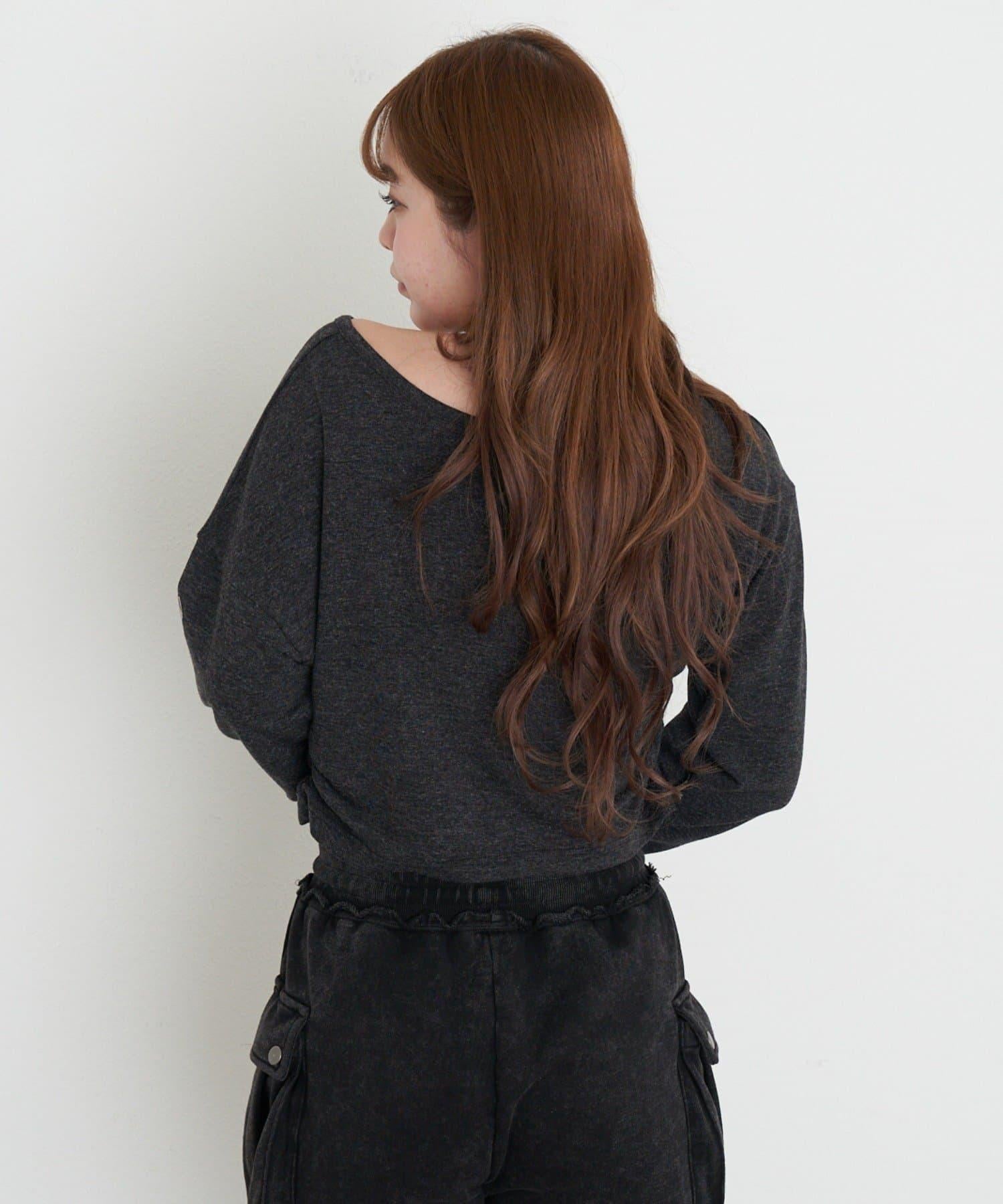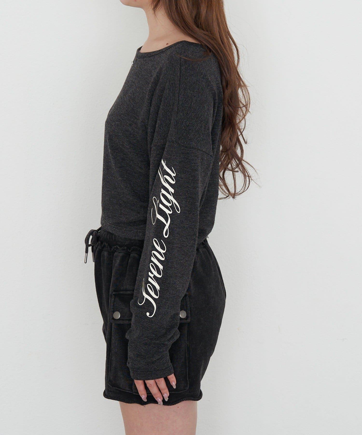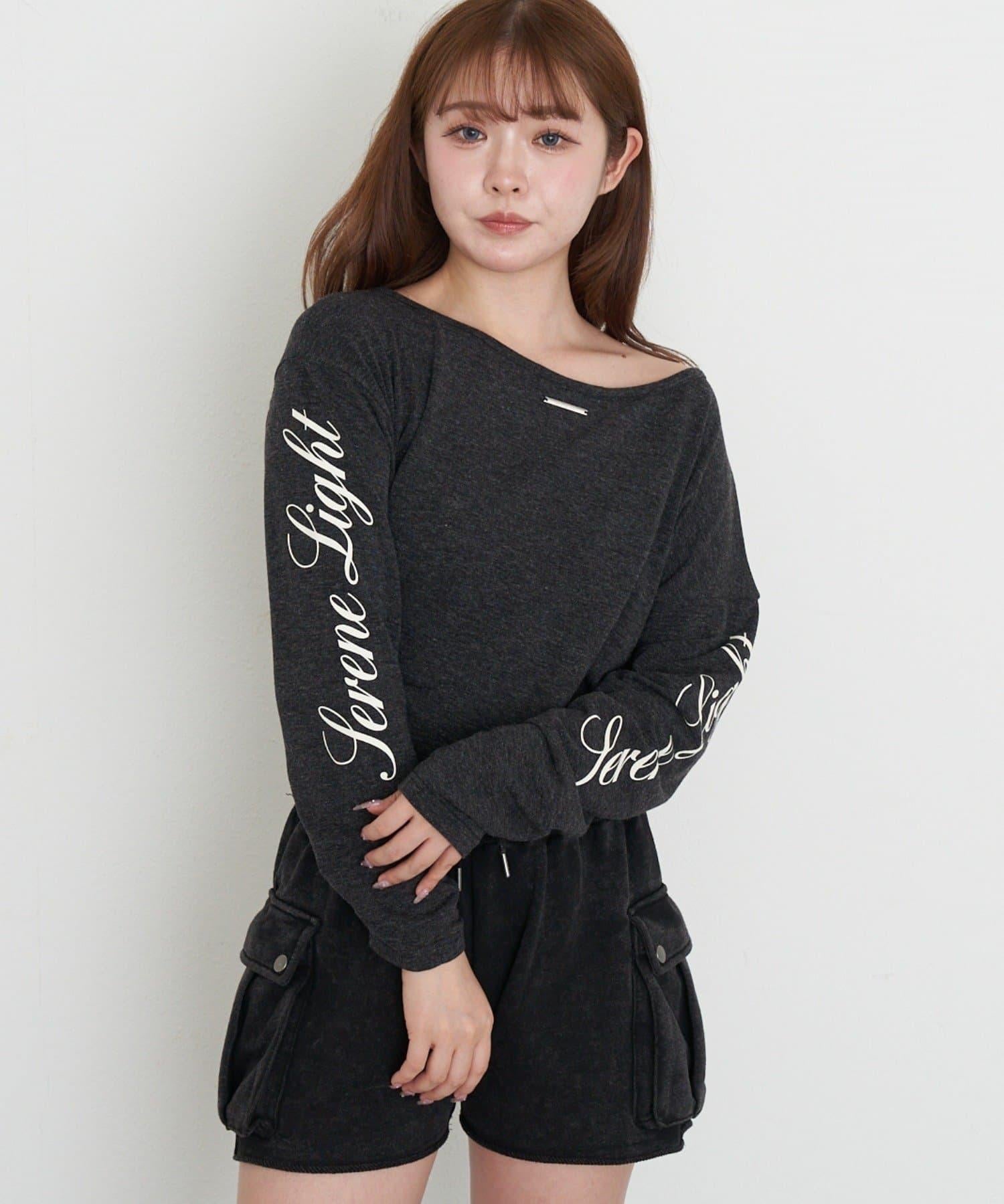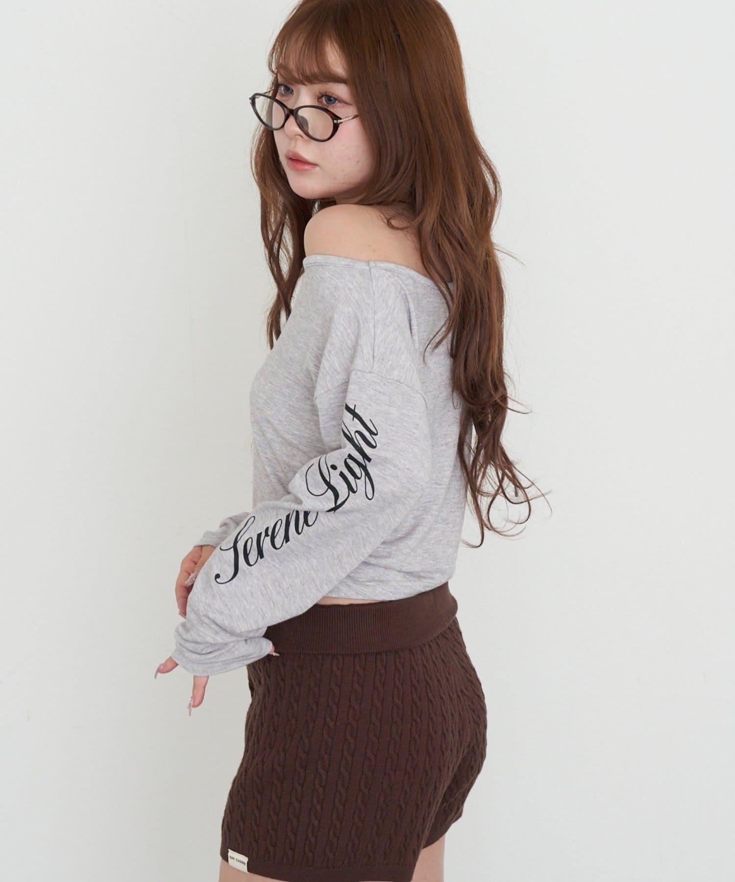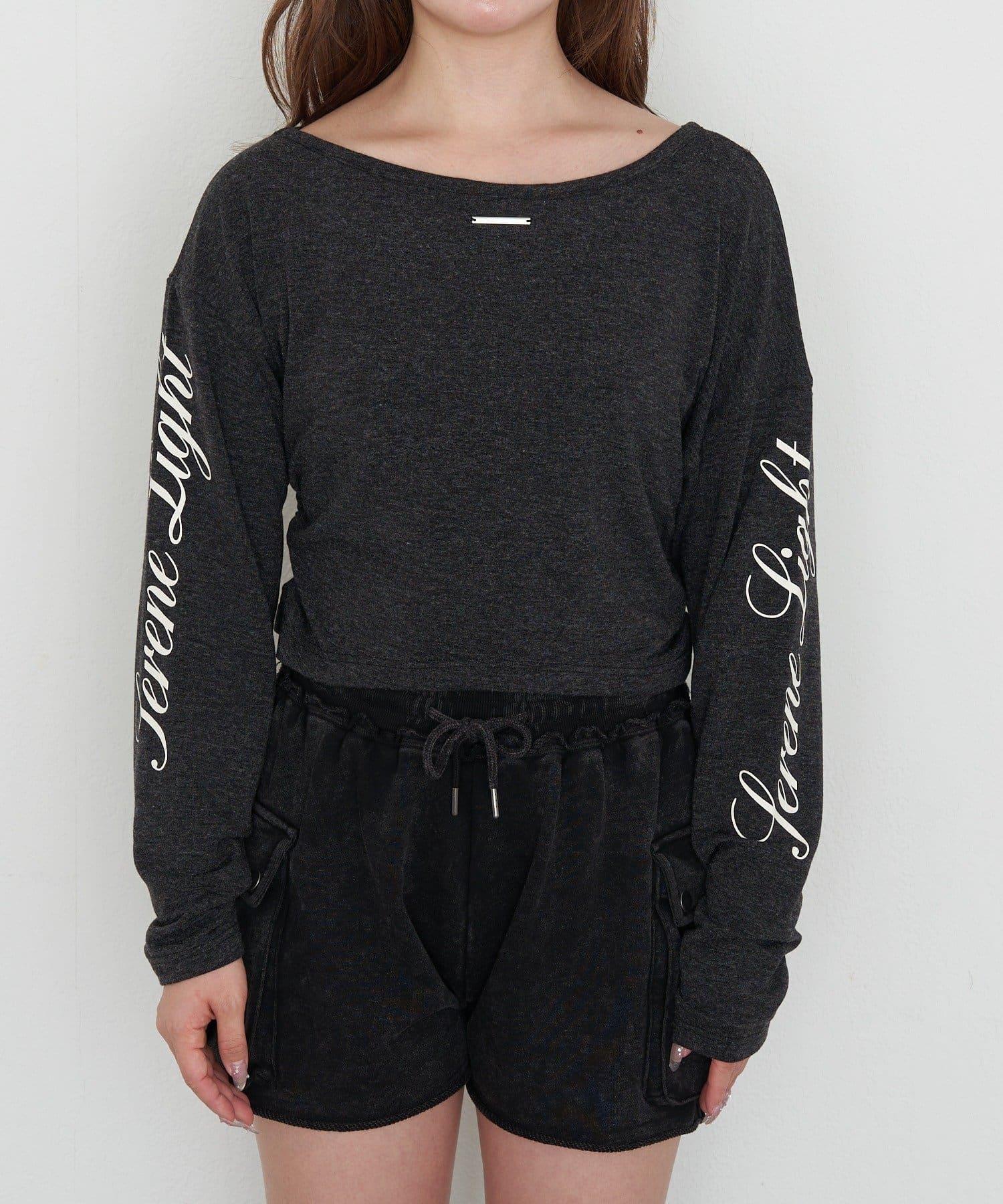 單肩印花長袖T恤