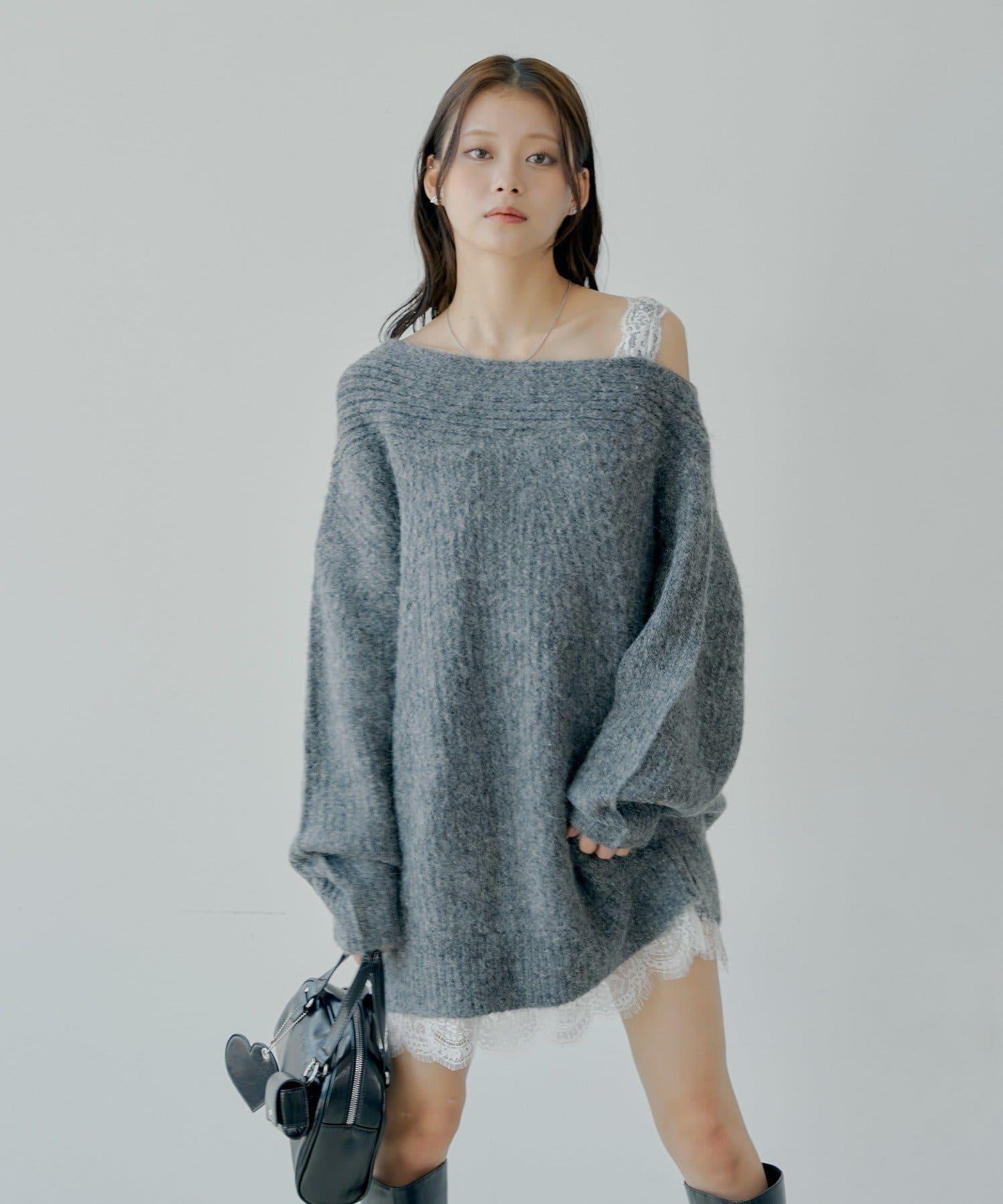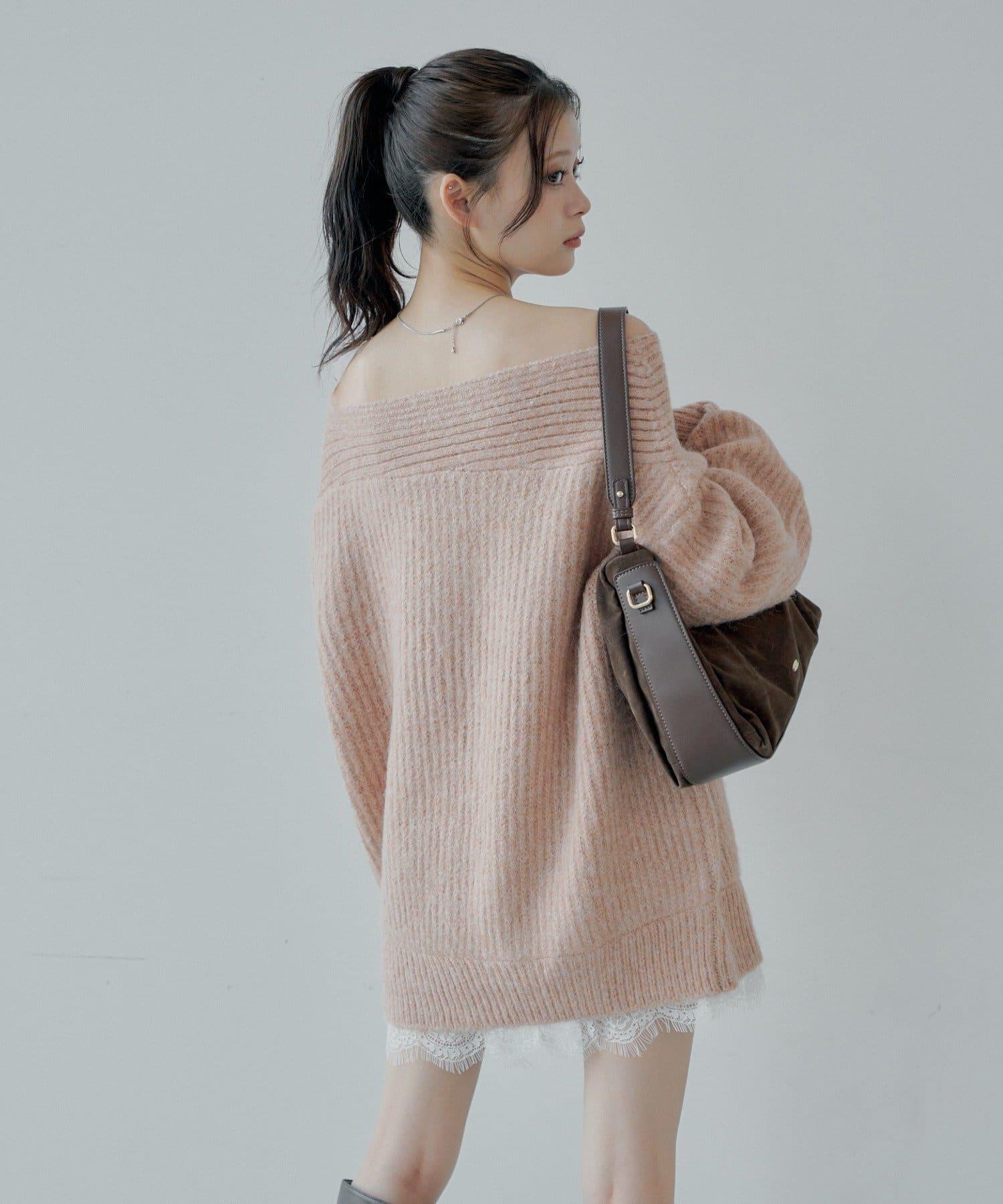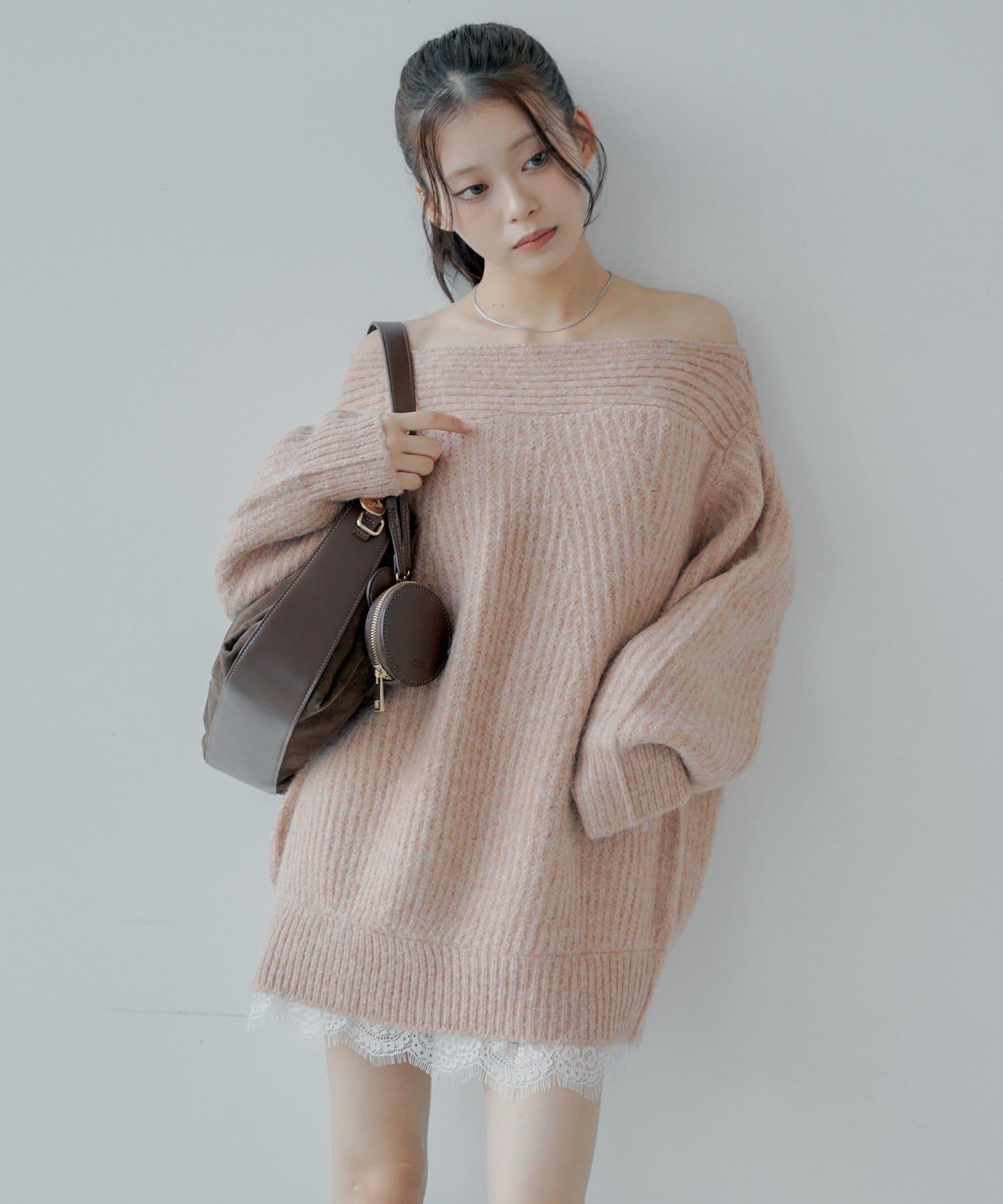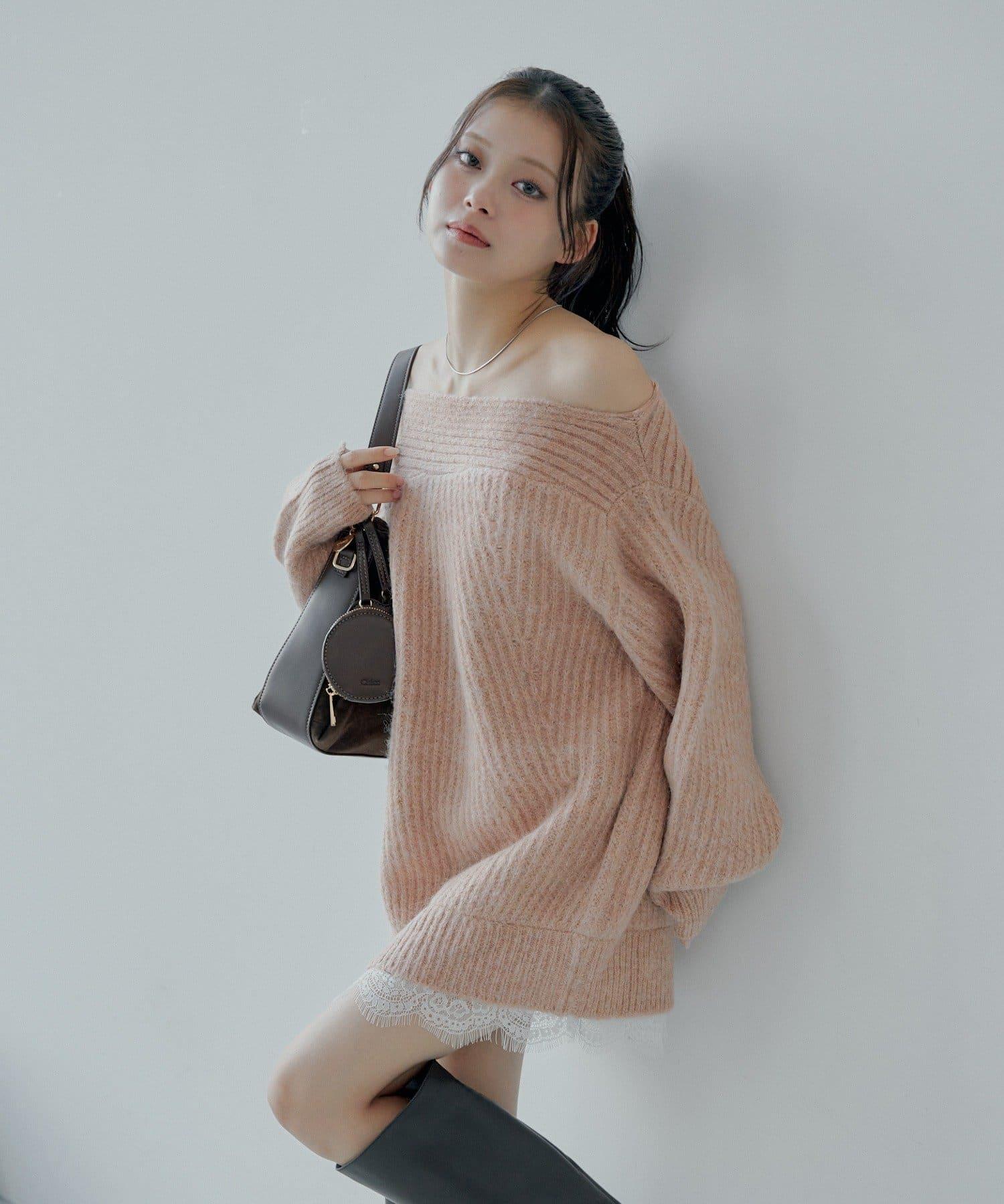 針織衫也適合露肩穿著。