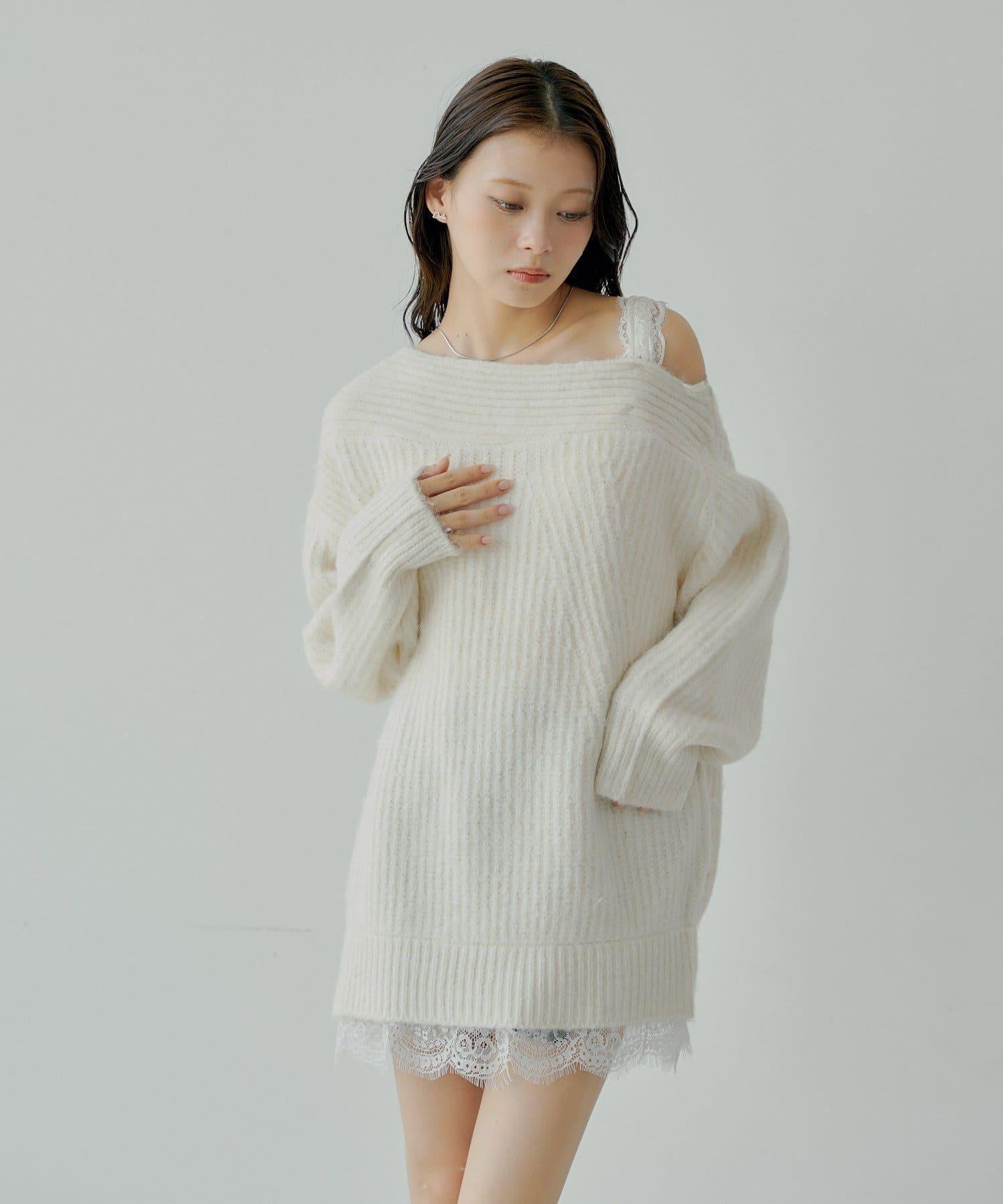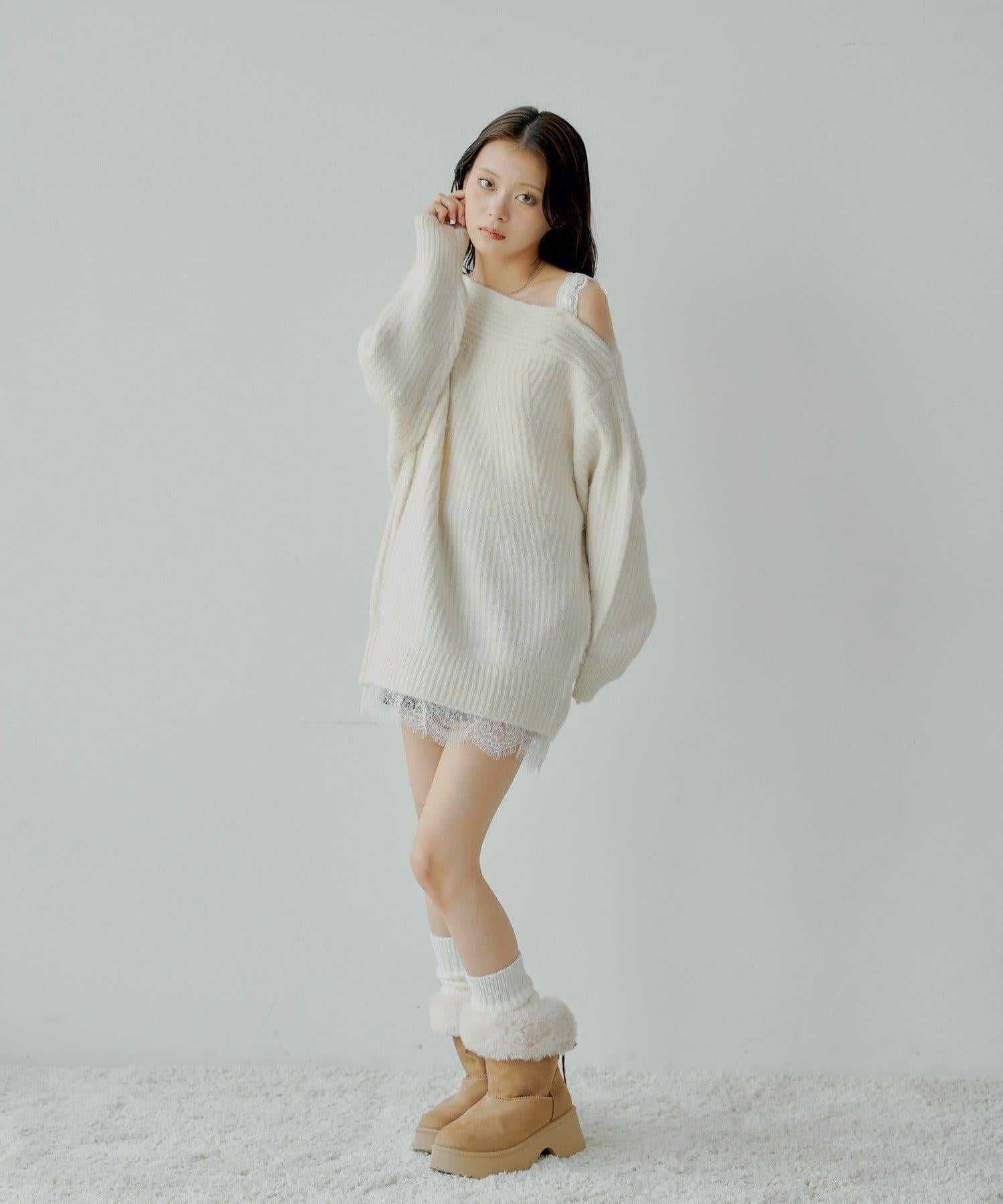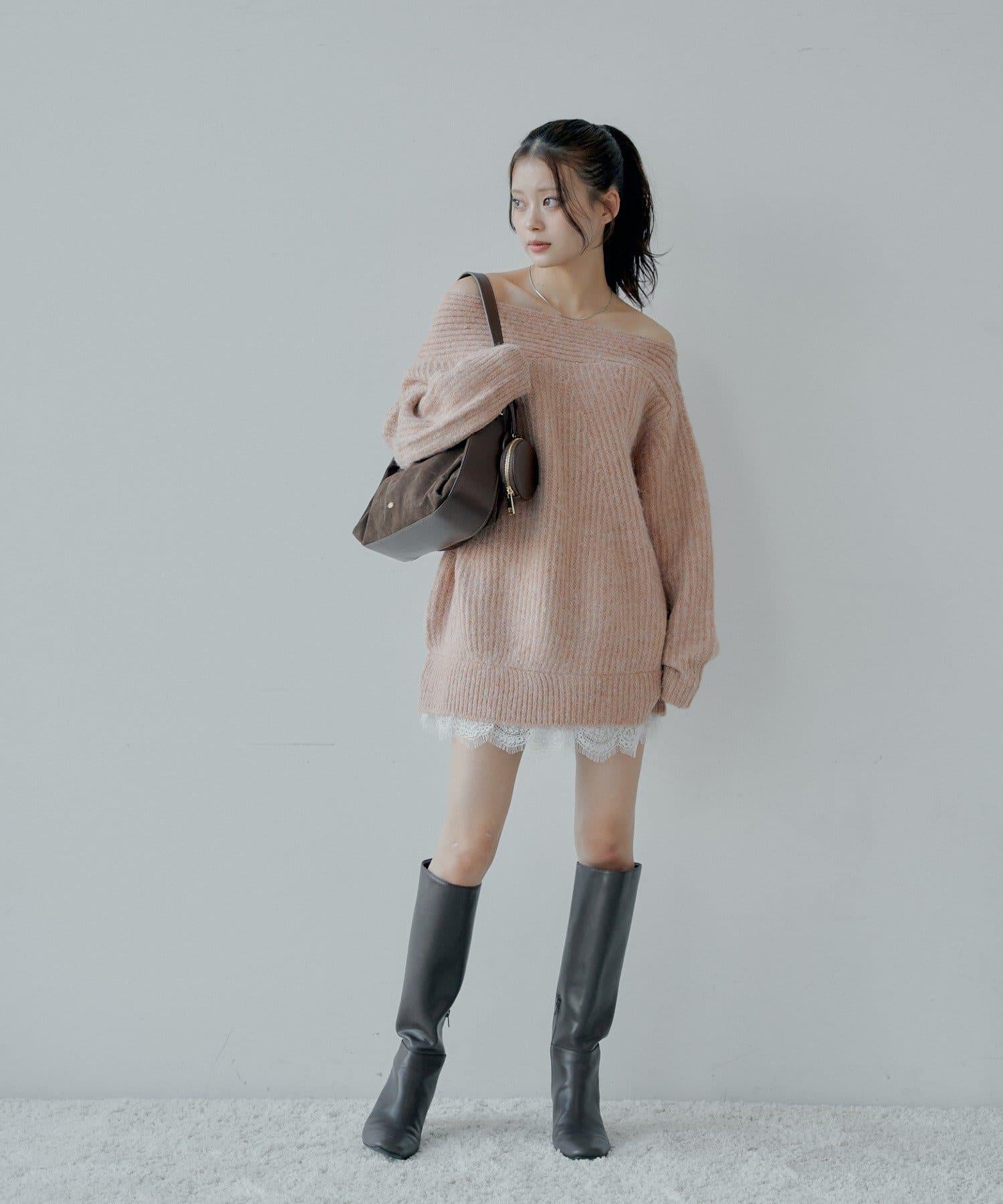 針織衫也適合露肩穿著。
