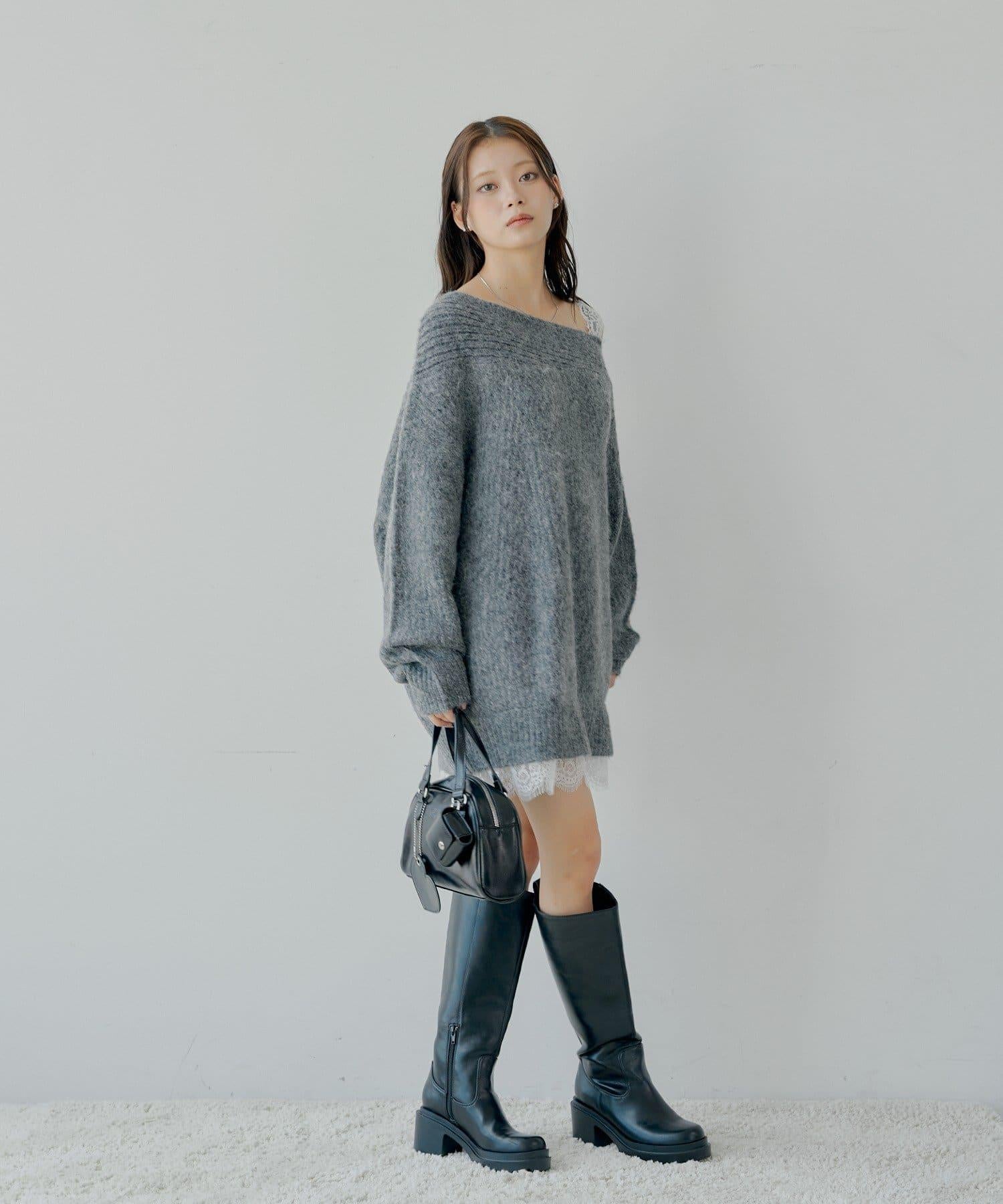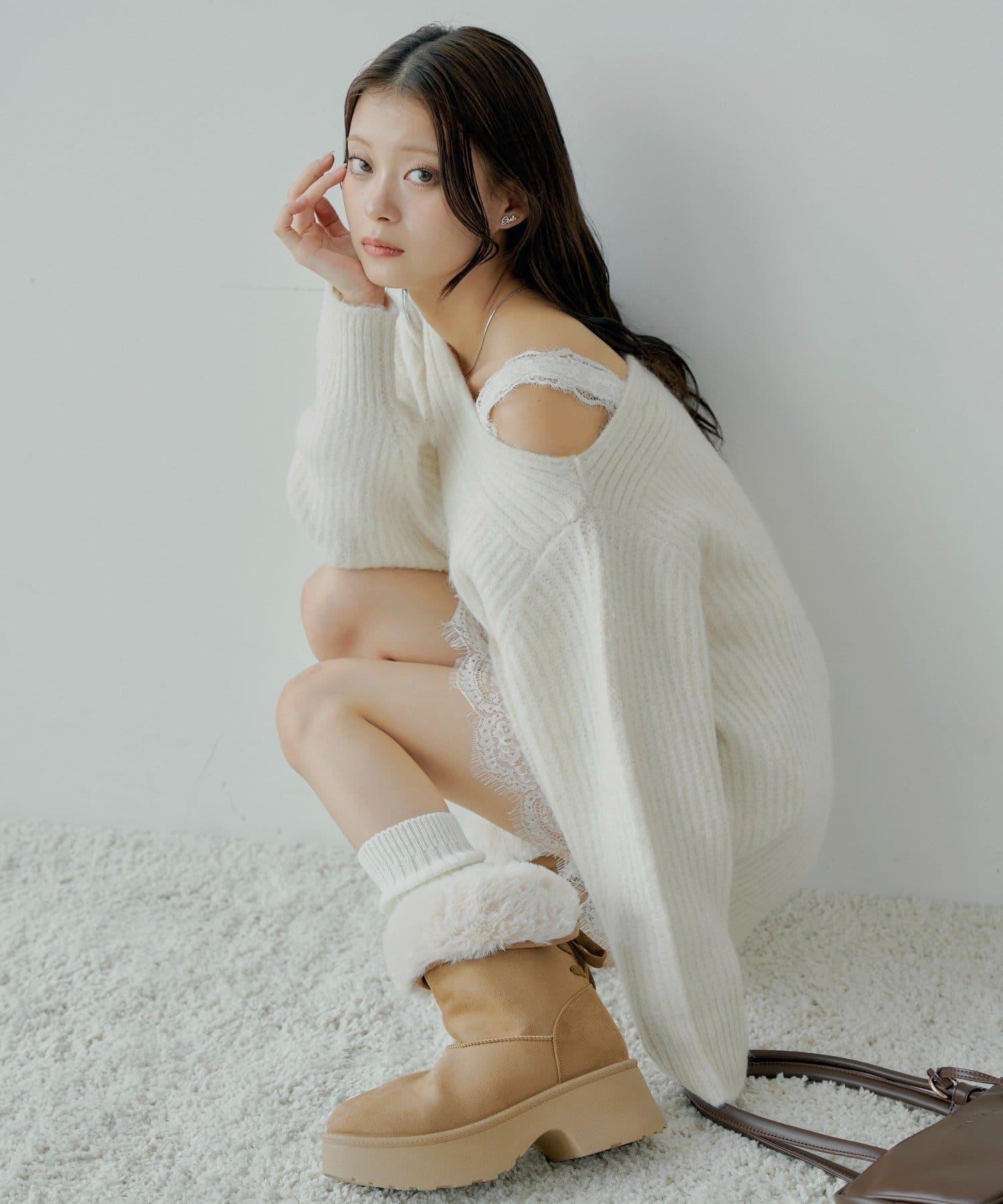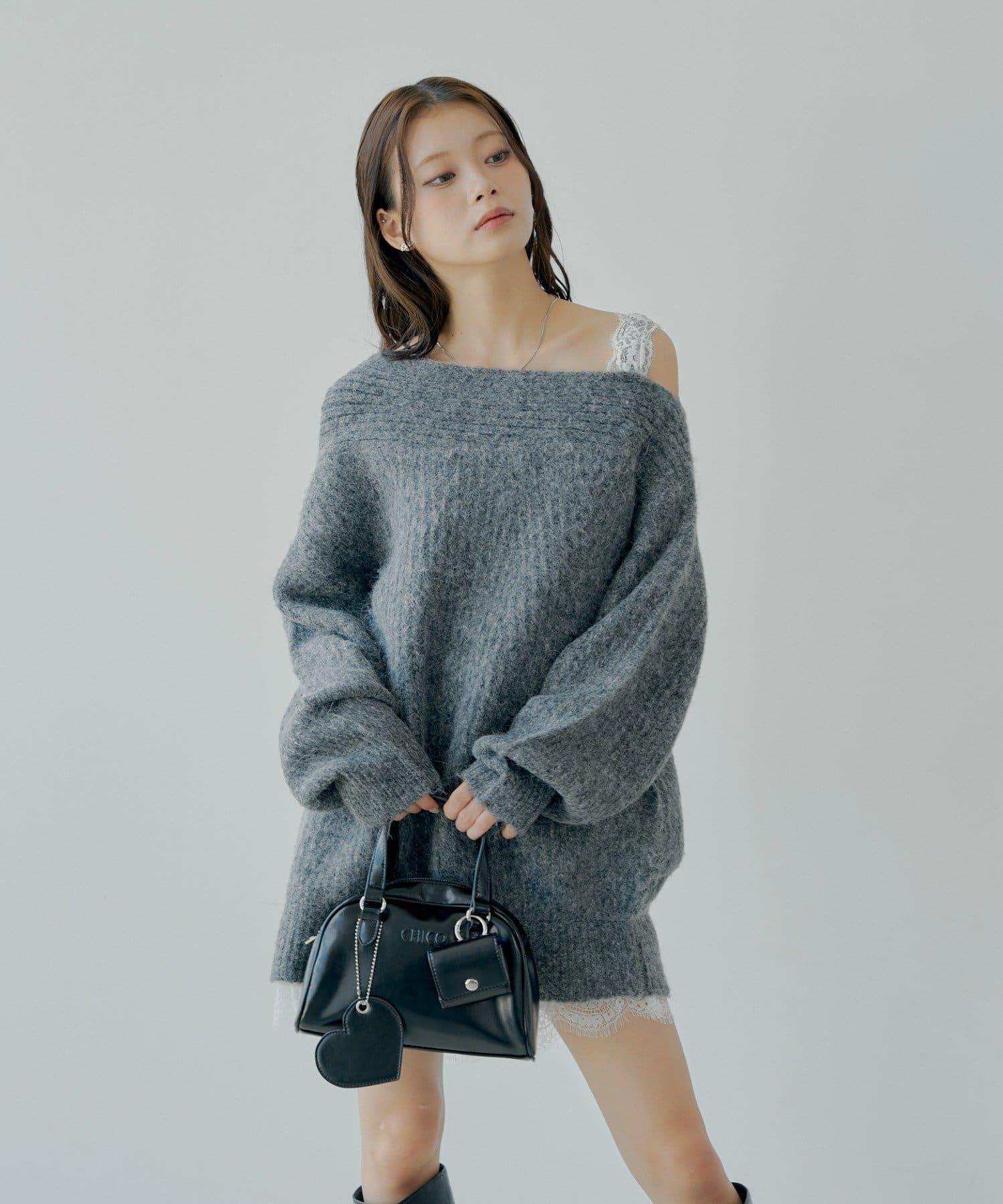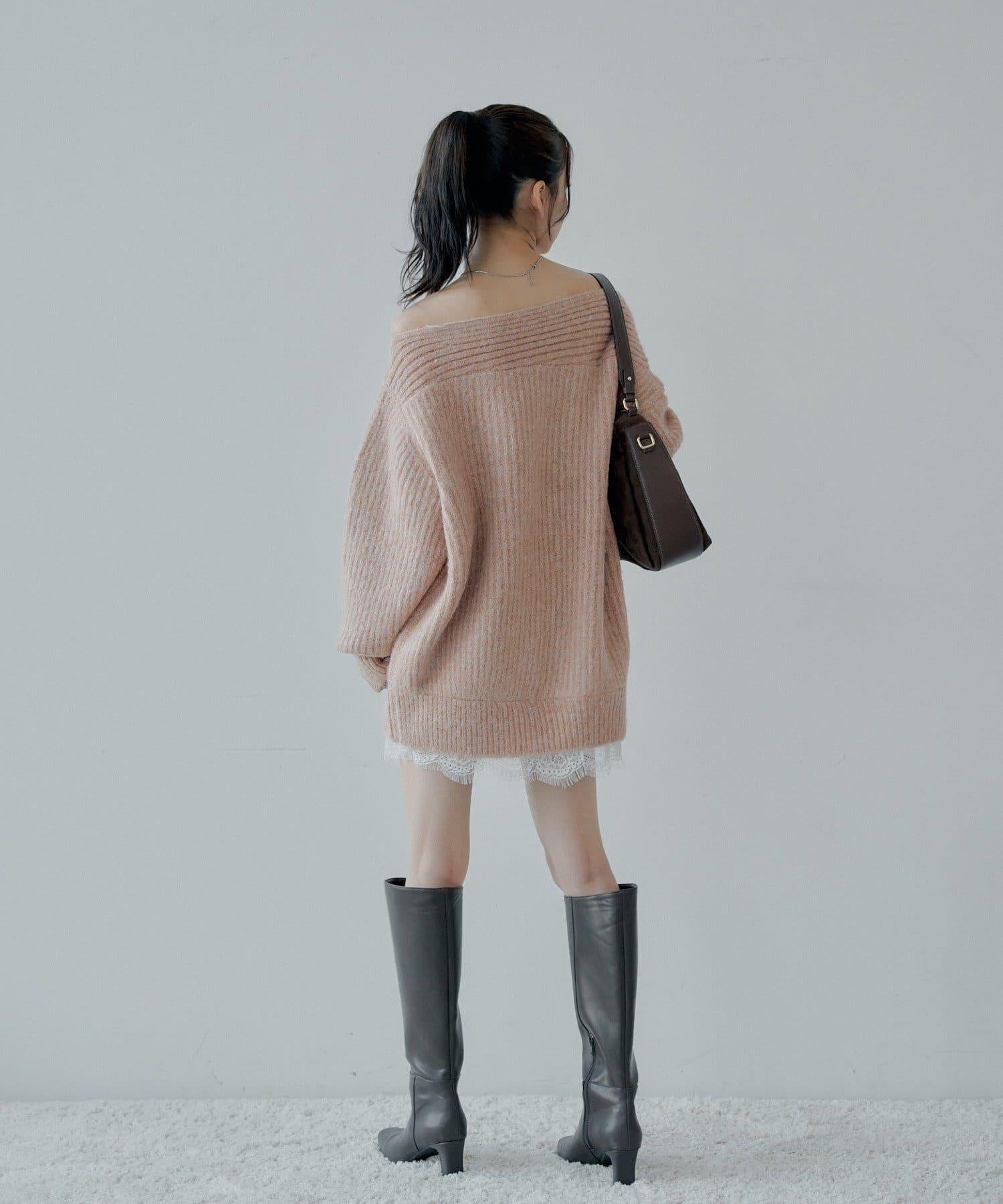 針織衫也適合露肩穿著。