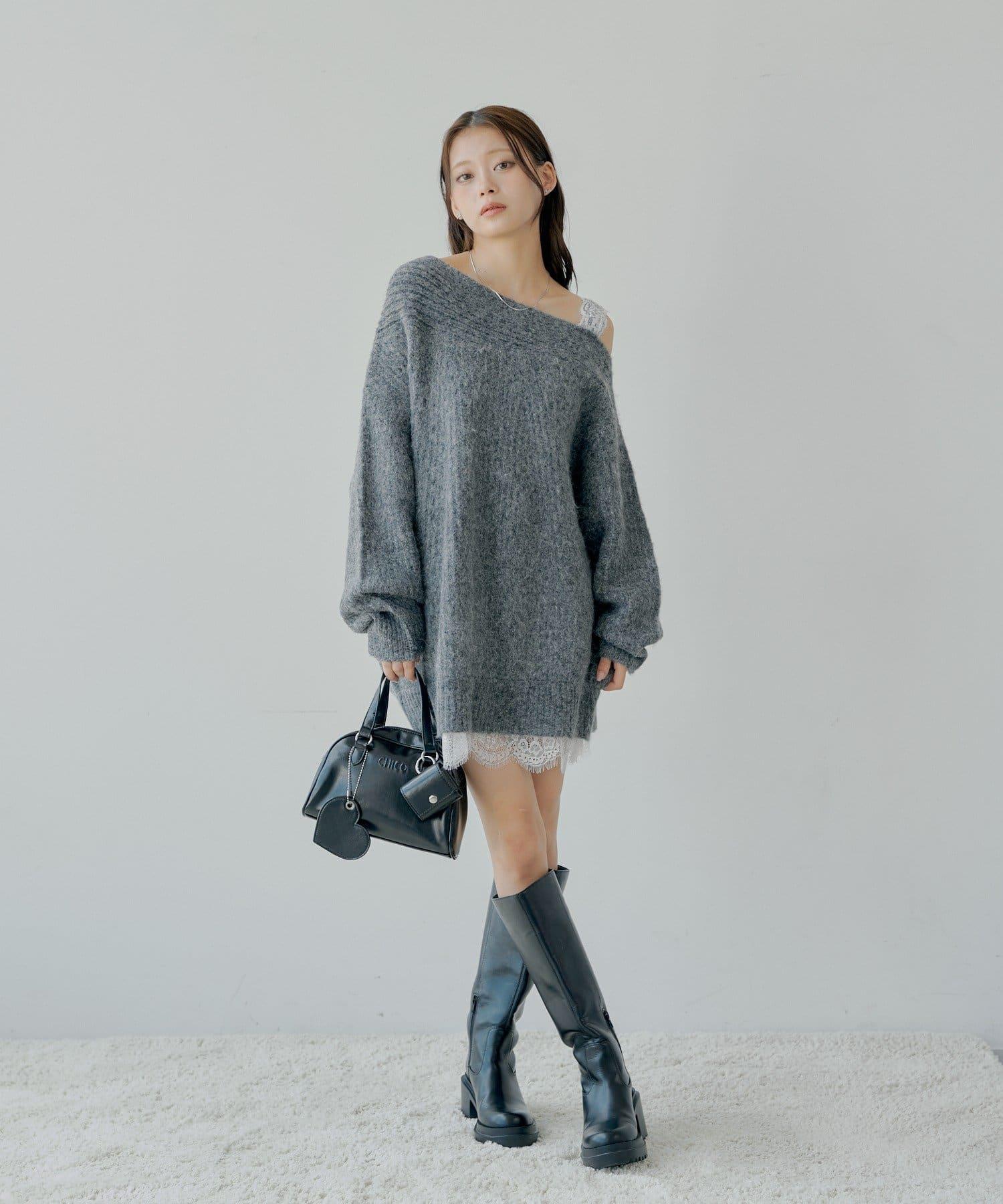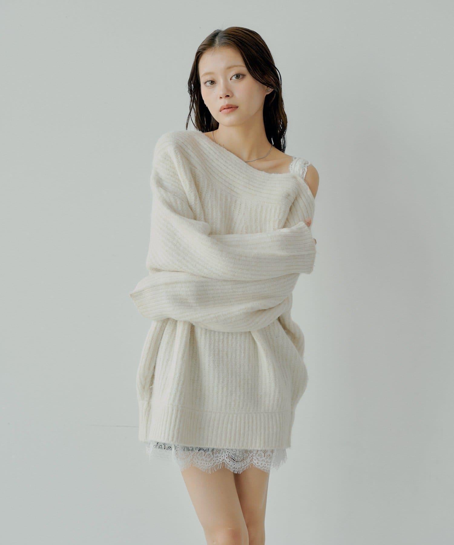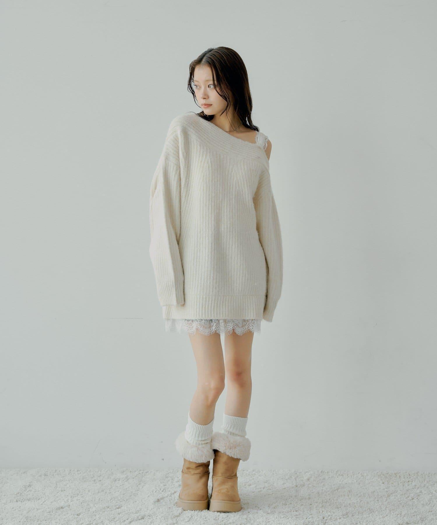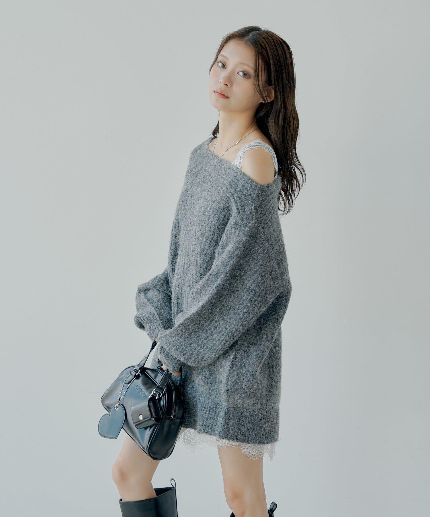 單肩蕾絲針織迷你連衣裙,柔軟舒適的包裹感。