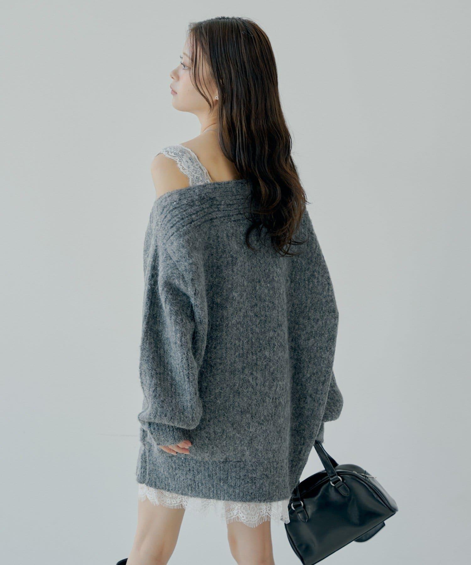下襬的精緻蕾絲為這款休閒針織衫增添了女性氣息。