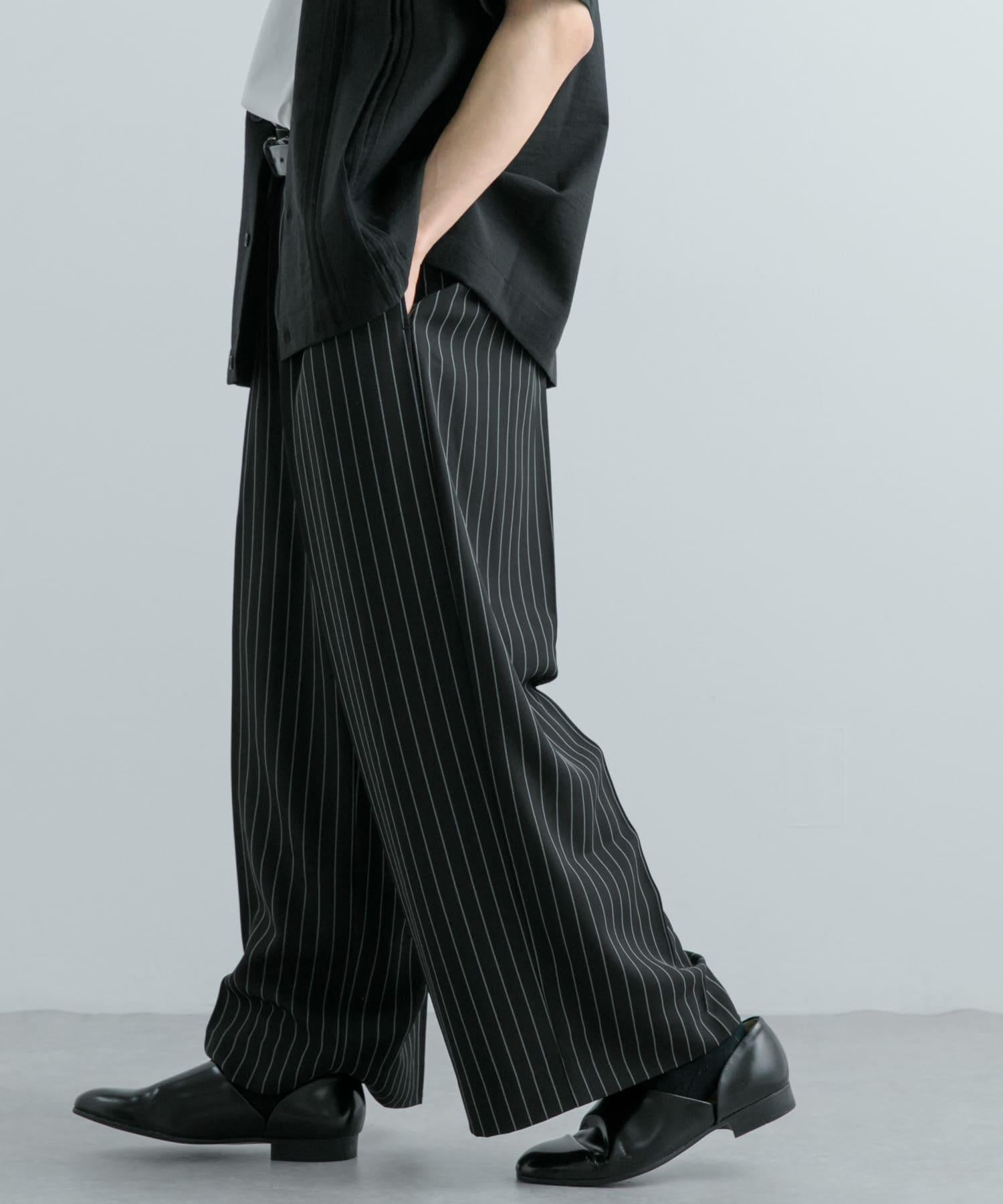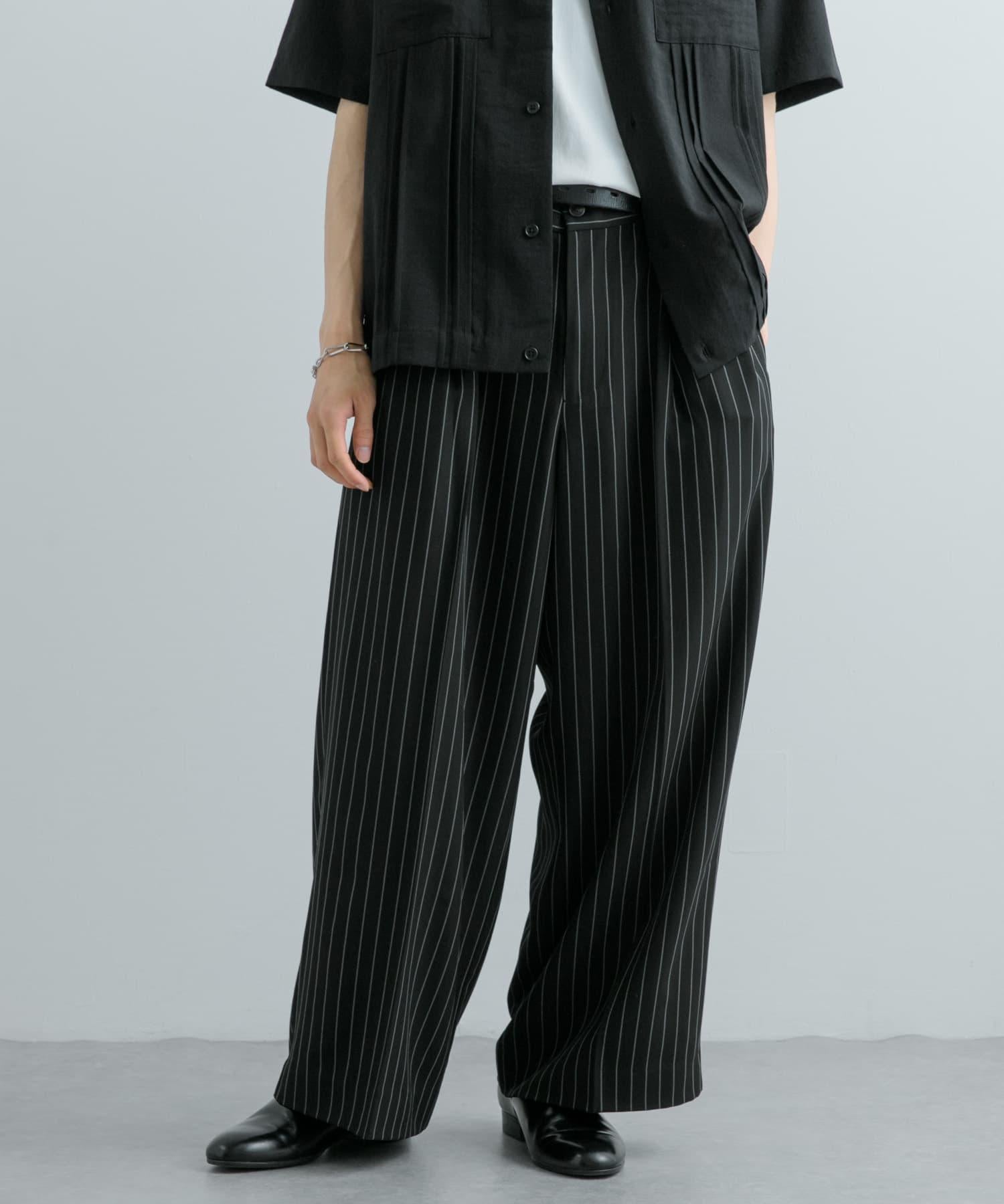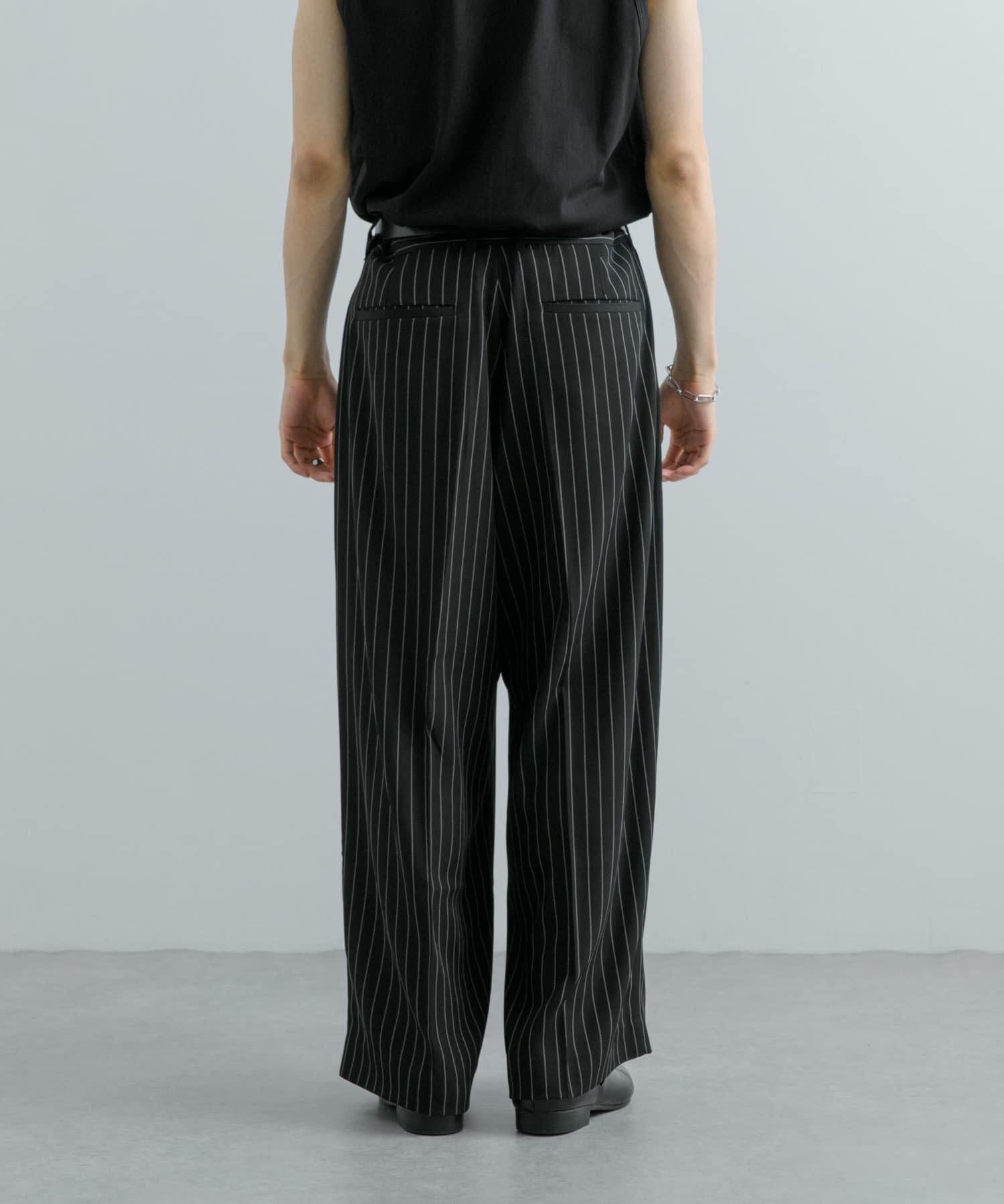 單褶細條紋寬鬆西裝褲