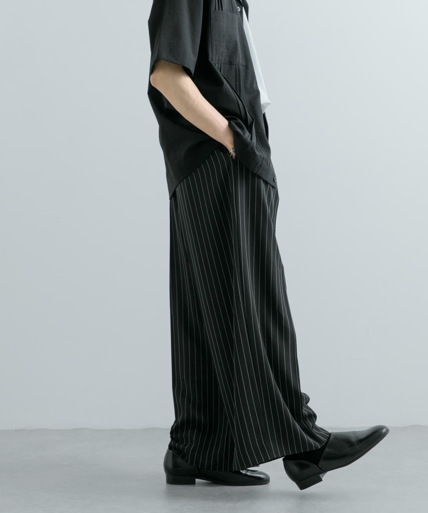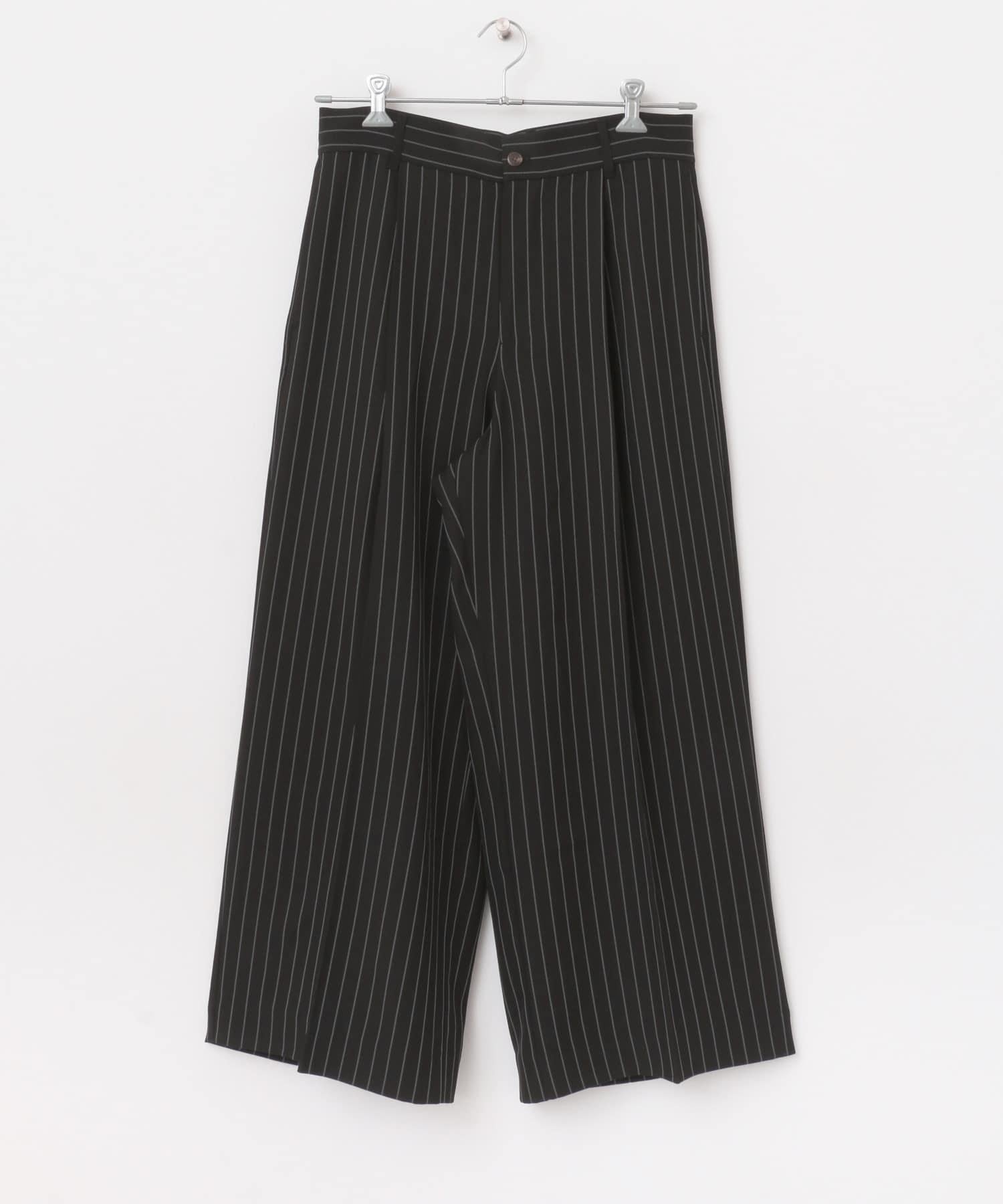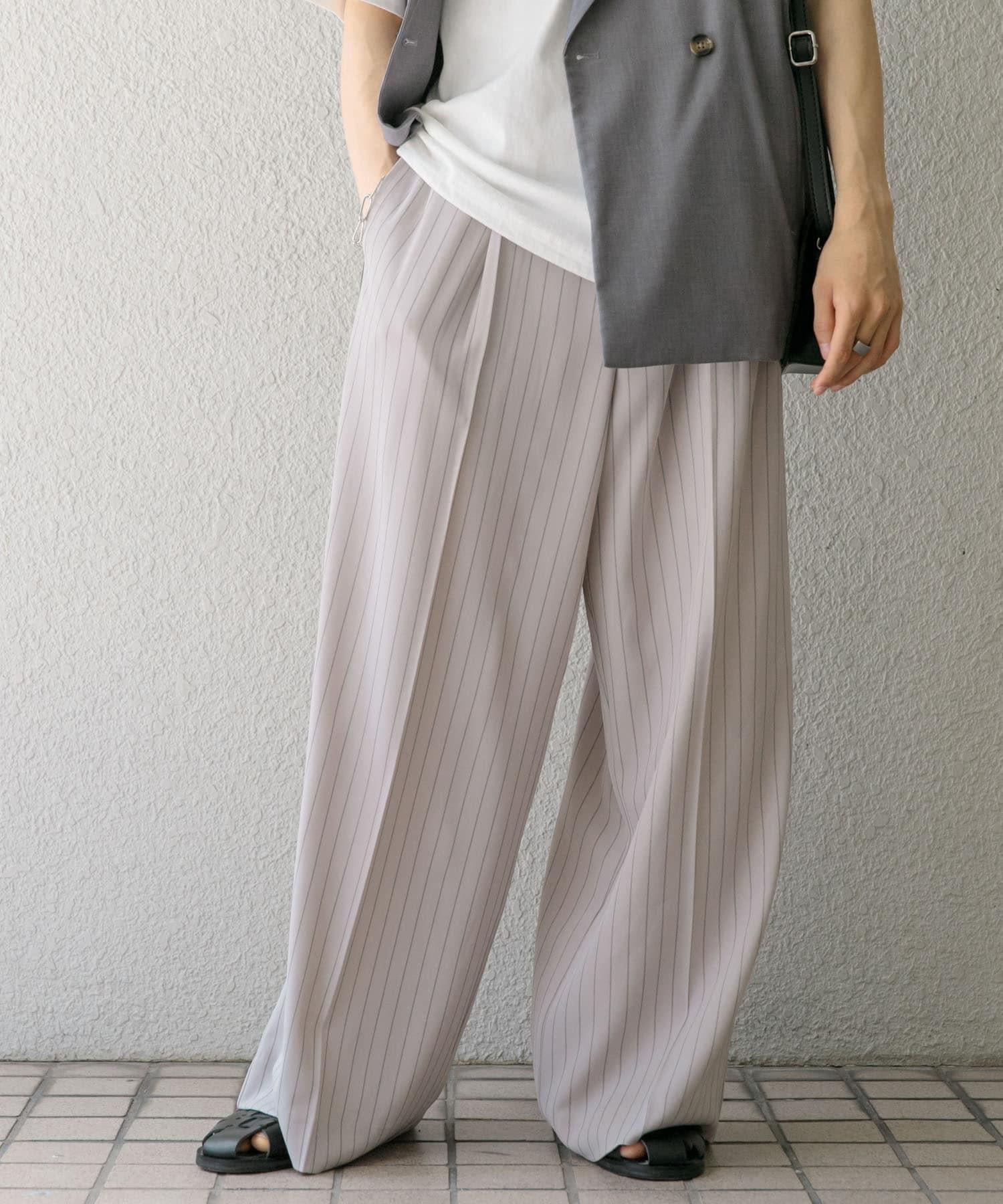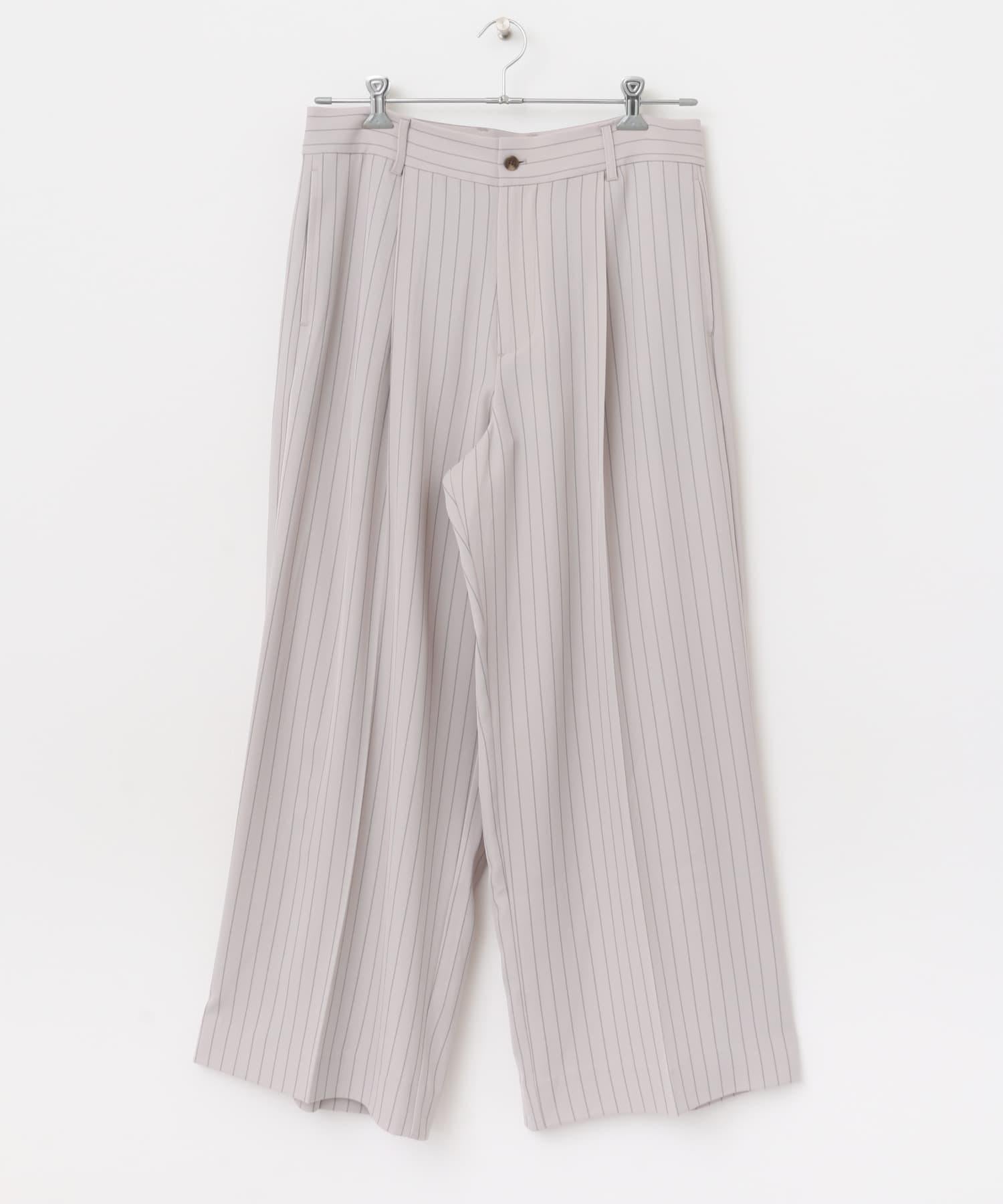單褶細條紋寬鬆西裝褲