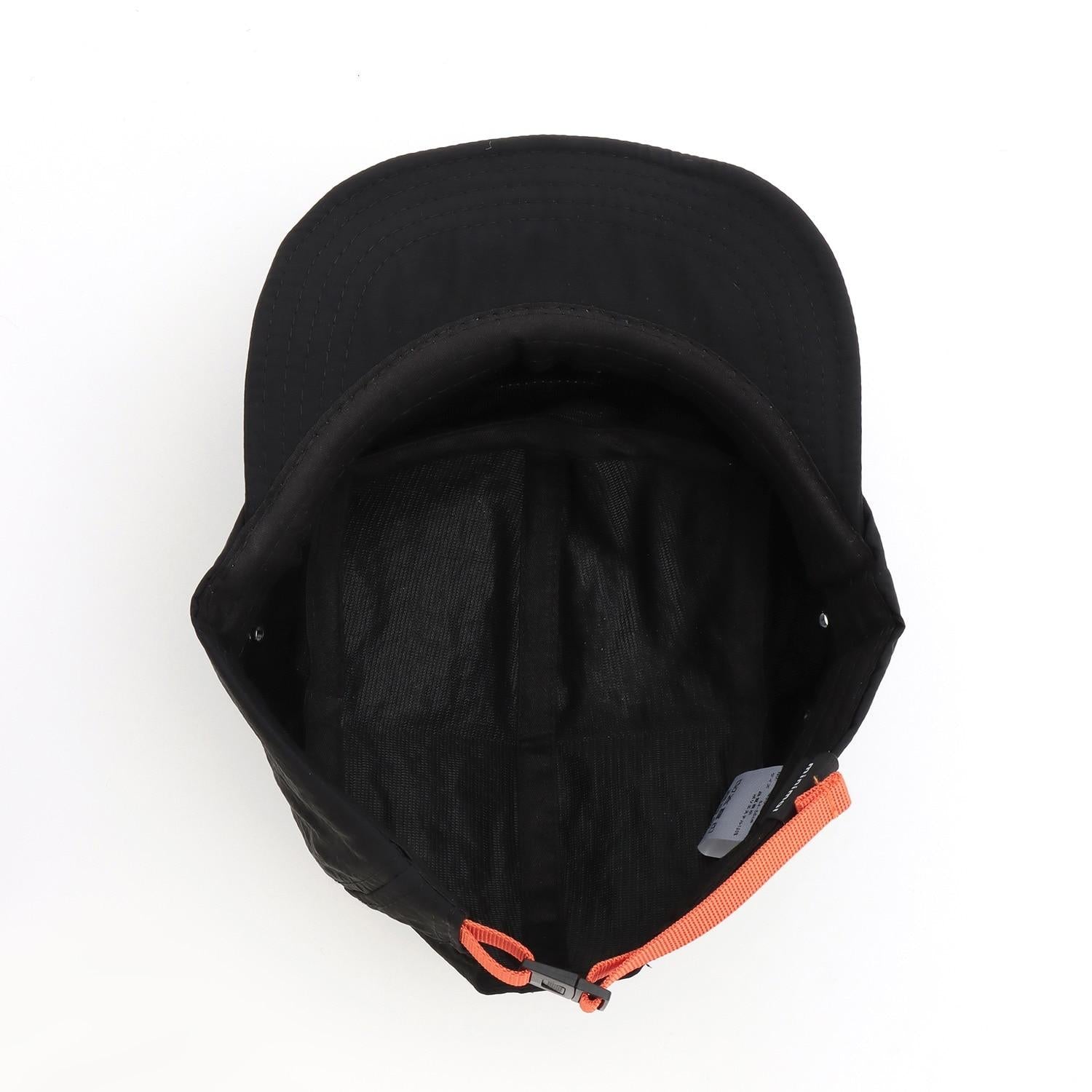 帽子正面印有徽標標籤,背面有一條亮色腰帶,十分時尚。