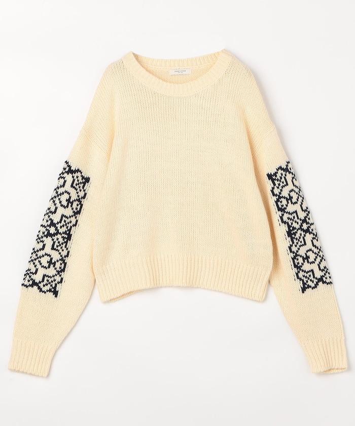 這款針織衫採用迷人的復古設計,袖子上有三葉草圖案。