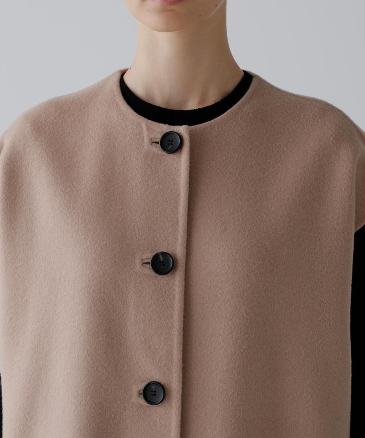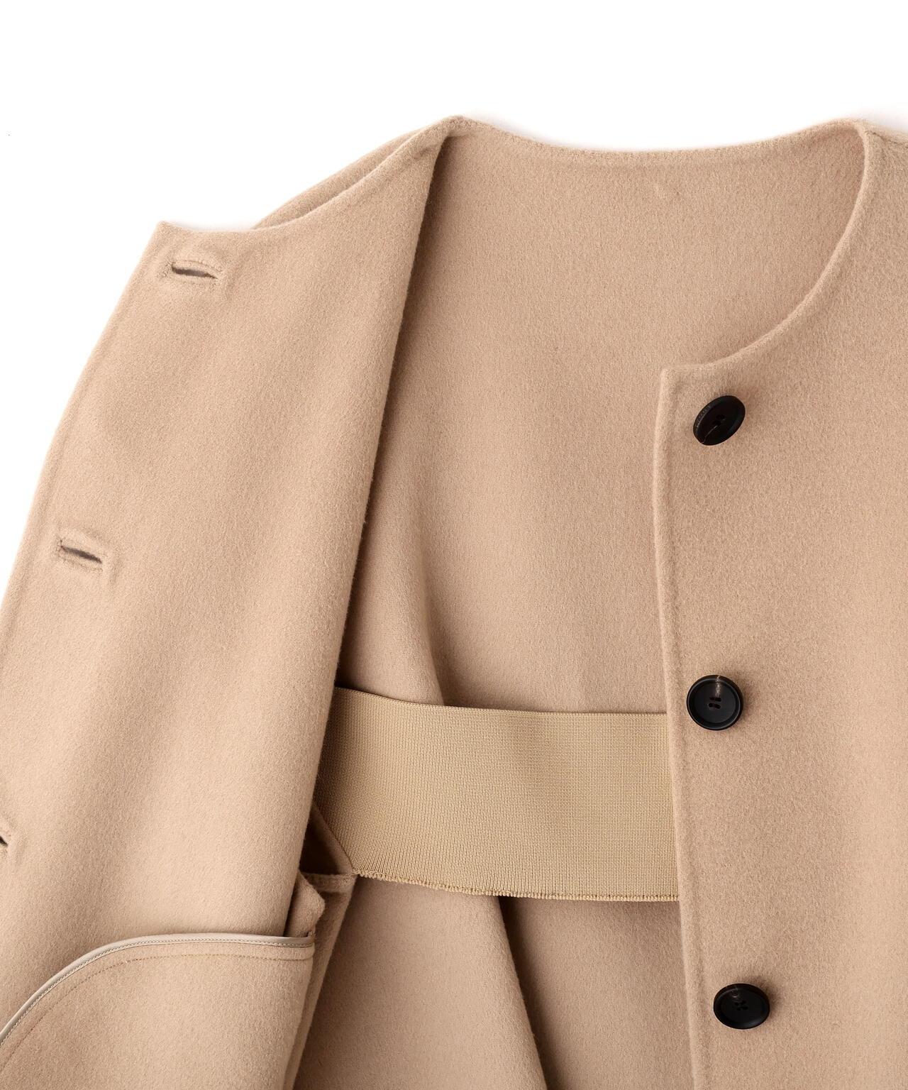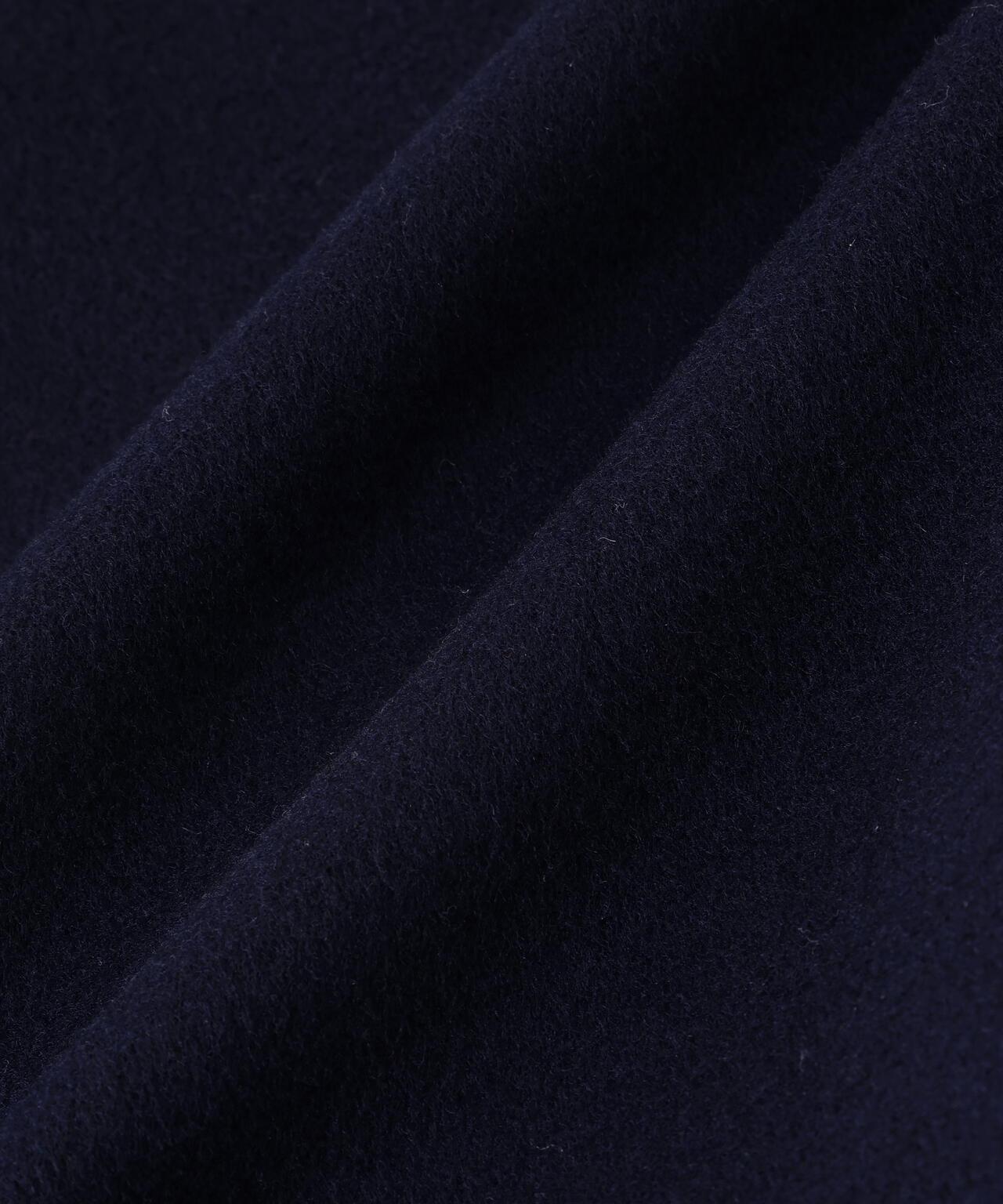 質地柔軟的純羊毛河邊夾克衫簡潔的夾克衫,正面飾有彩色紐扣,背面採用繭形剪裁,並充分運用了過渡和收口設計。後袖袖口用針織帶橫穿後背,營造出與正面不同的印象。採用超級 120s 細纖維材料,以可翻轉的方式編織而成,質地柔軟、輕盈。