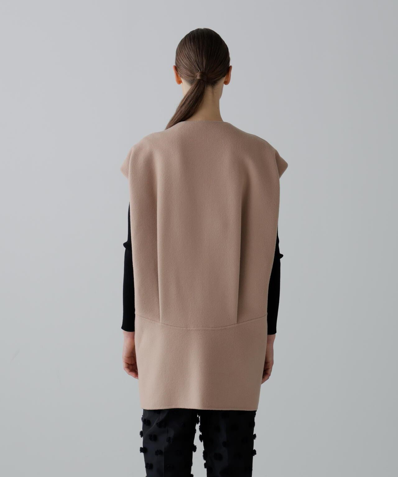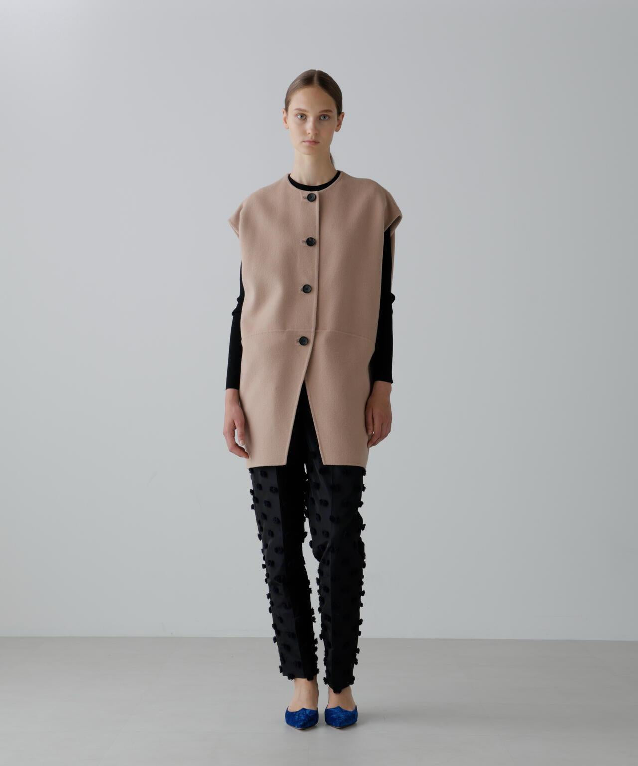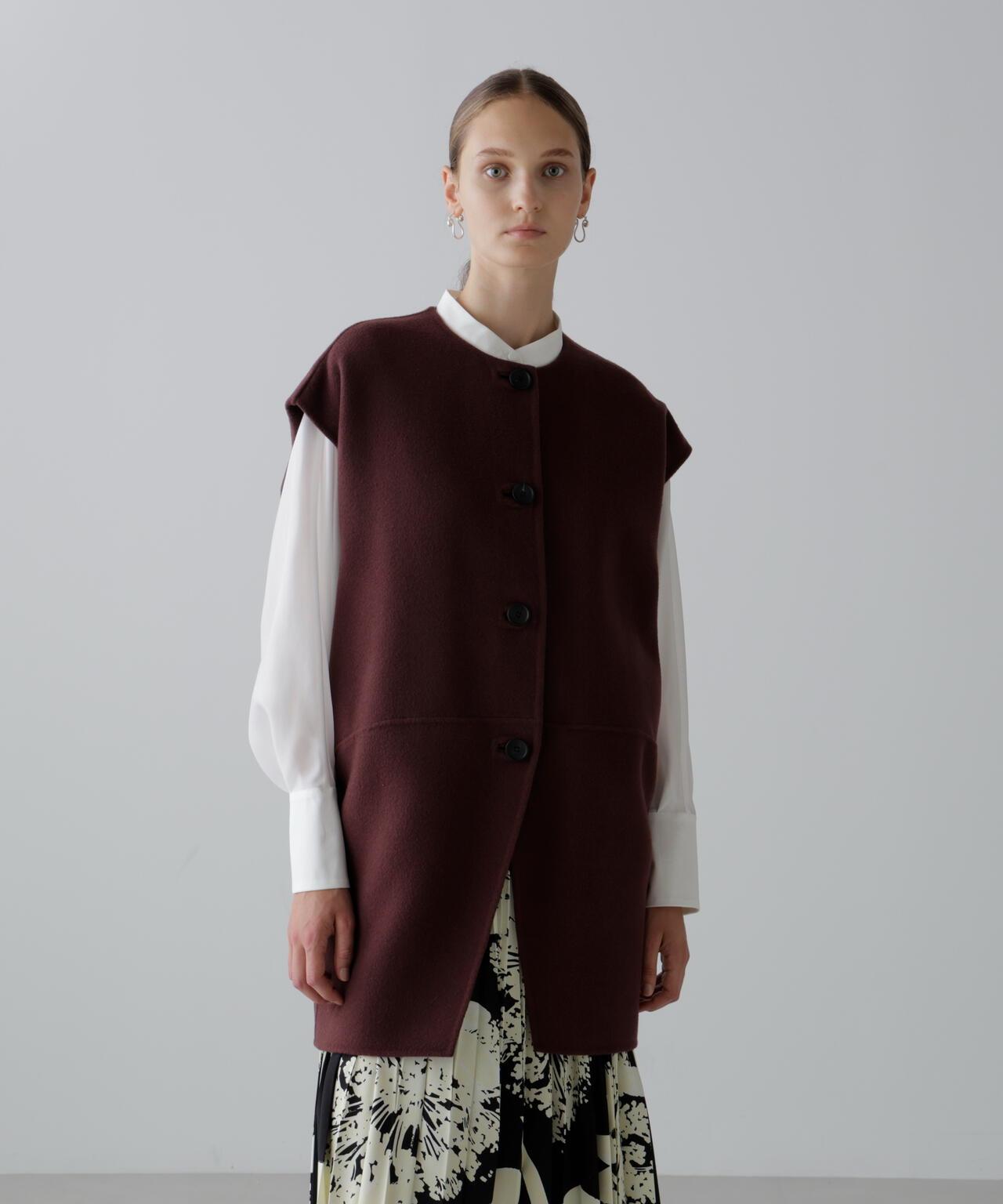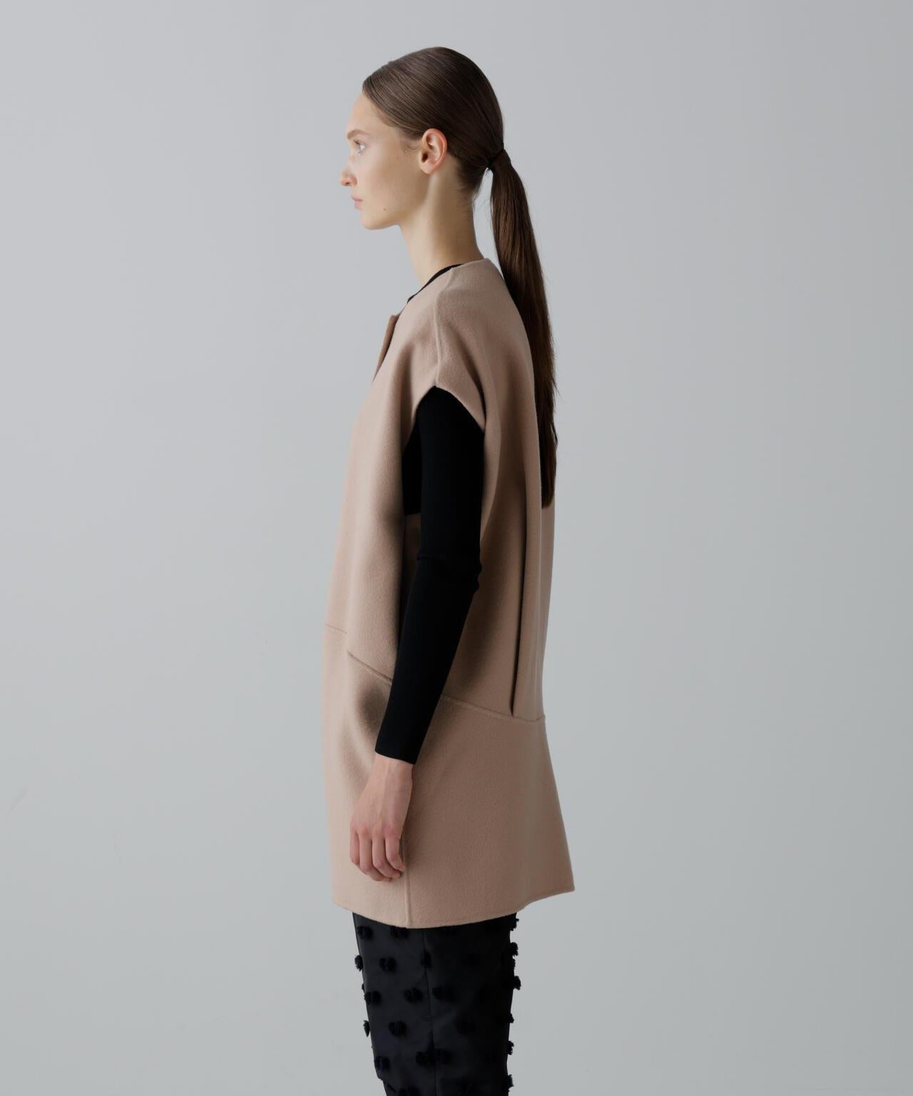 質地柔軟的純羊毛河邊夾克衫簡潔的夾克衫,正面飾有彩色紐扣,背面採用繭形剪裁,並充分運用了過渡和收口設計。後袖袖口用針織帶橫穿後背,營造出與正面不同的印象。採用超級 120s 細纖維材料,以可翻轉的方式編織而成,質地柔軟、輕盈。