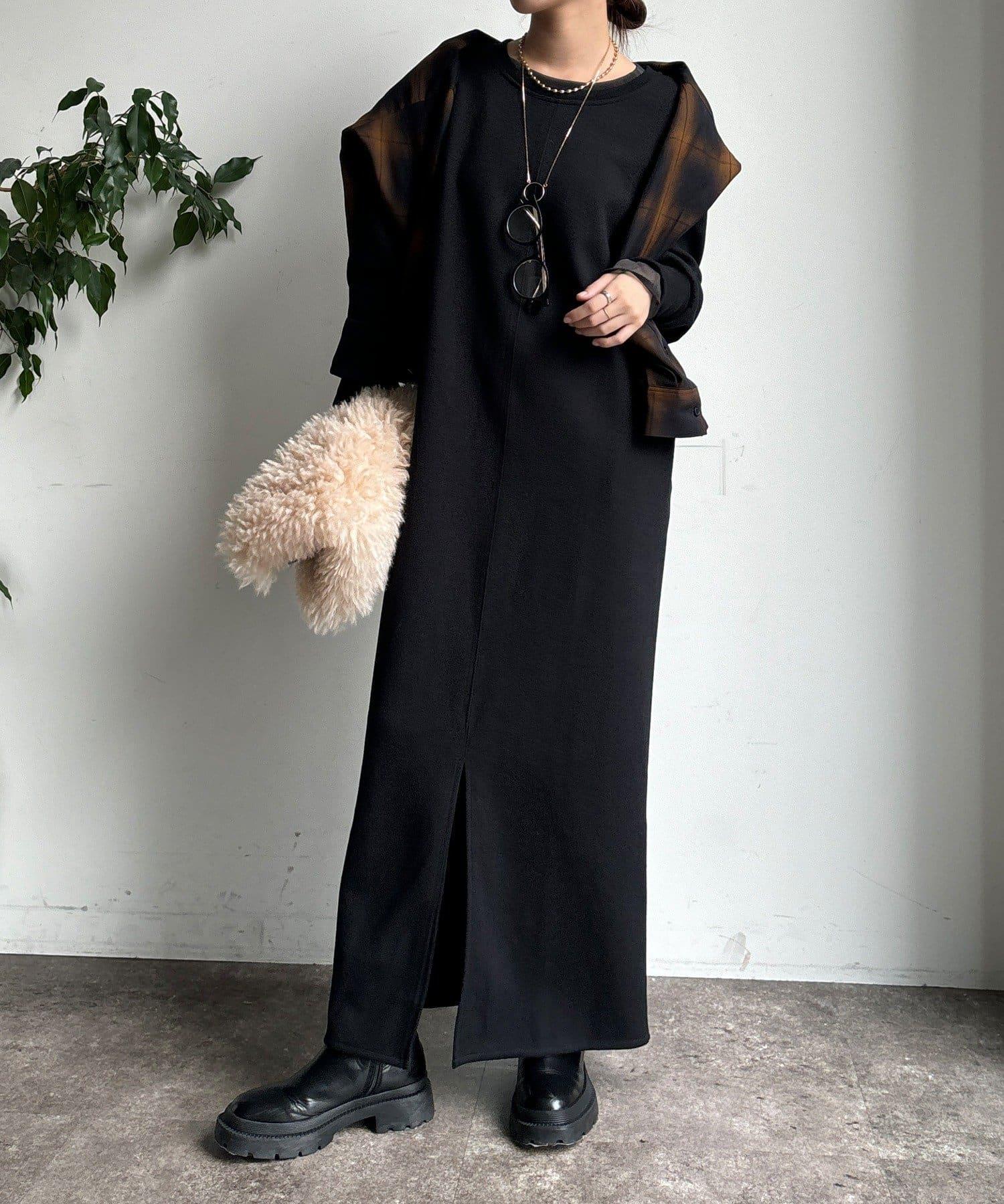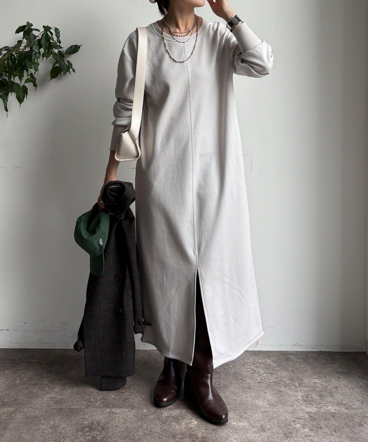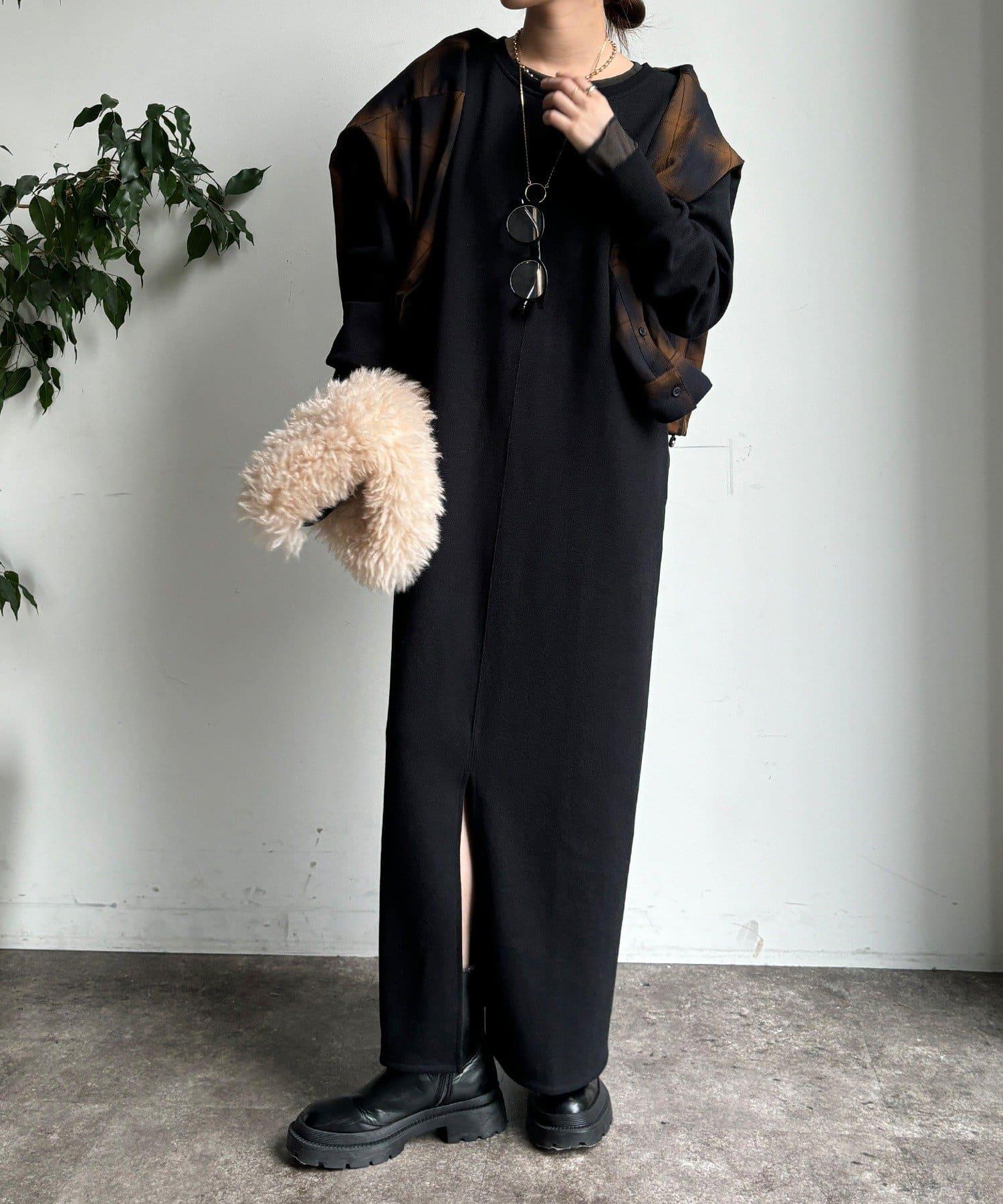 通過在前下襬加入開衩設計,長款連衣裙不會給人厚重的感覺。