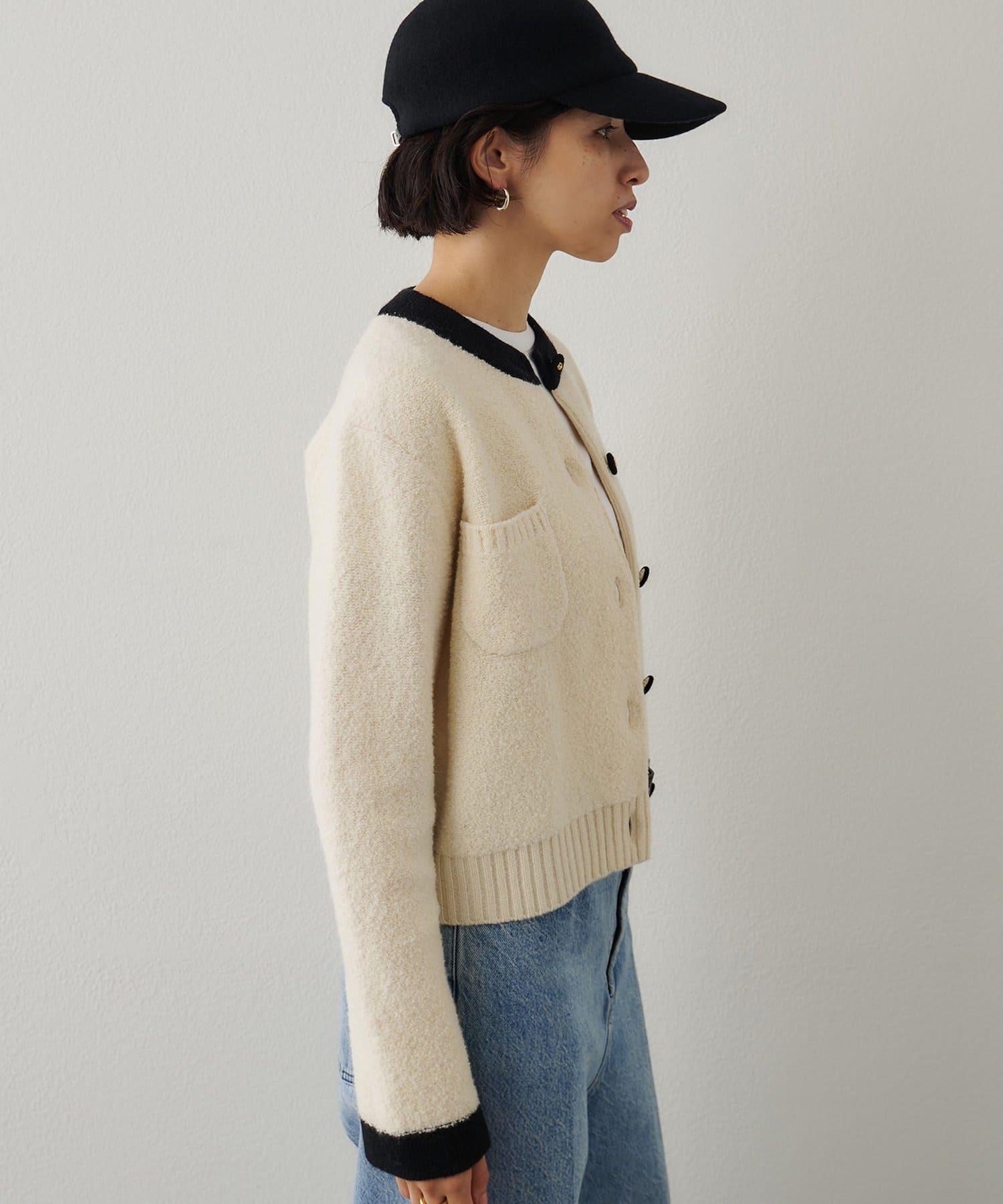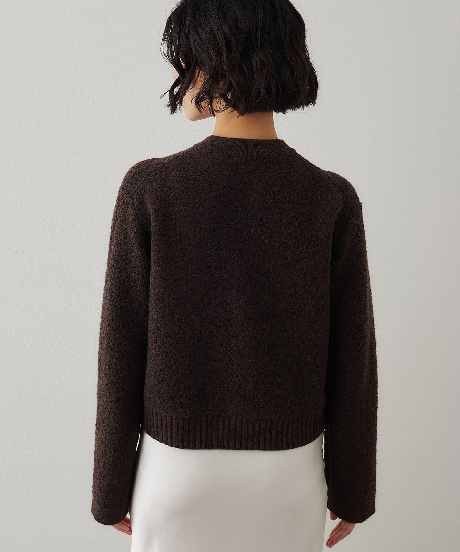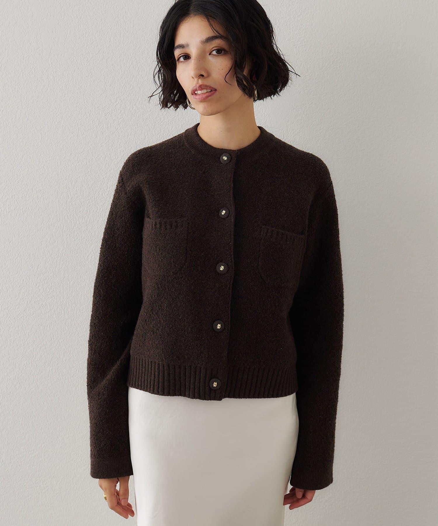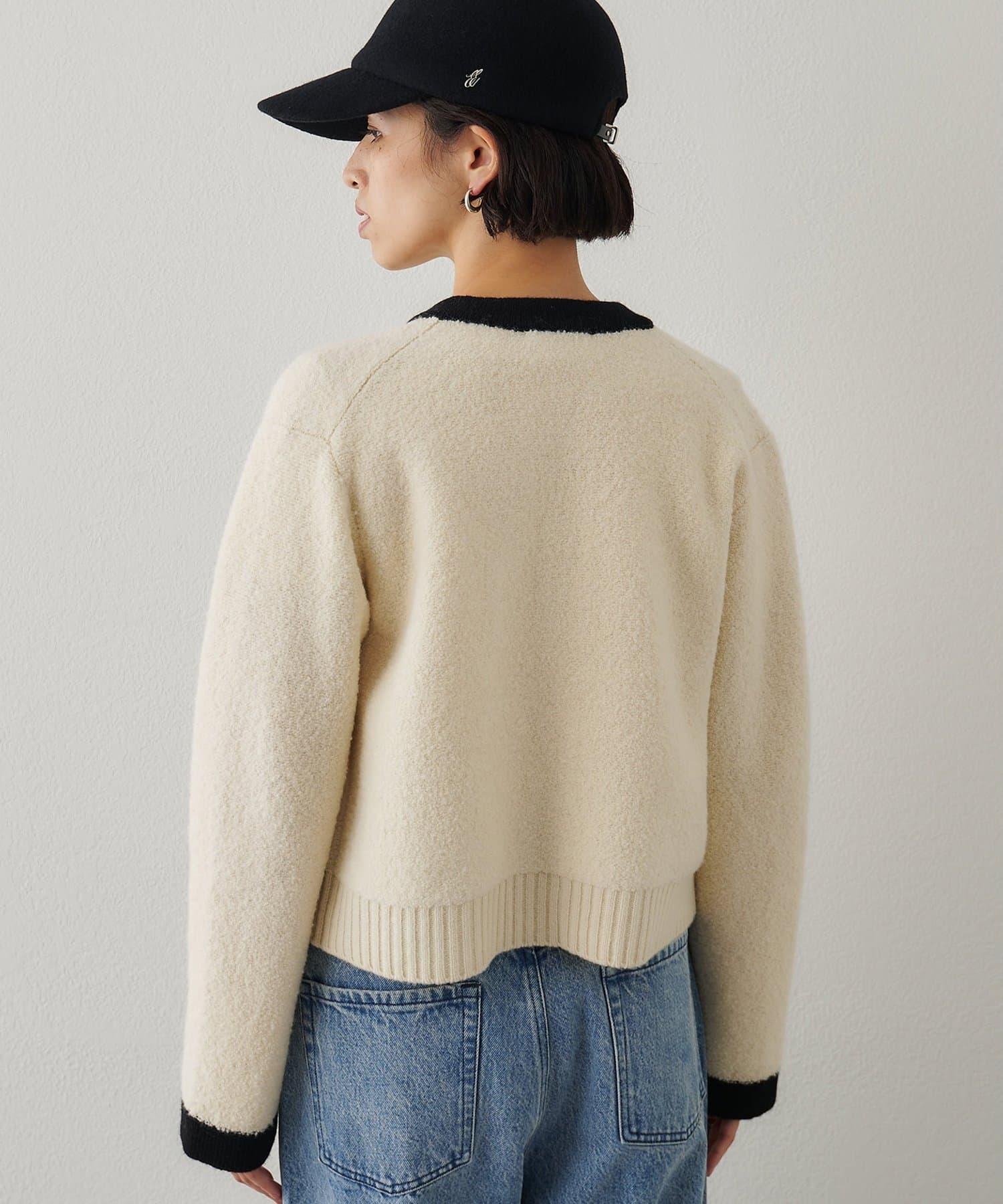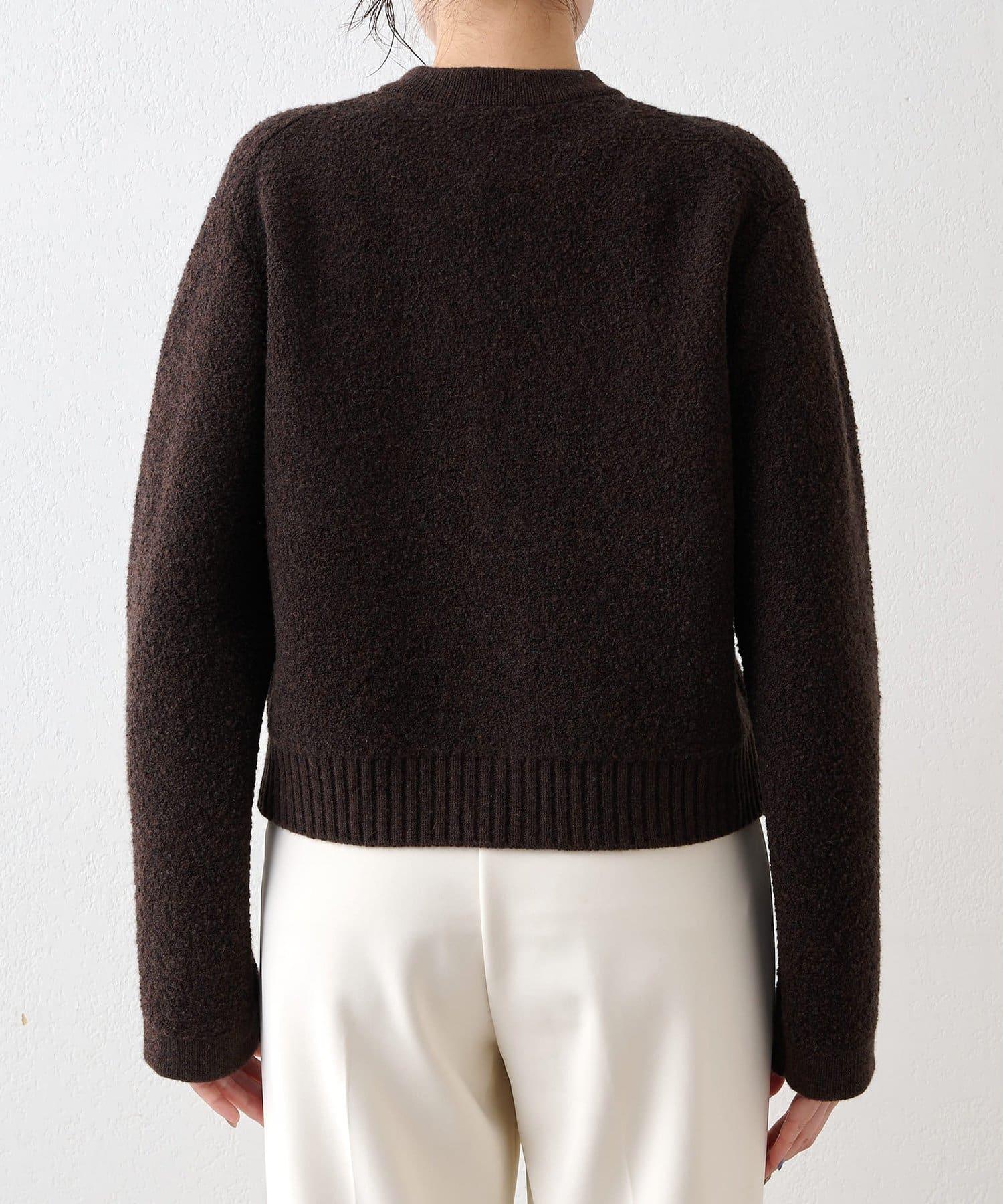 這是一款具有蓬鬆毛圈外觀的針織開衫。