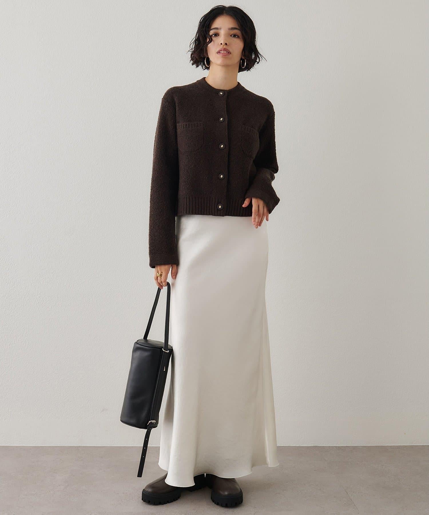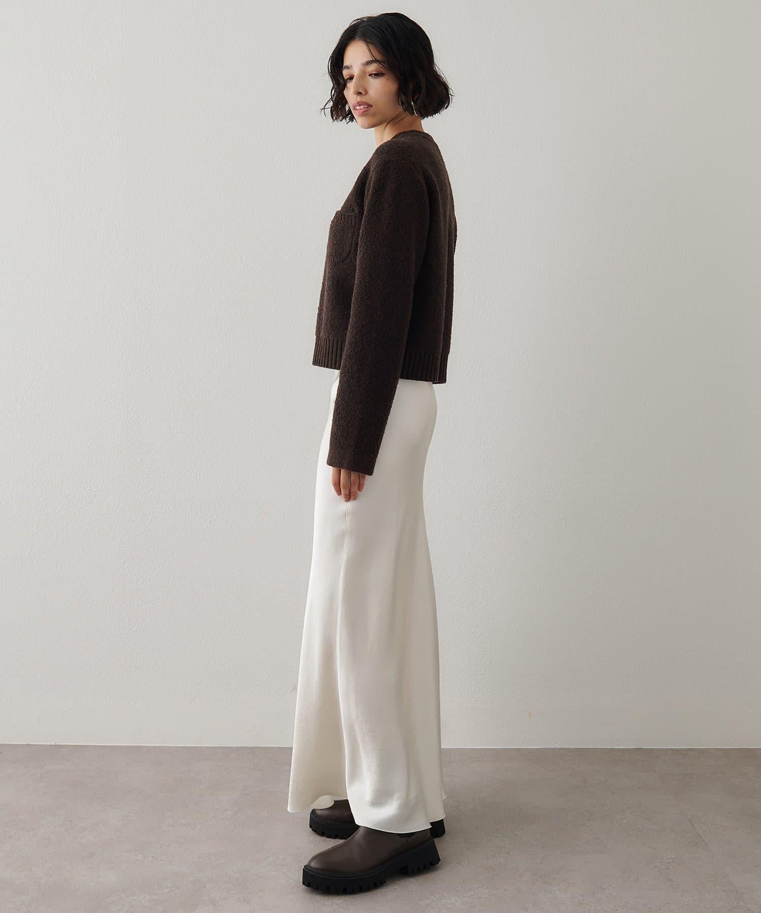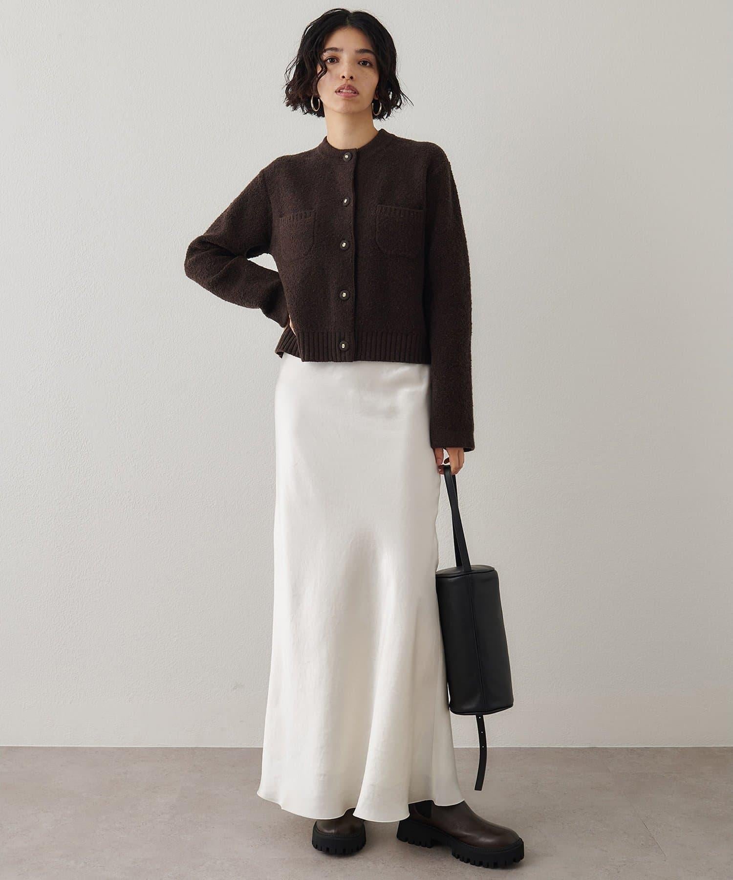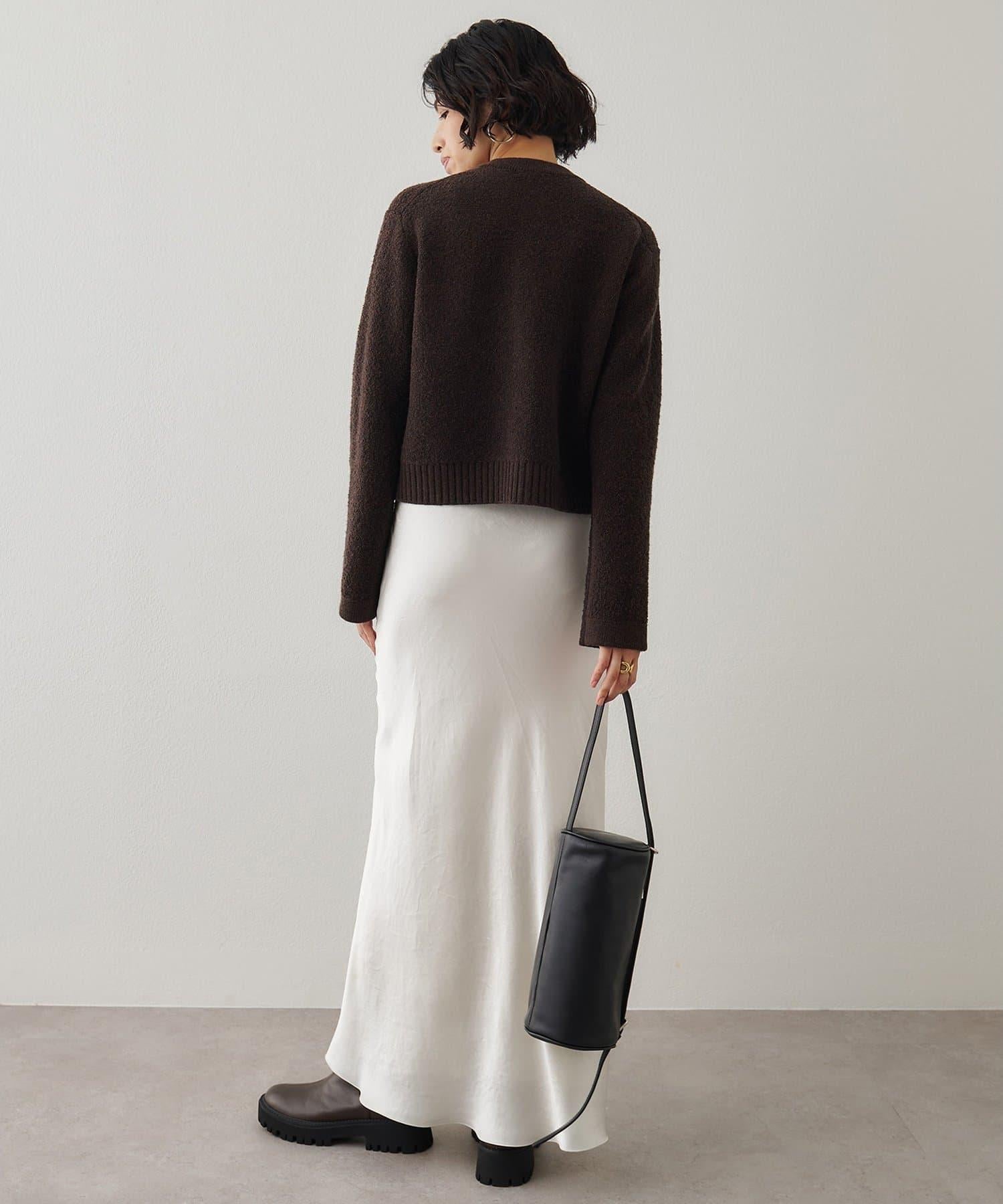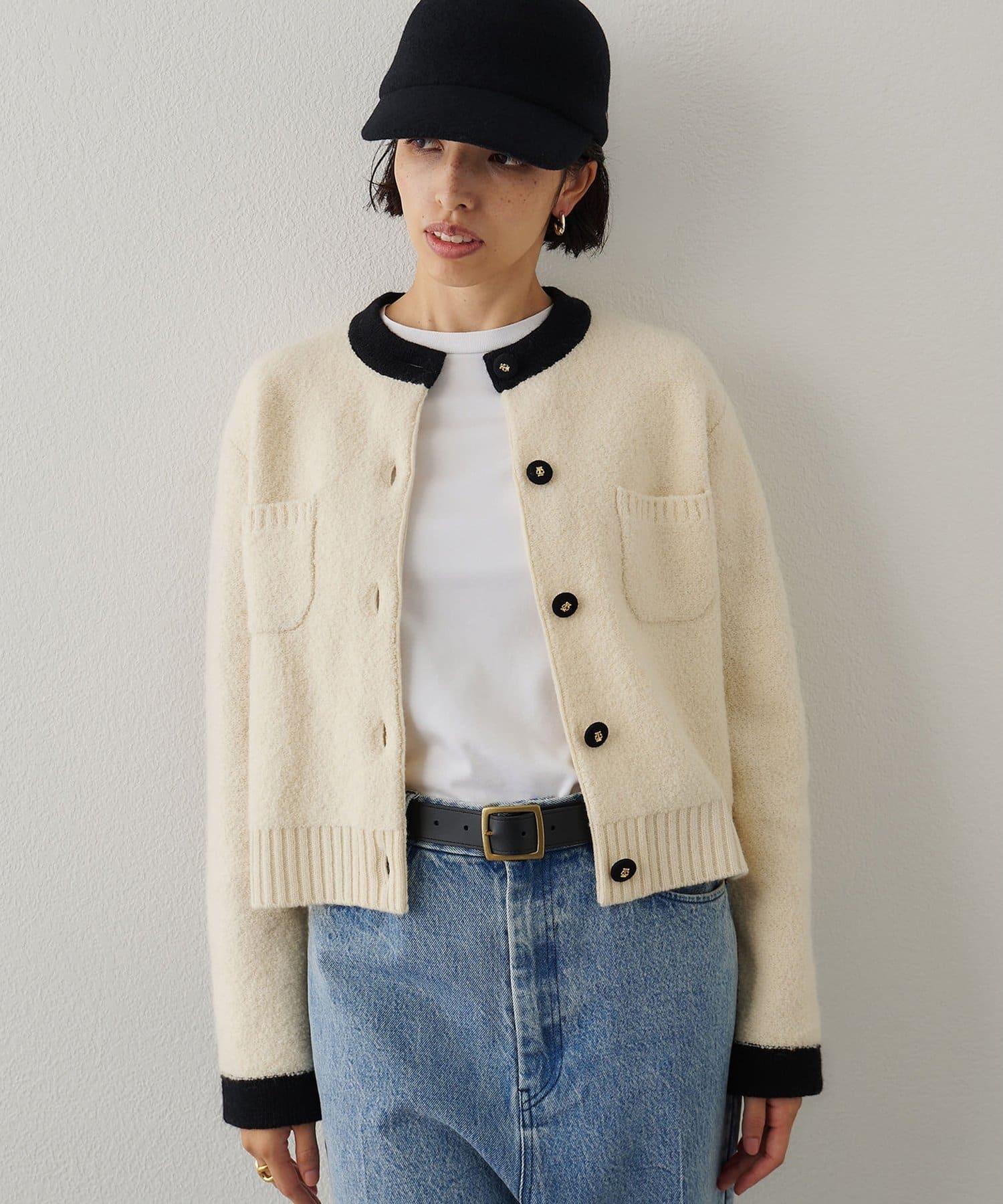 這是一款具有蓬鬆毛圈外觀的針織開衫。