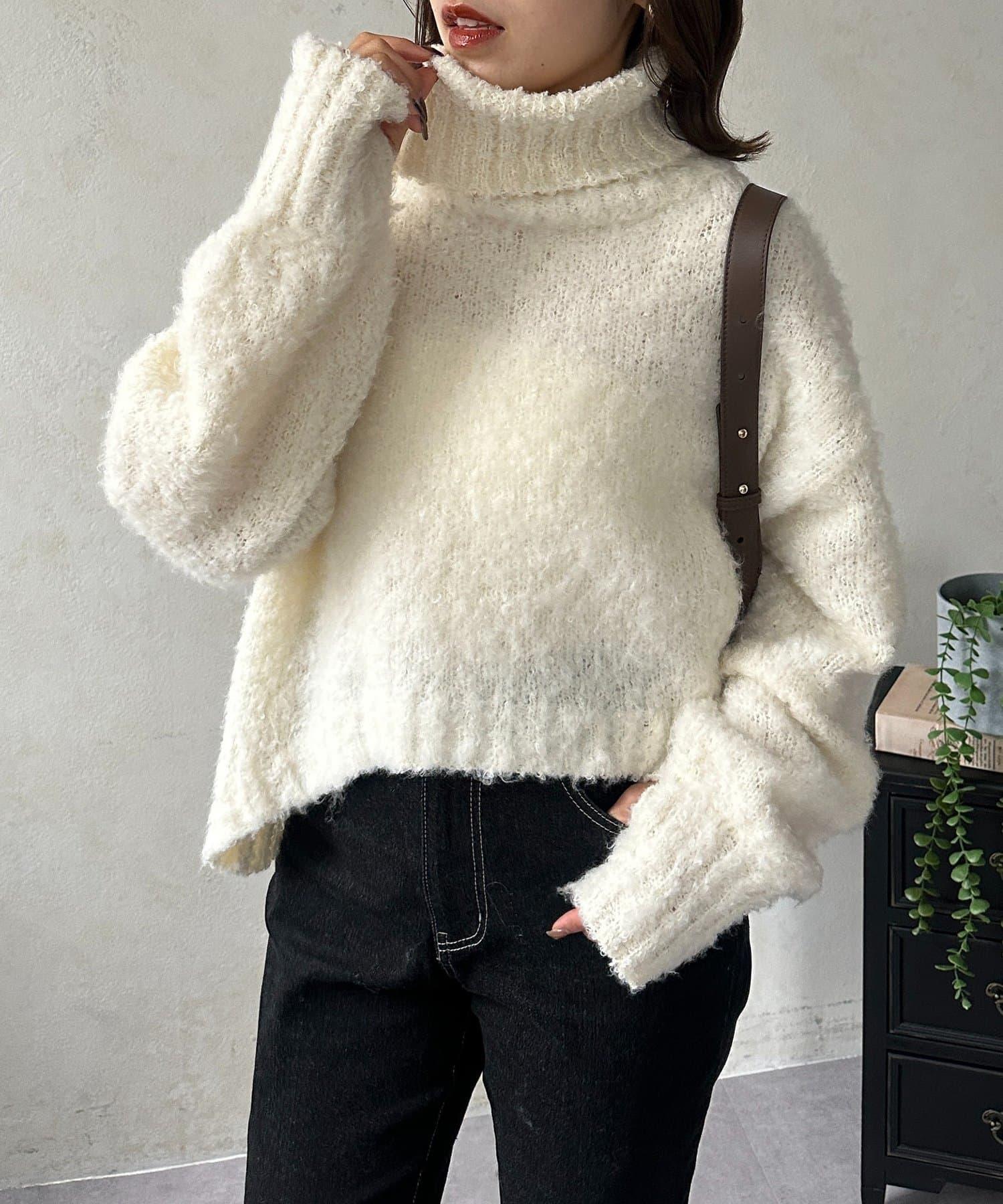 也可期待小臉效果的偏高領針織衫。
