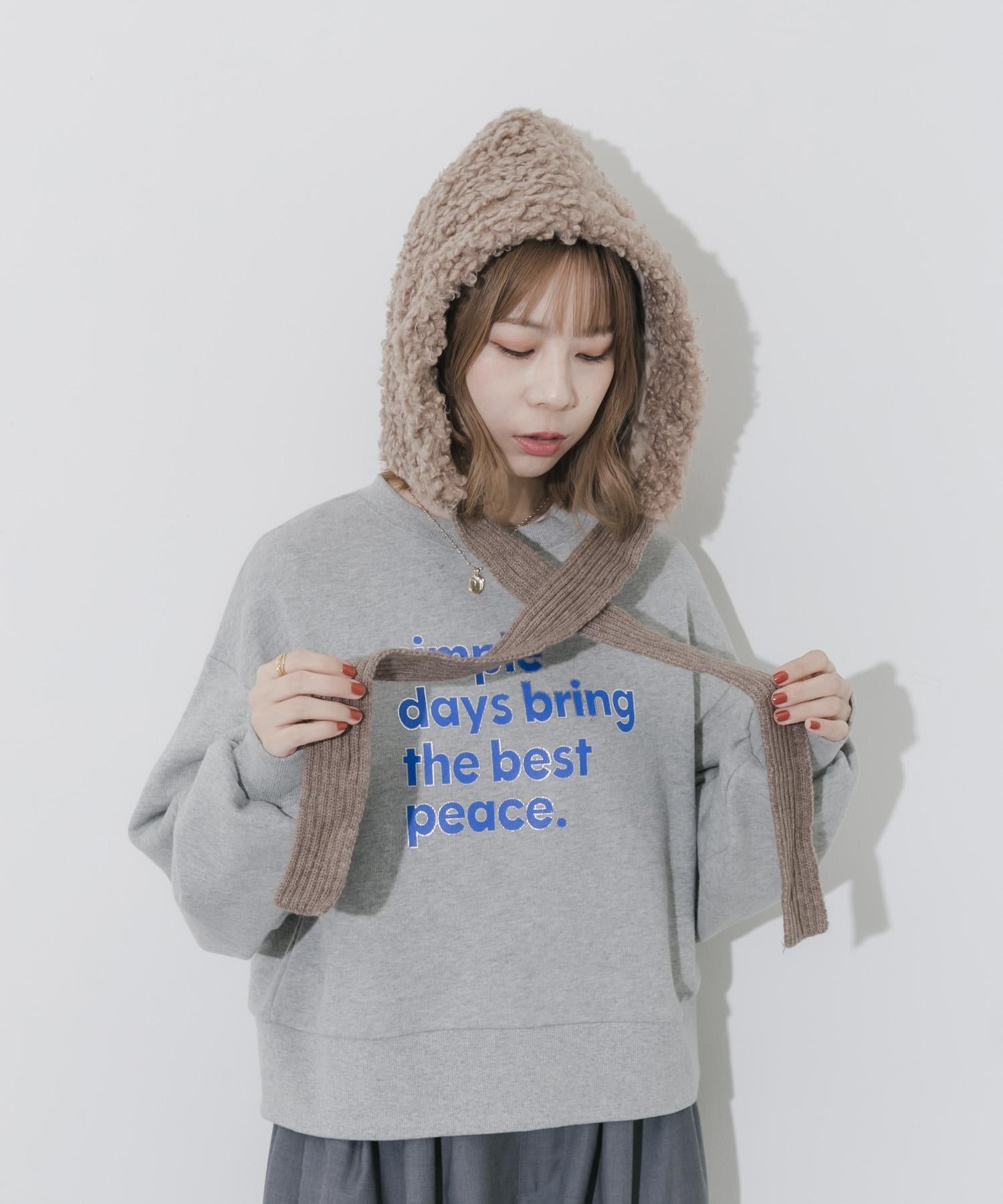 下巴帶部分是羅紋針織的,並用不同的材料加以點綴。