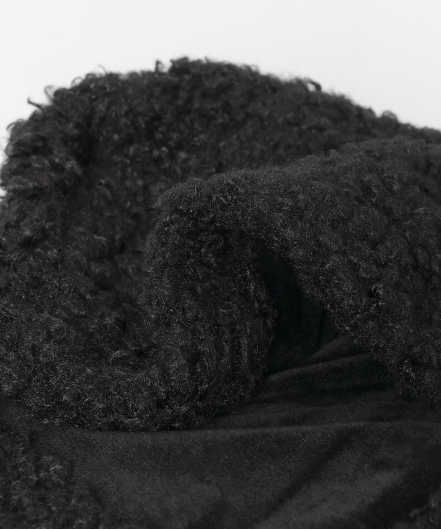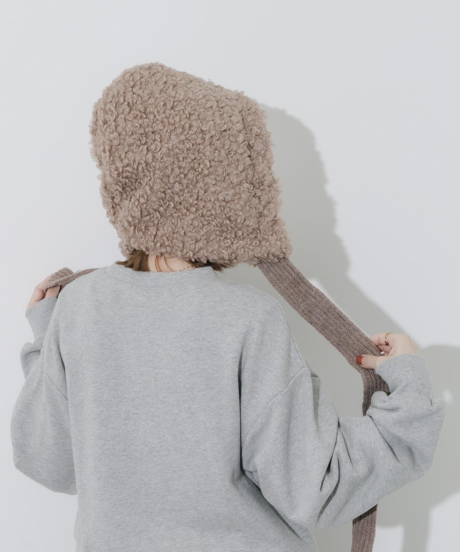 這款溫暖的帽子採用類似貴賓犬毛皮的蟒蛇絨材料製成。