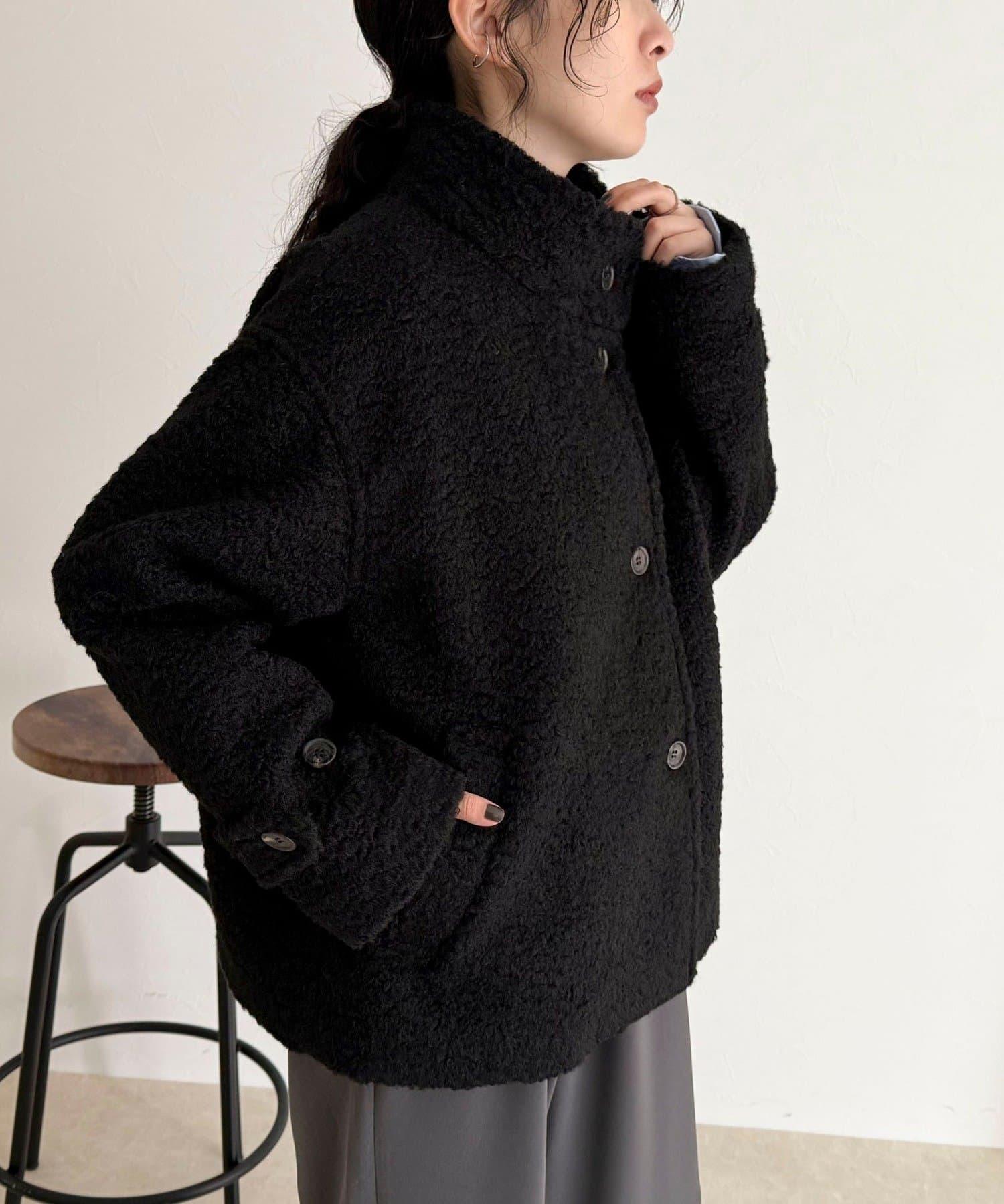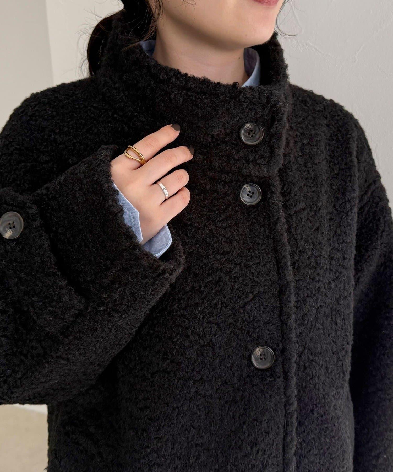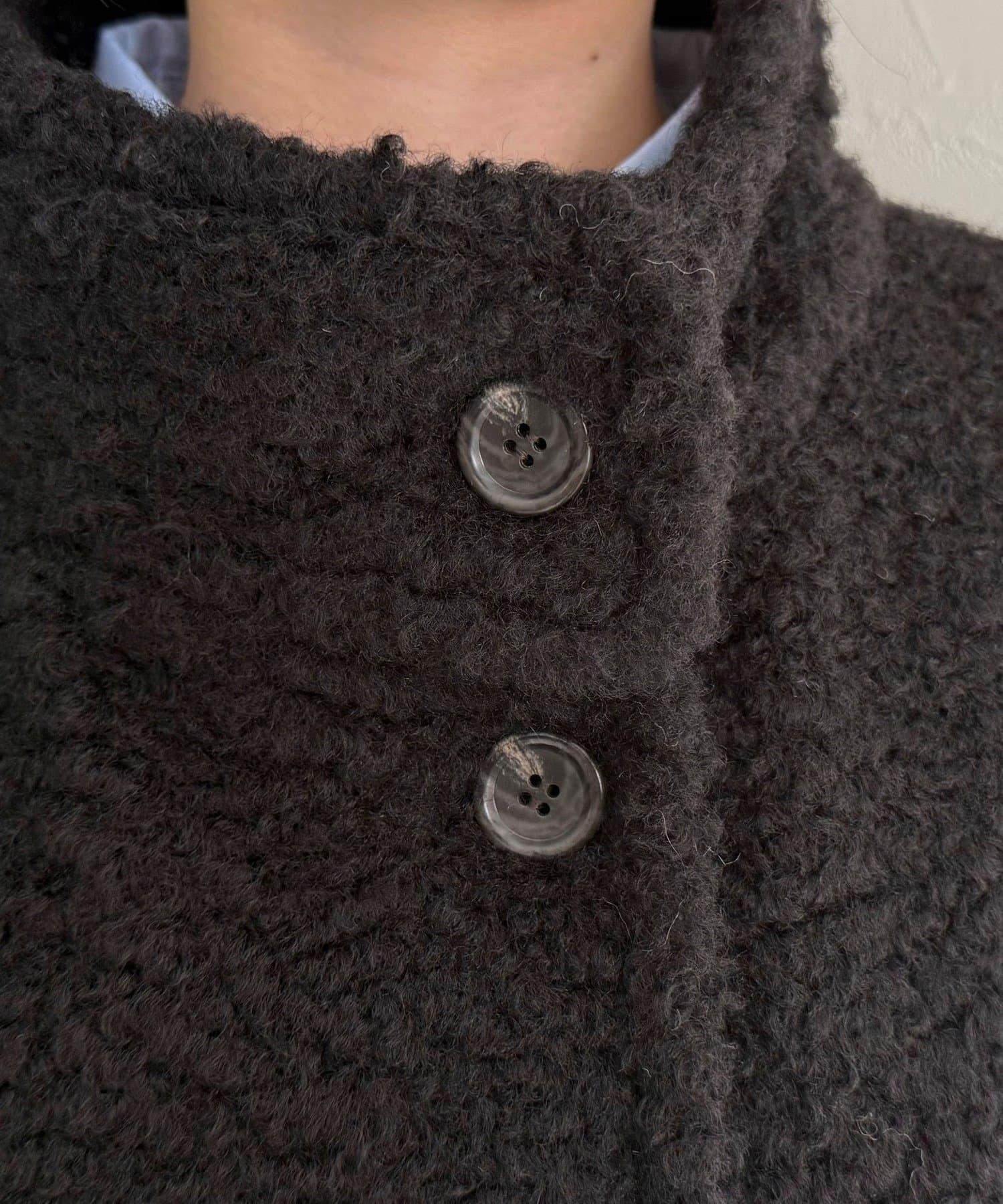 這是一款立領大衣,蓬鬆的體積吸引眼球。