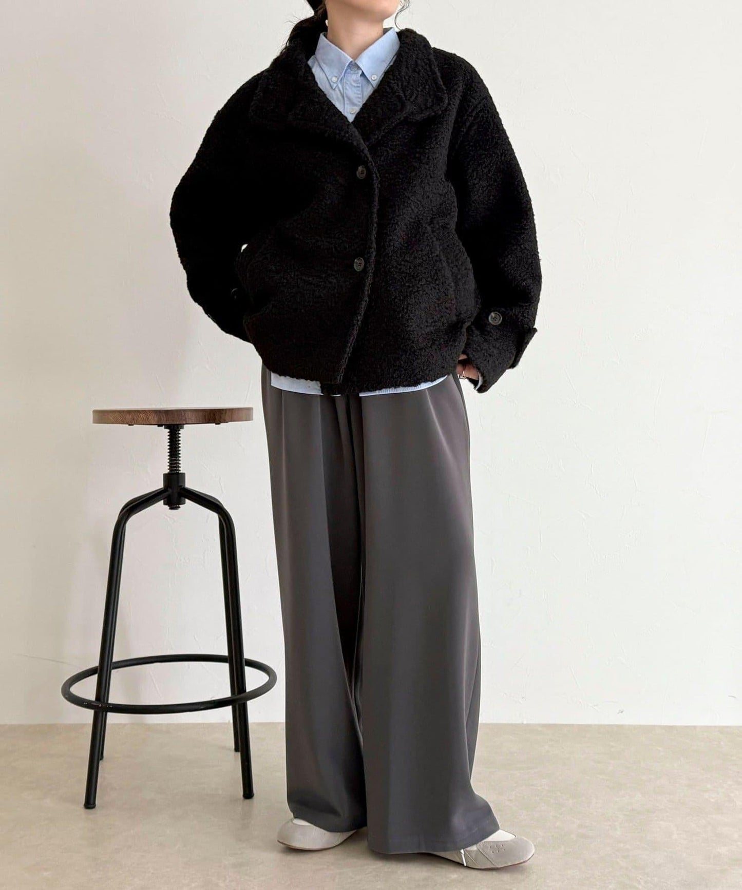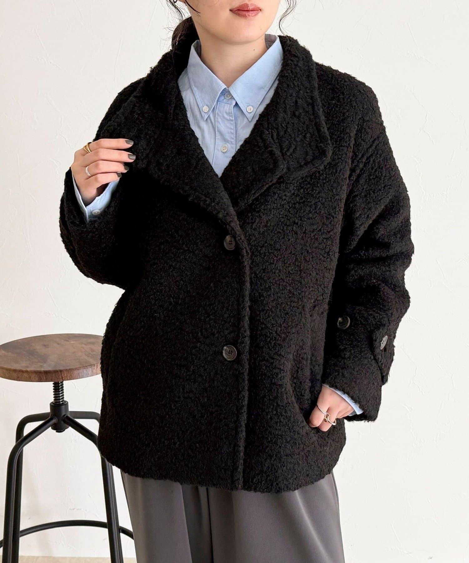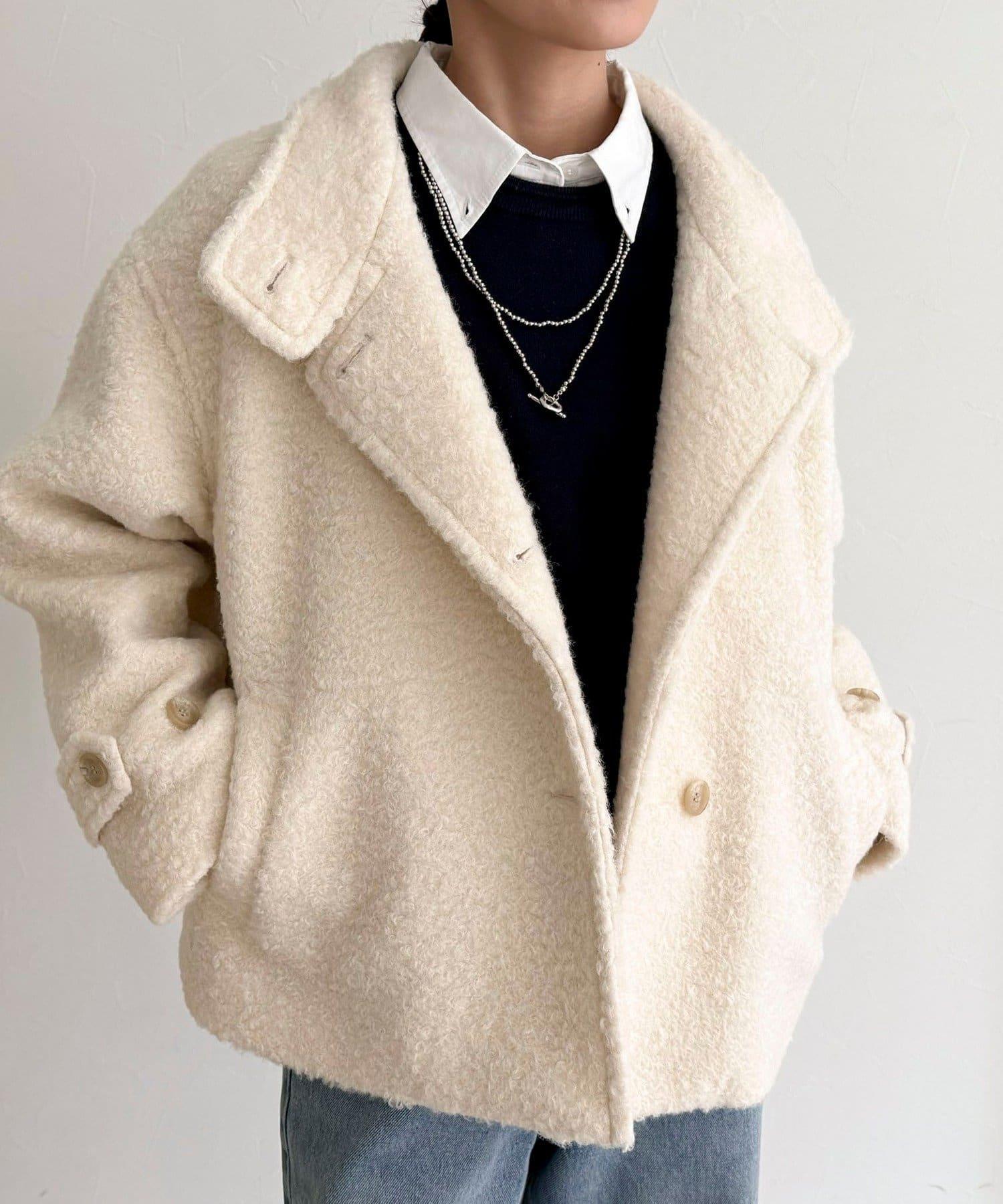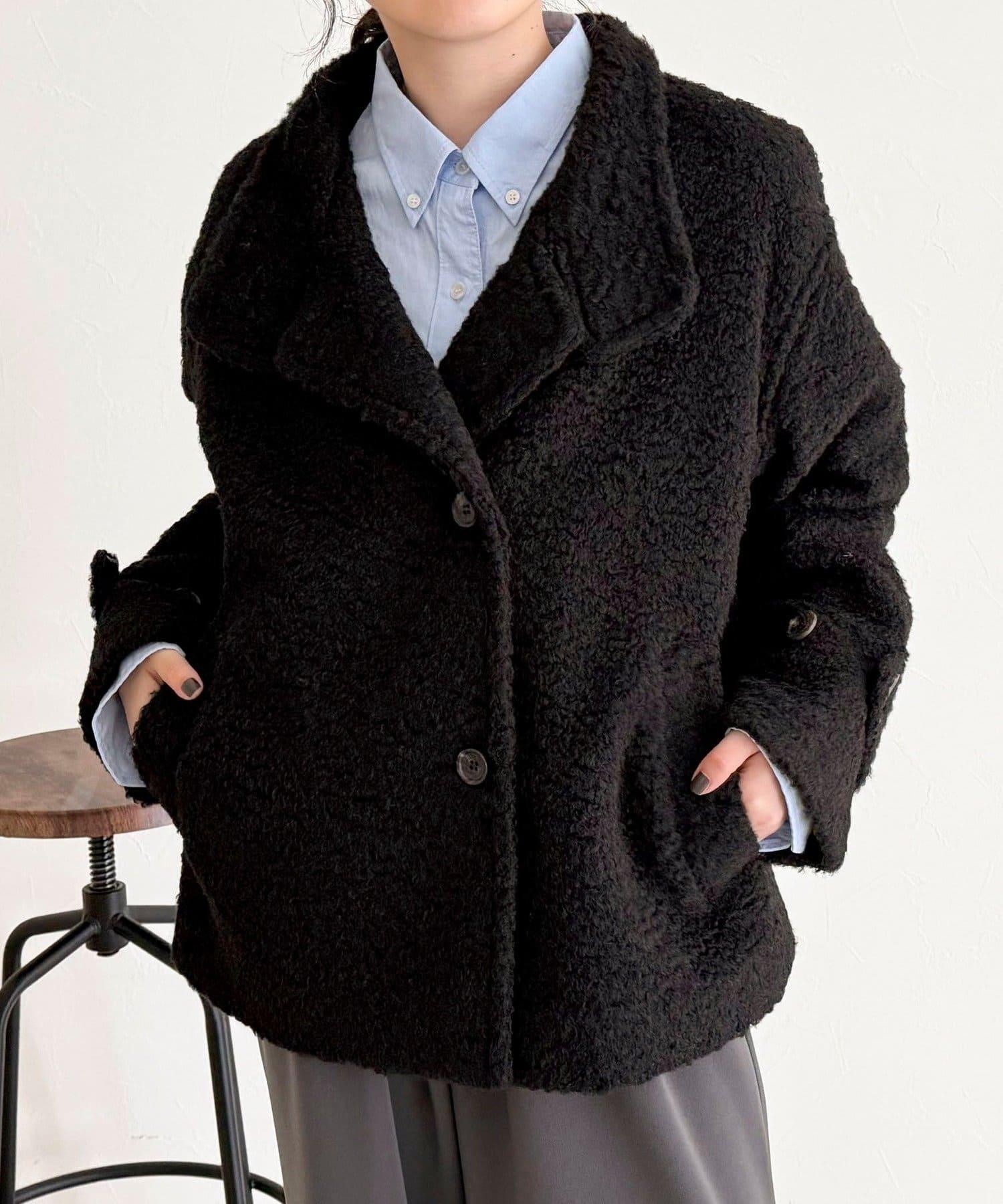 這是一款立領大衣,蓬鬆的體積吸引眼球。