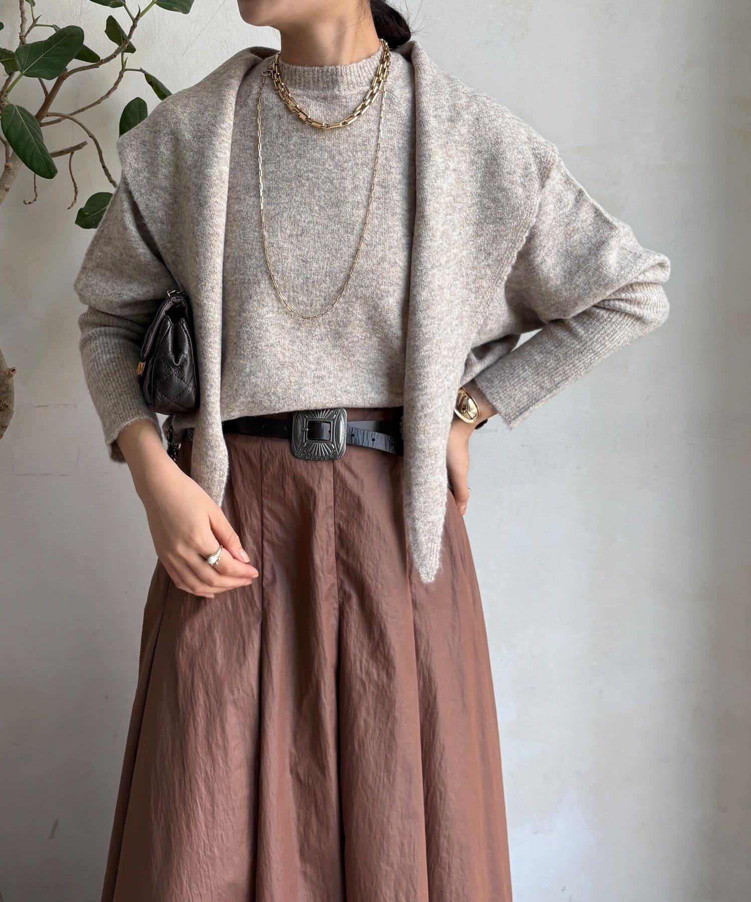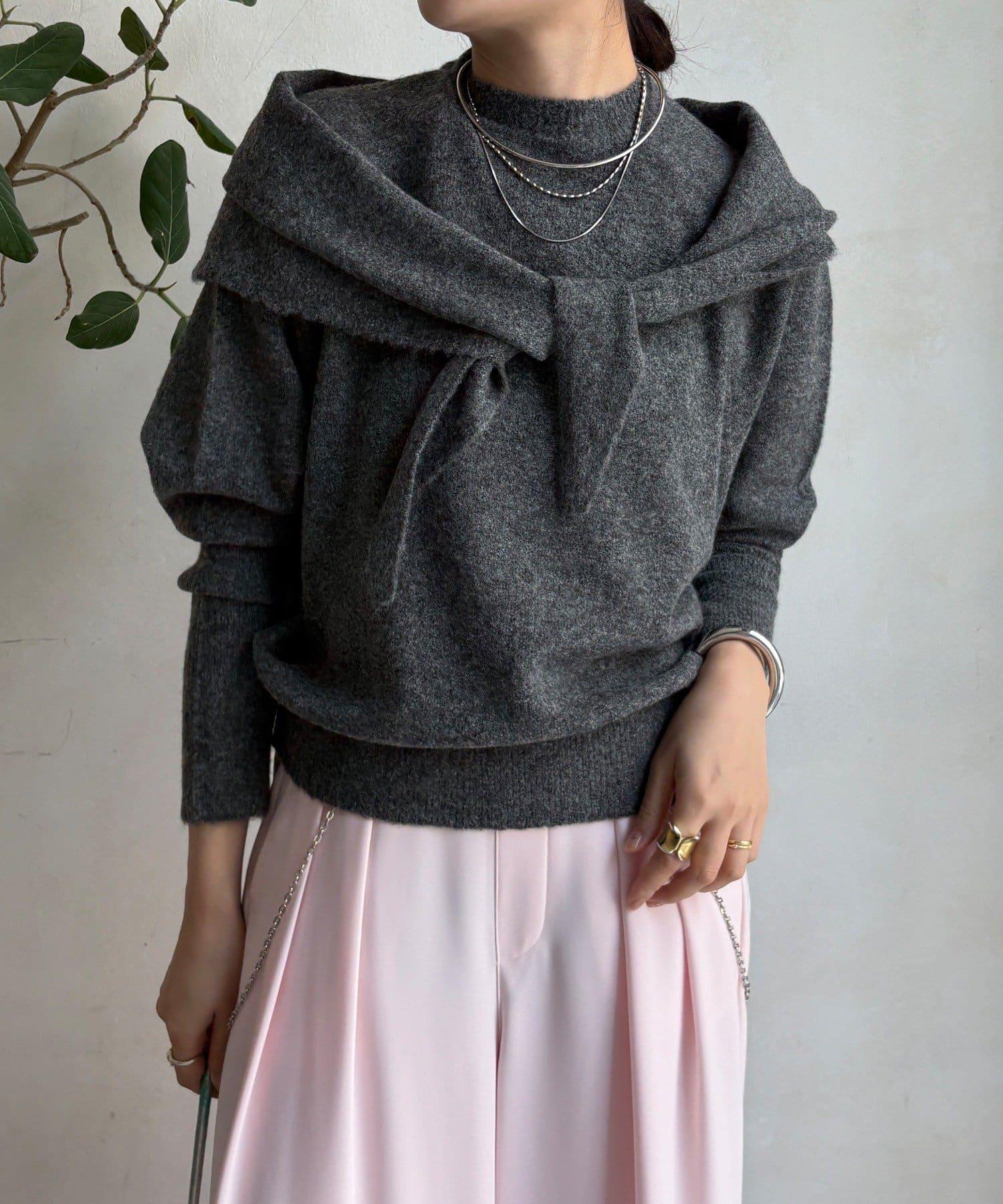 將披肩纏繞起來,可營造立體感;將披肩垂下,可營造時尚感、