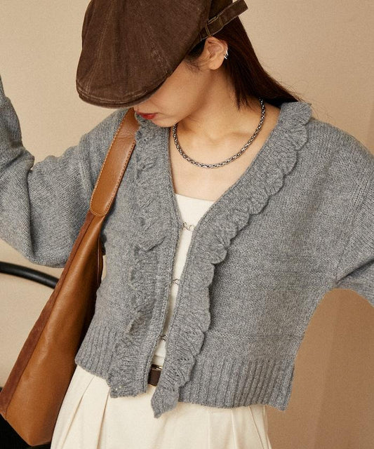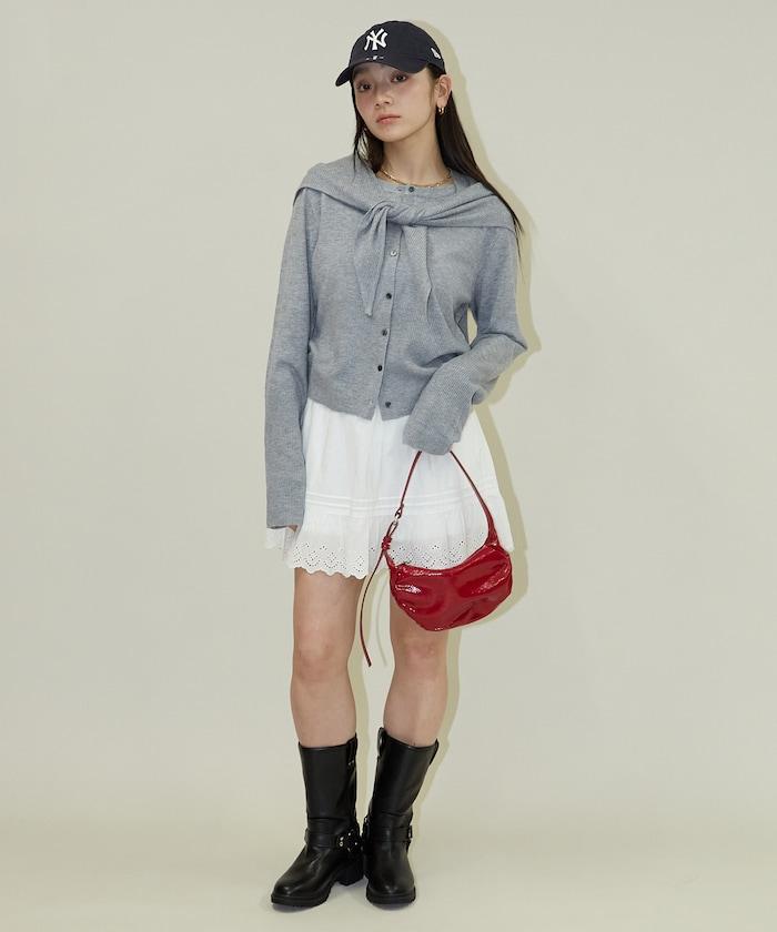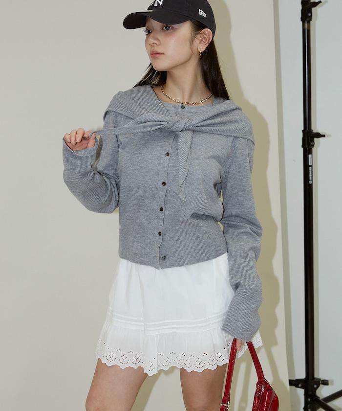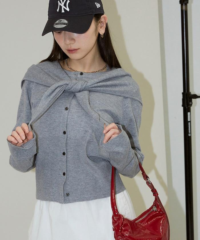 圓領開衫和披肩以相同的面料製成,設計新潮。