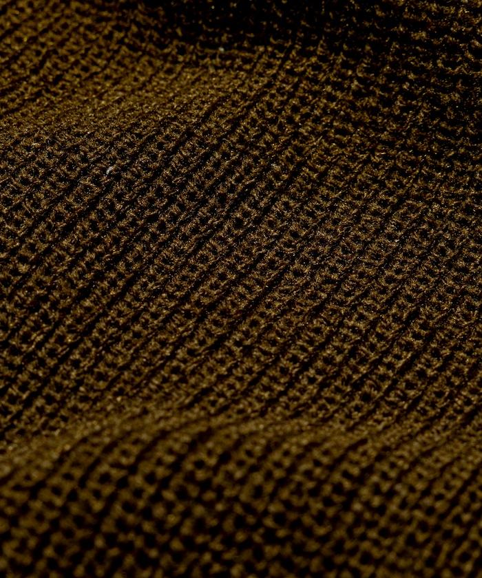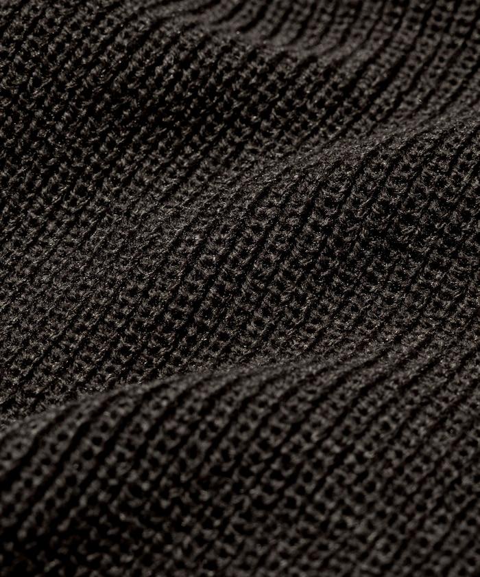 這是一款帶有圍巾的針織帽,圍巾從耳朵一直覆蓋到下巴。