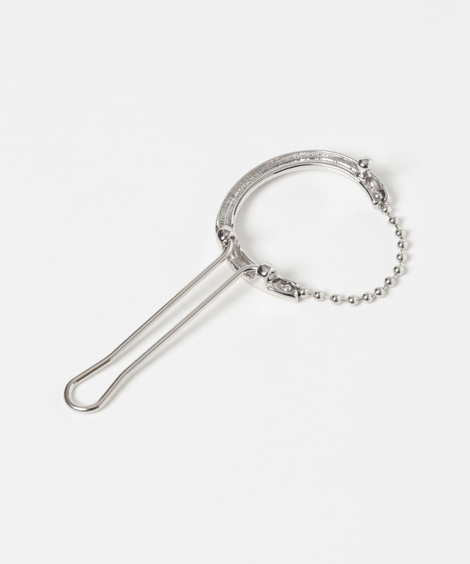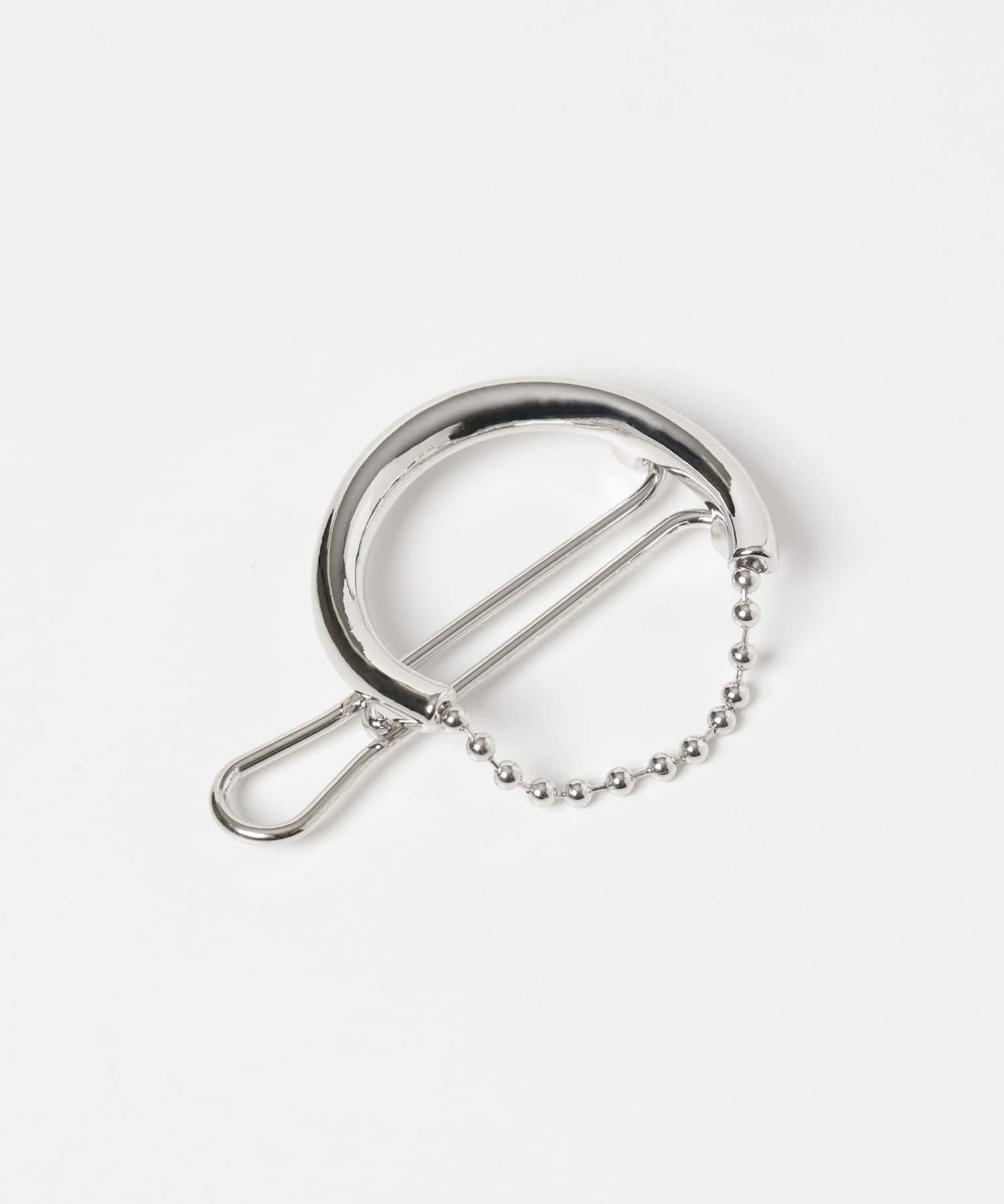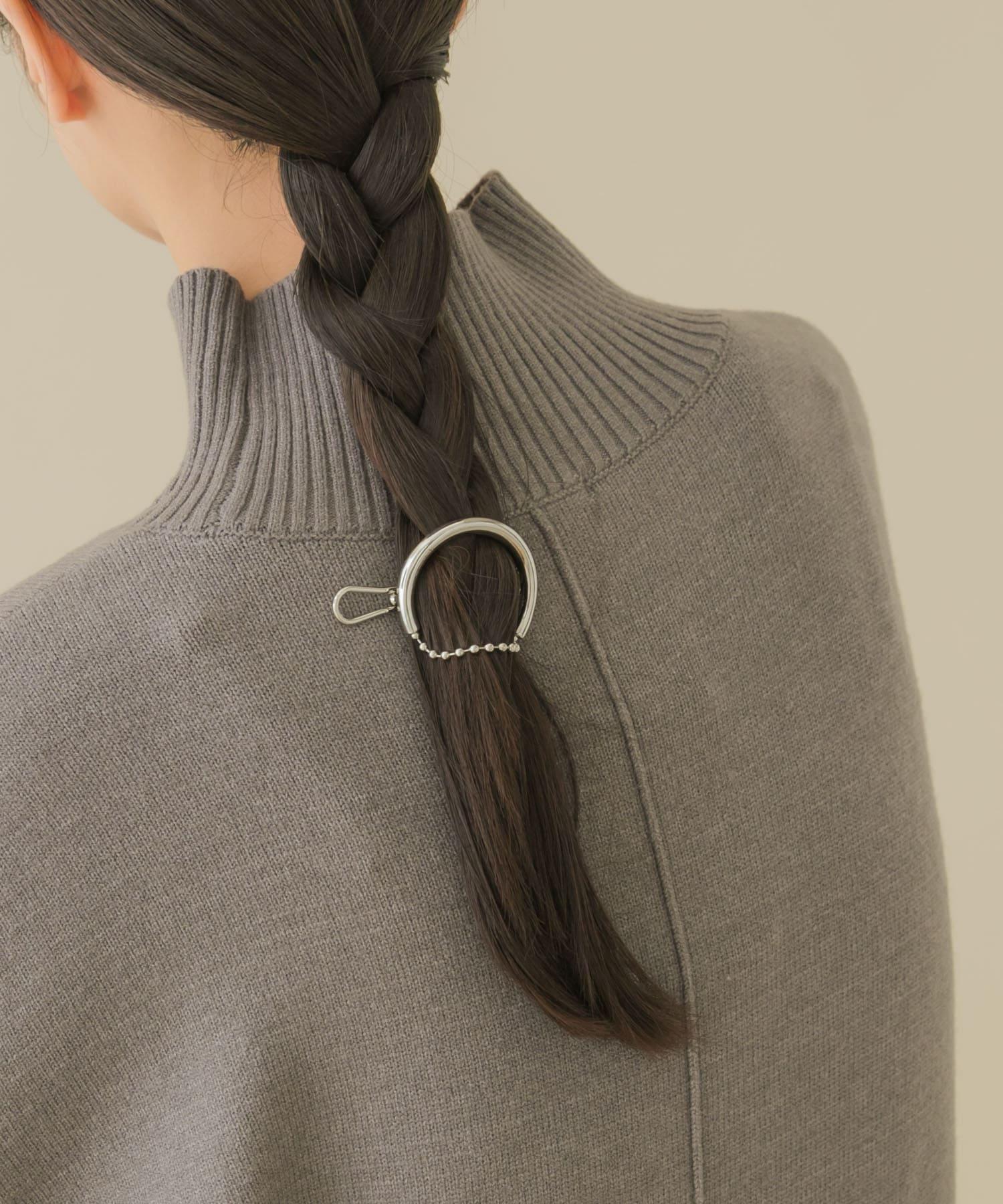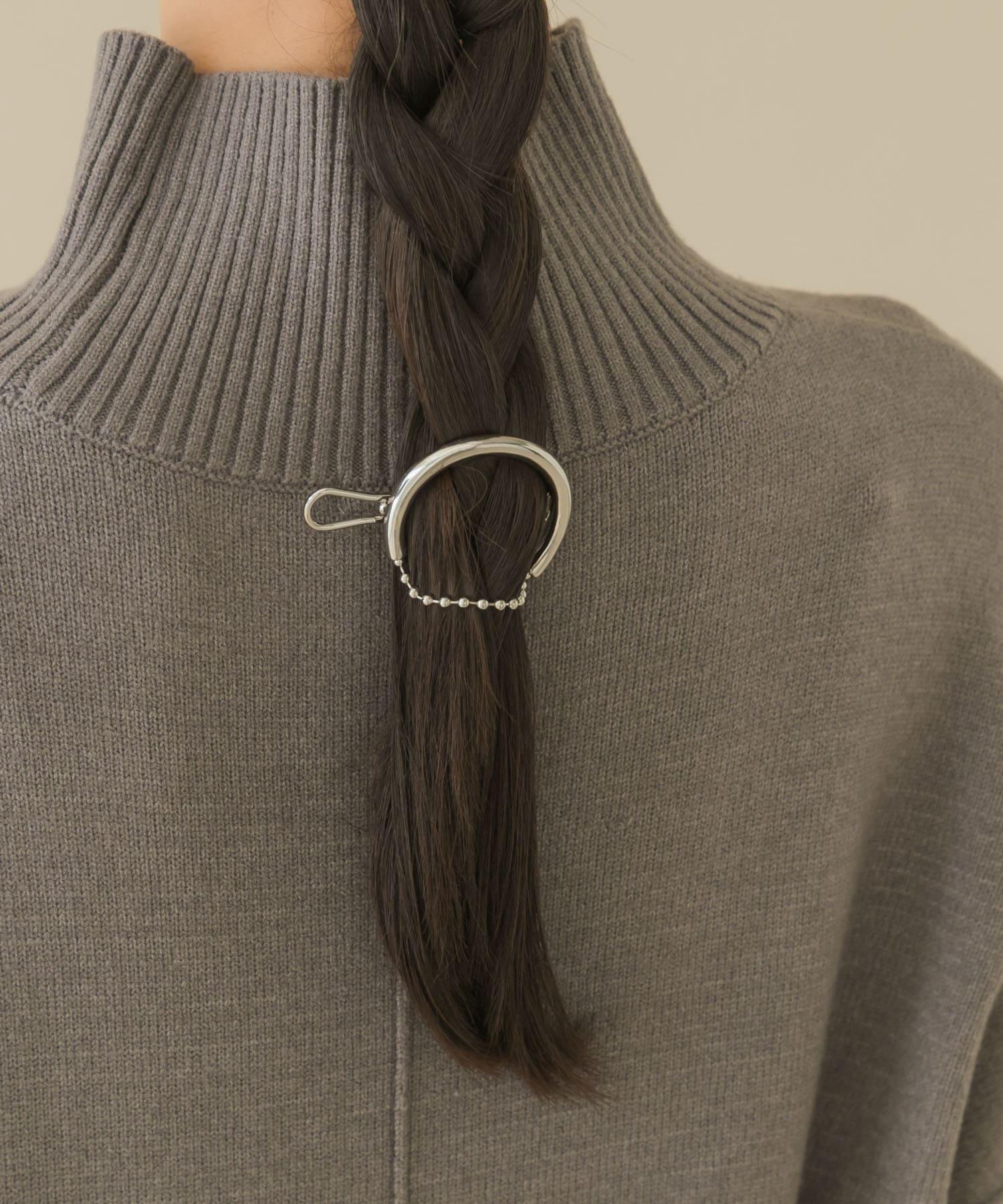 髮夾上的金屬線與球鏈對接,形成一個圓形輪廓。