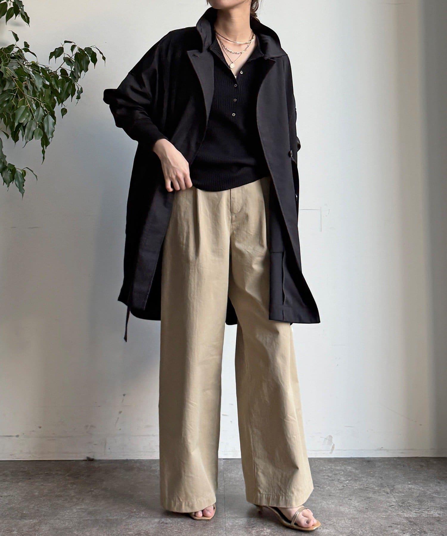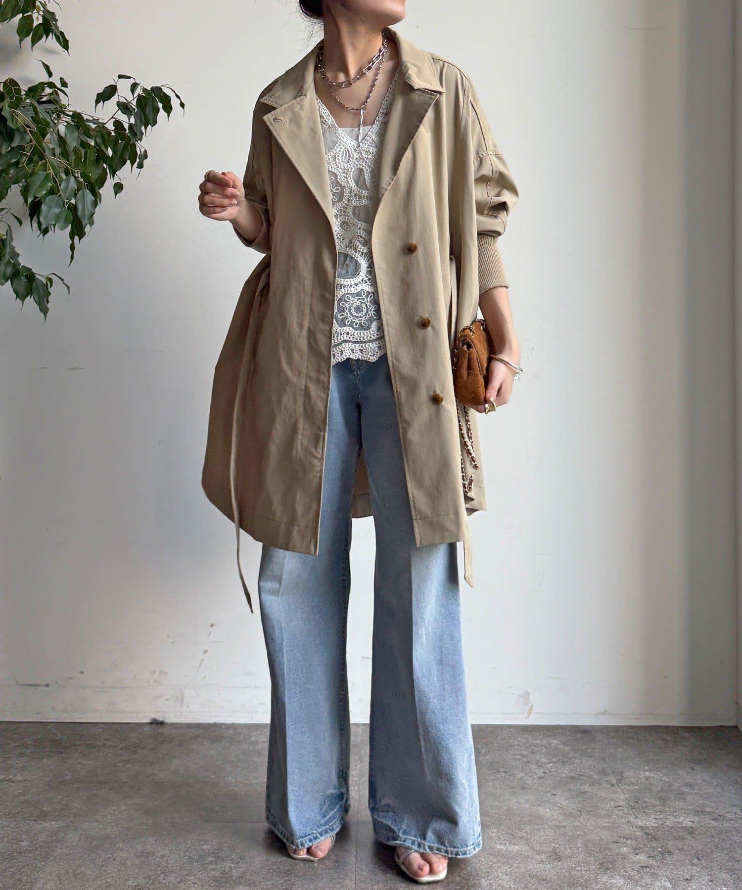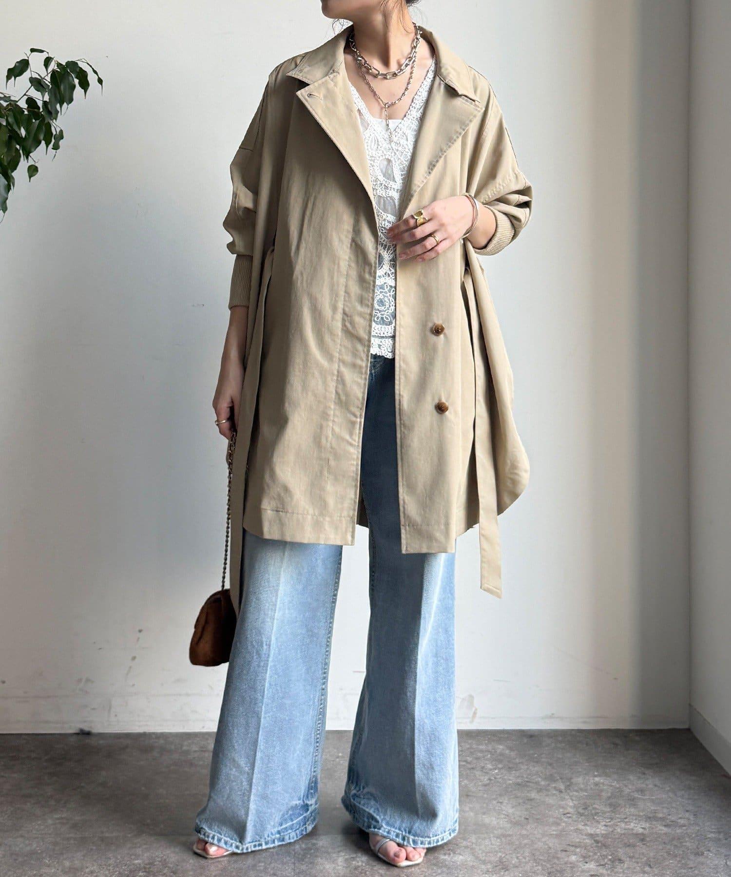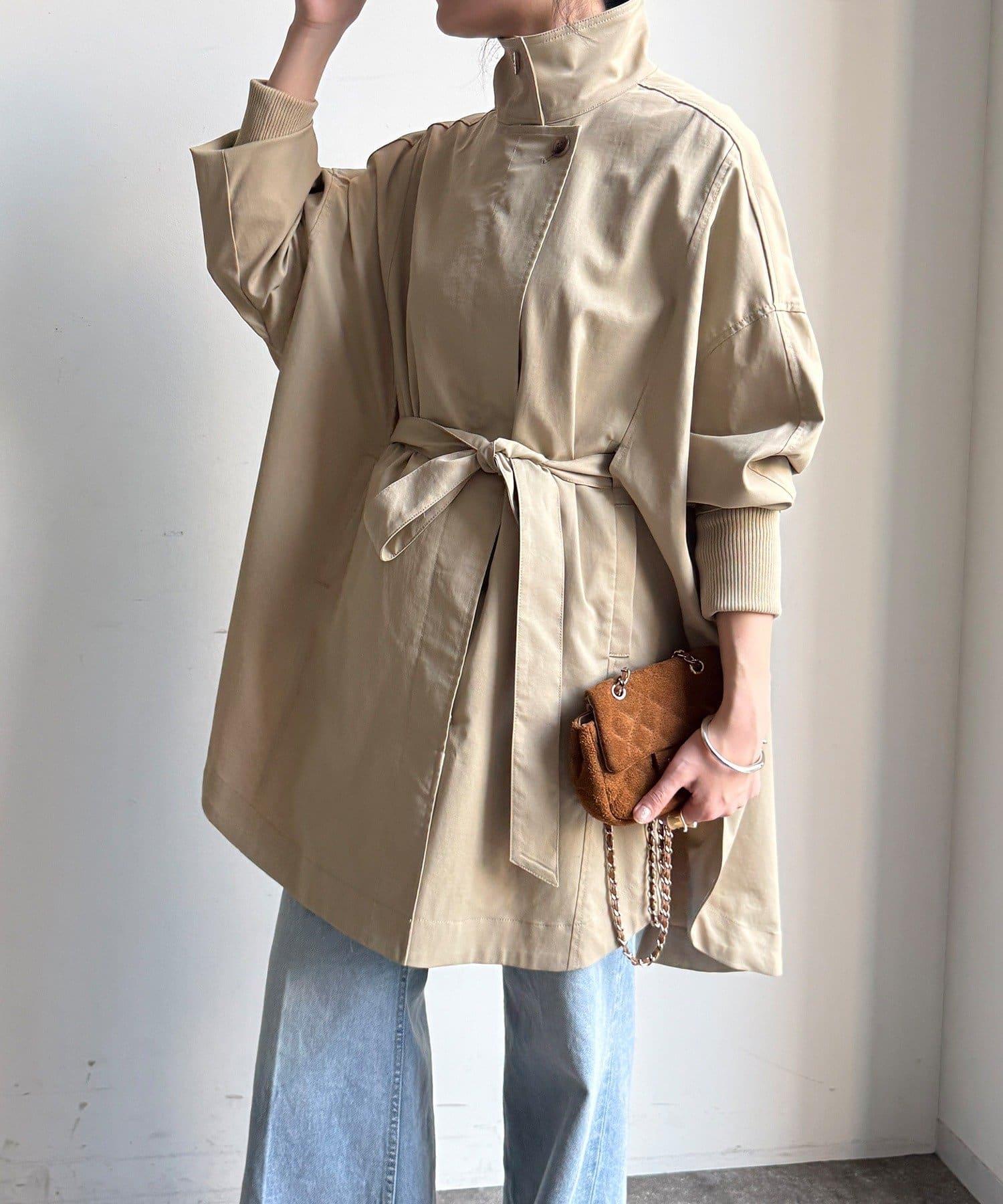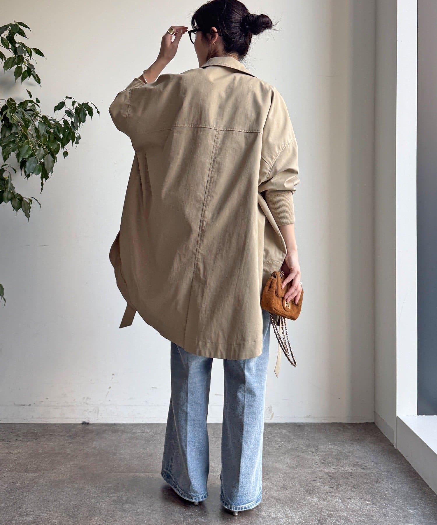 羅紋袖給人舒適的印象。圓形輪廓風衣。