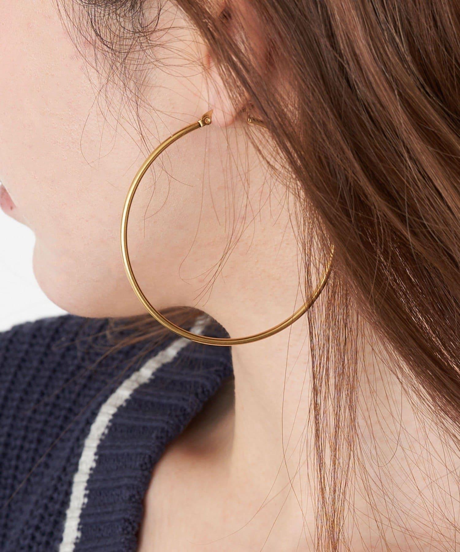 大號環形耳環帶來出眾的小臉效果。