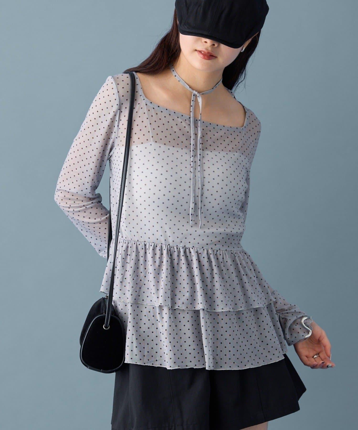 薄紗材質的透明感在點狀圖案的可愛中表現出女性的柔美。