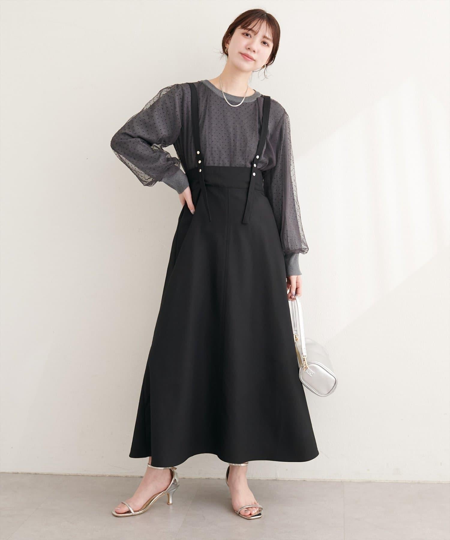 圓點按扣設計 2WAY 半身裙