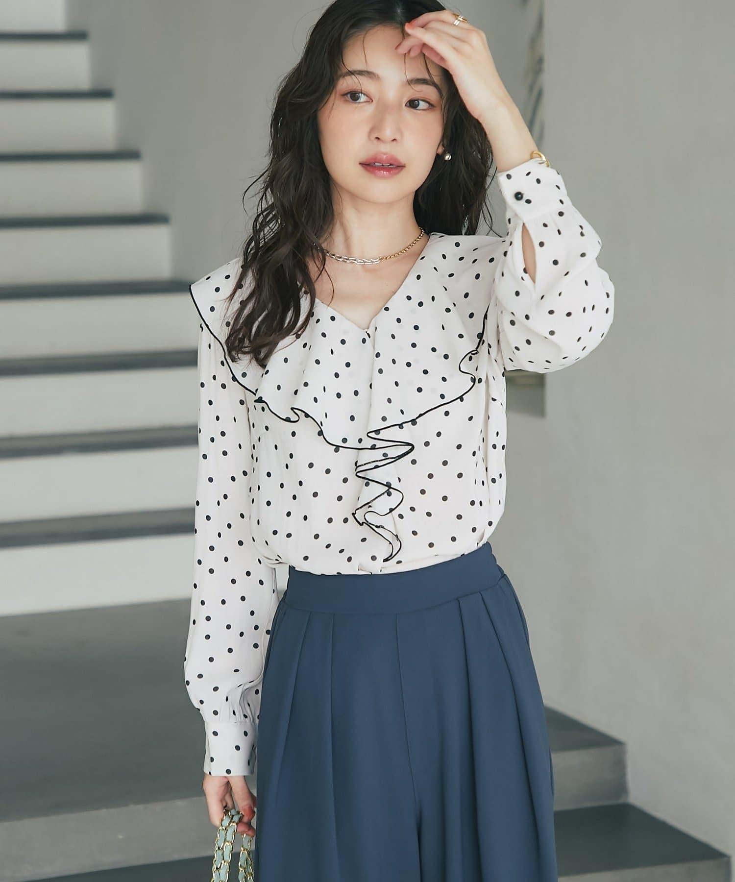 圓點荷葉邊襯衫
