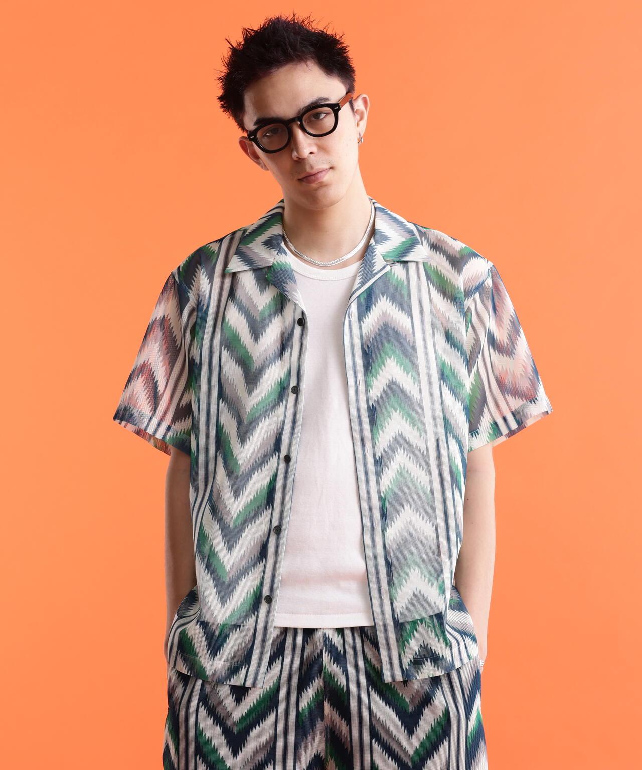 圖案網眼短袖襯衫