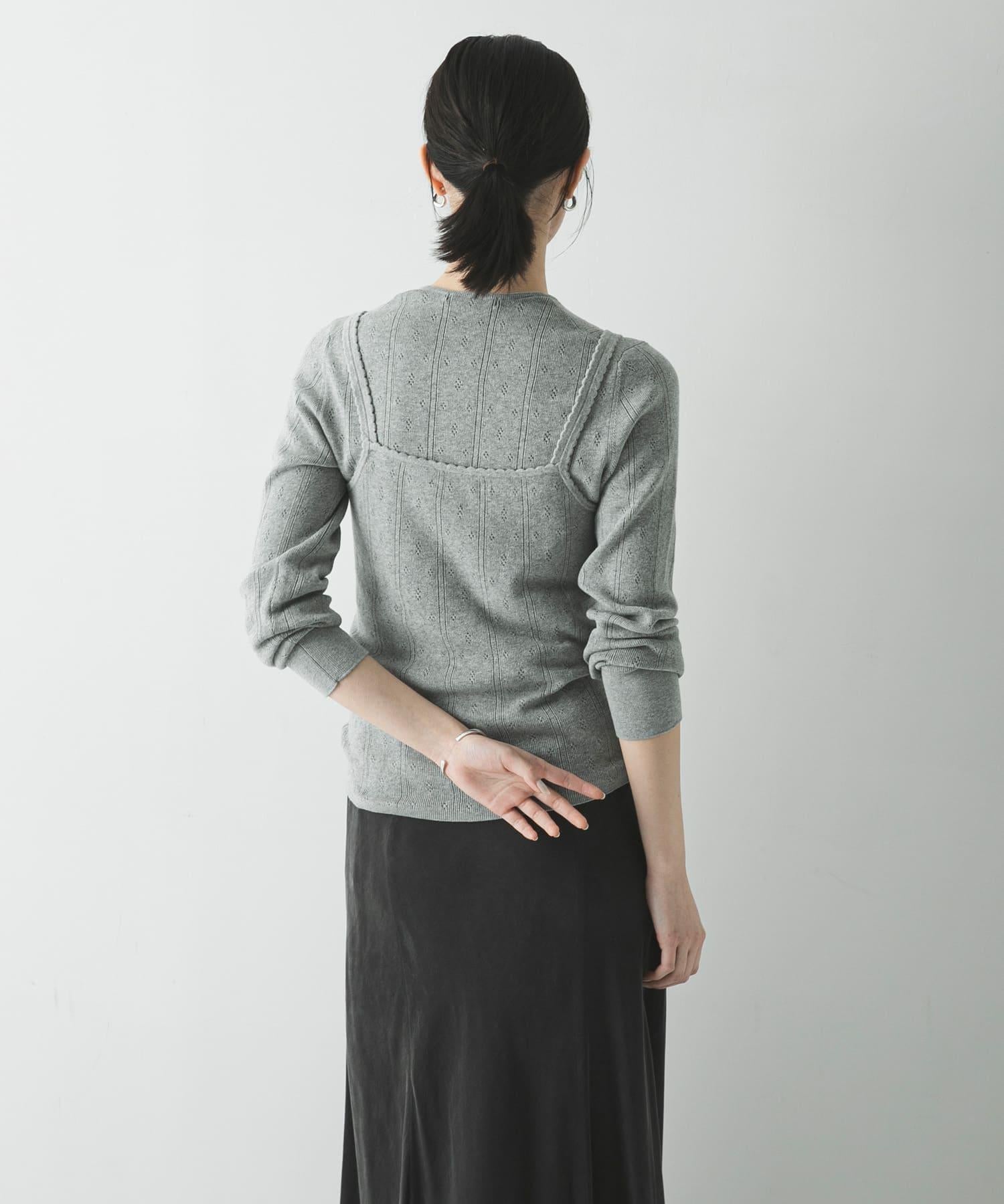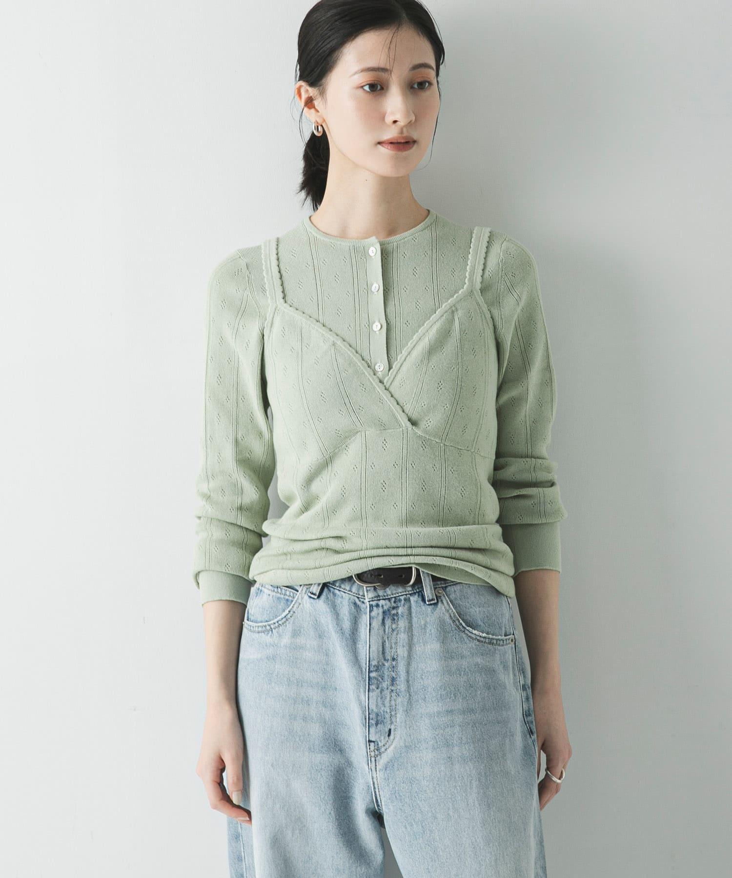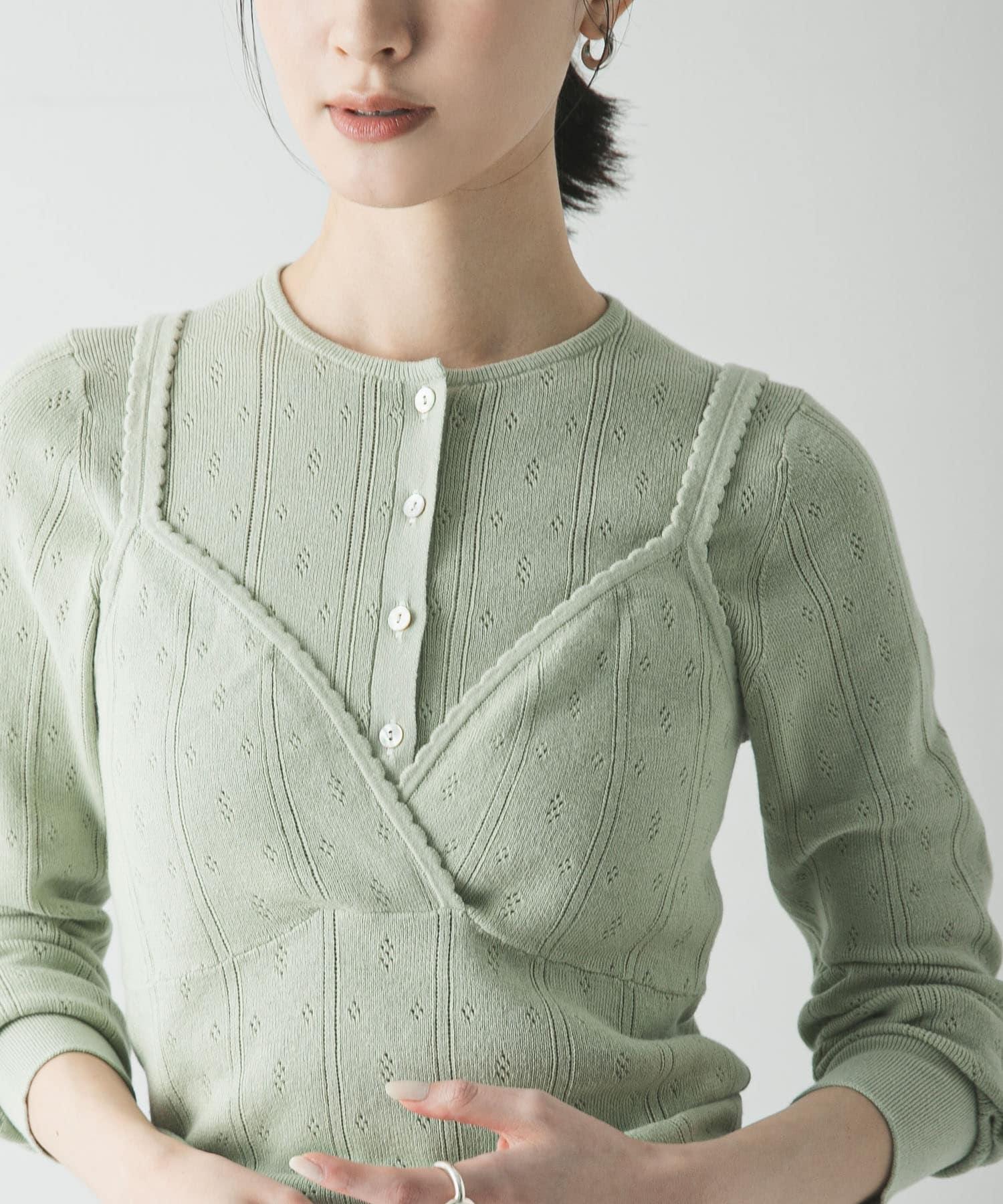 復古般的花紋網眼圖案,顏色精緻,即使成人穿著也不會過於甜膩。時髦的雞心領和適中的小巧版型打造出今年的典型輪廓。這種設計即使單穿也很好看,給人一種精緻的印象。