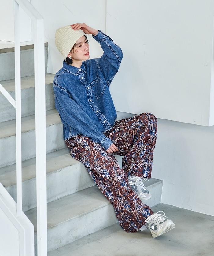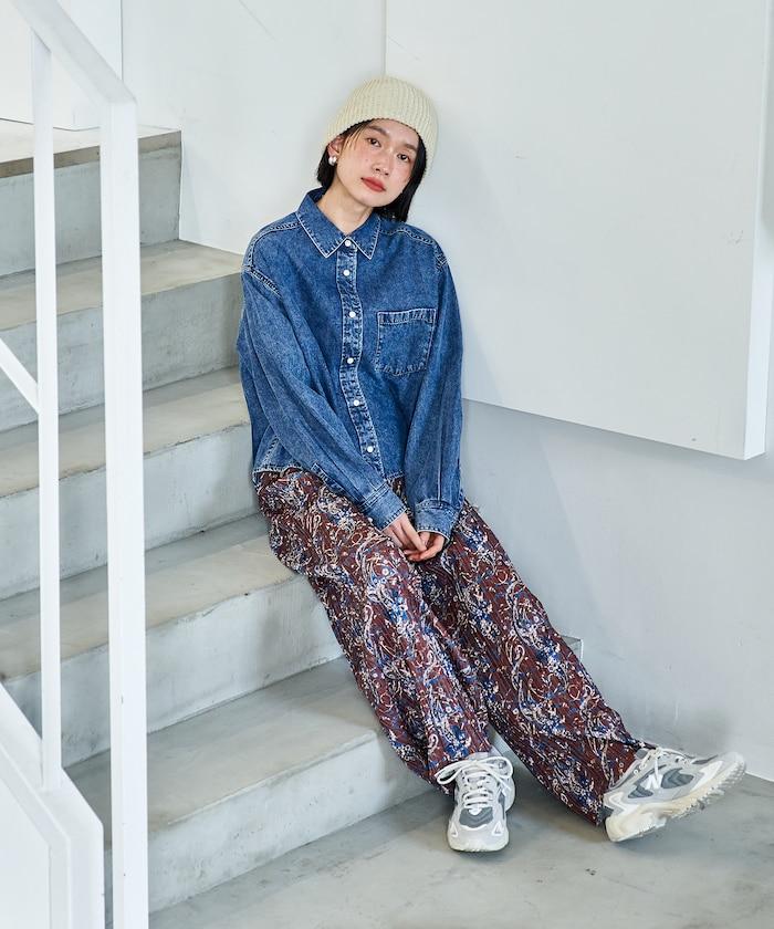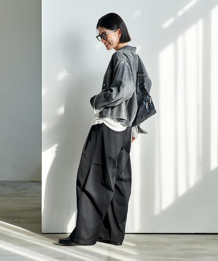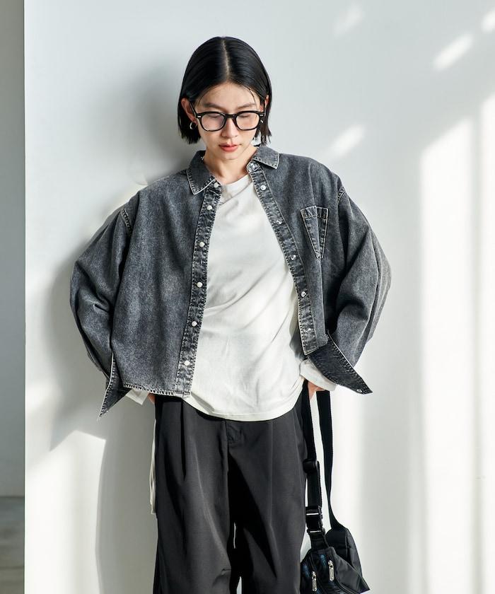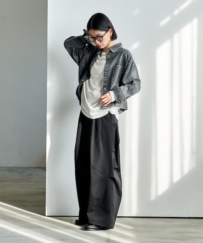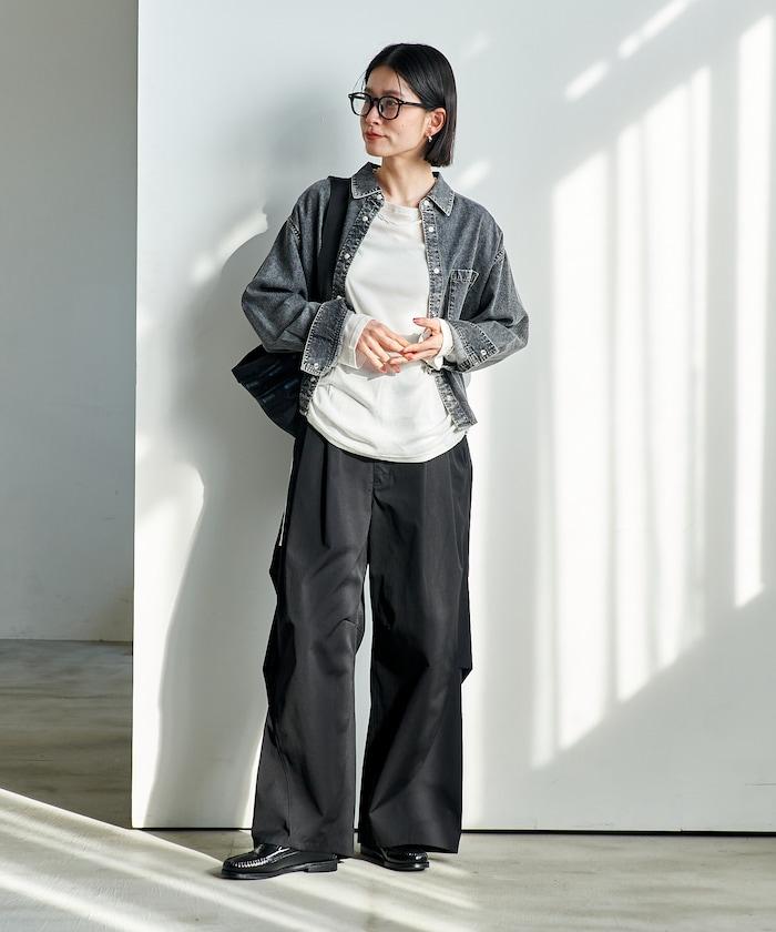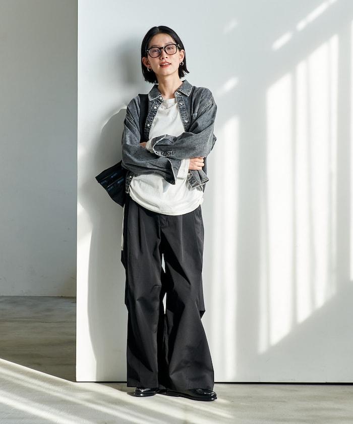 也可與同材質的寬鬆長褲(1140248900850:Throat 寬牛仔長褲)搭配穿著。