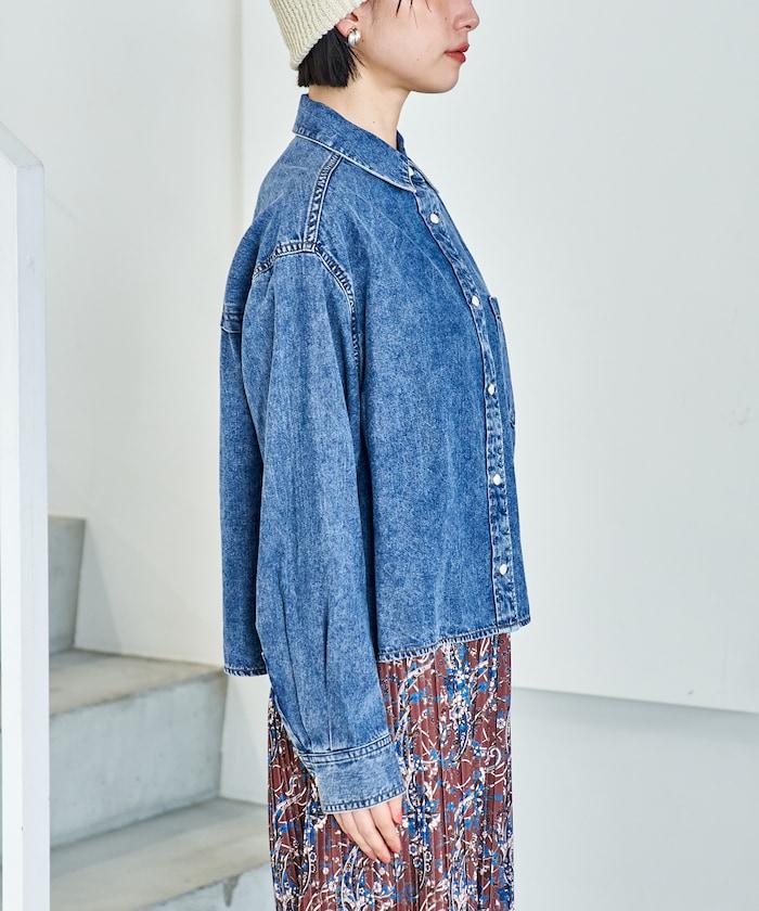 垂墜感牛仔短款襯衫(可成套)