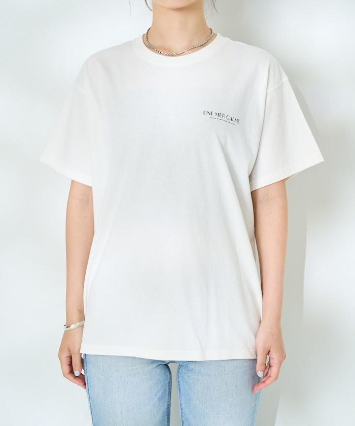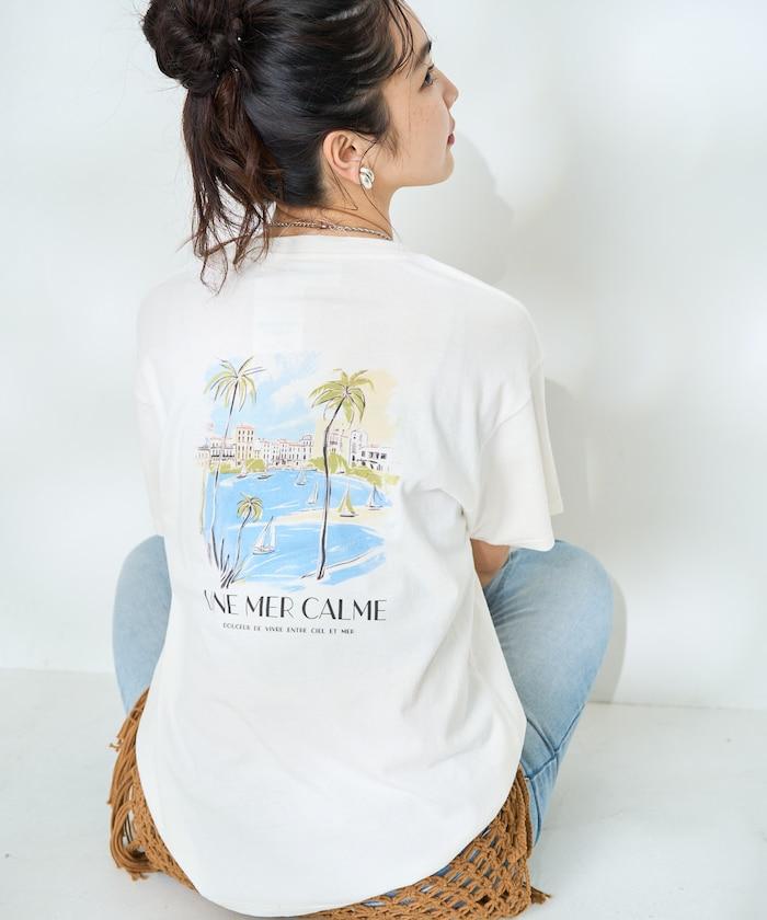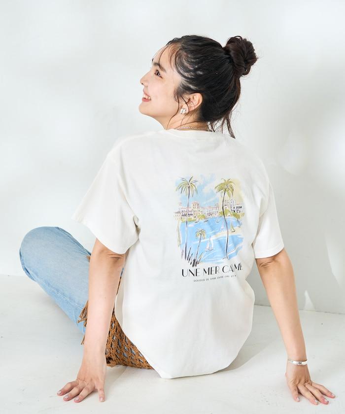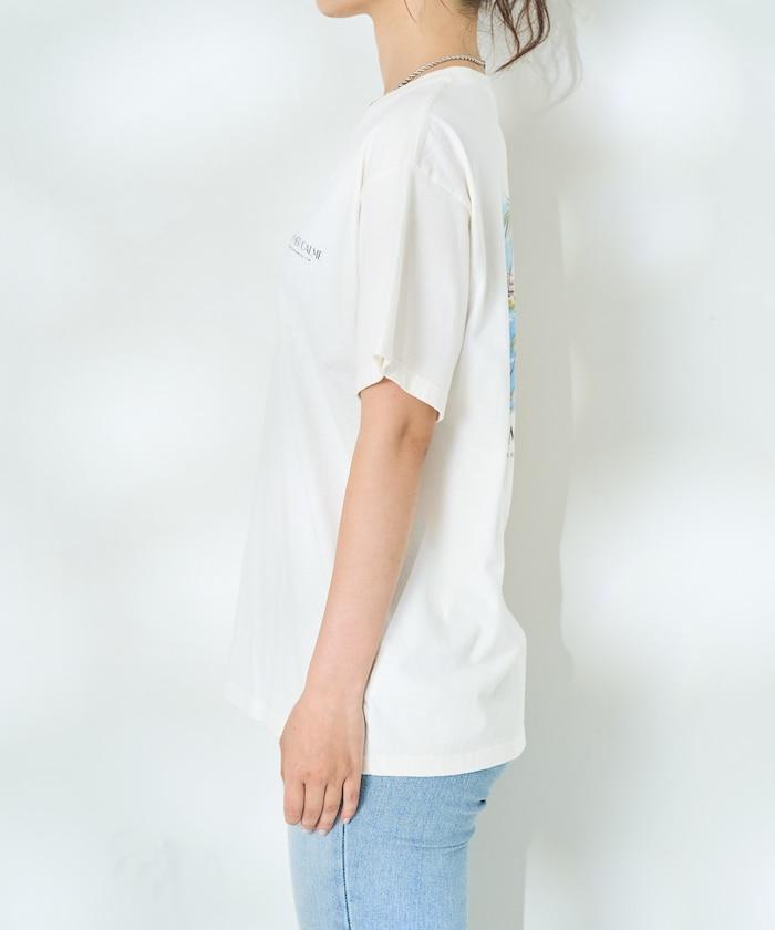 這款印花 T 恤的圖案是一幅山水畫,充滿畫家的氣息。
