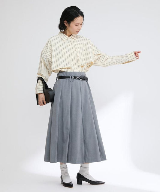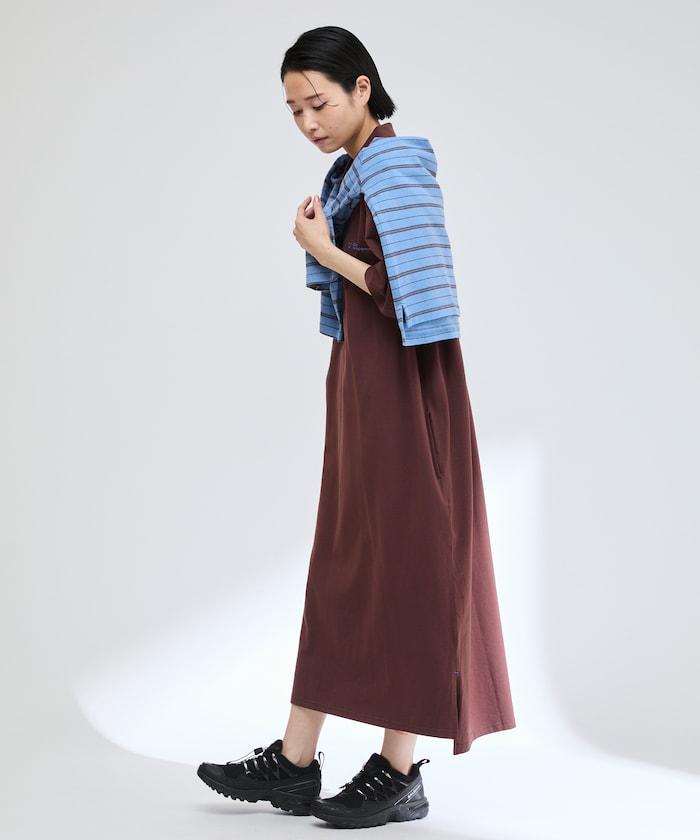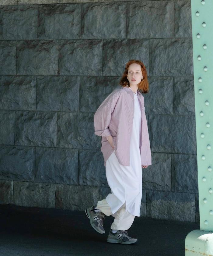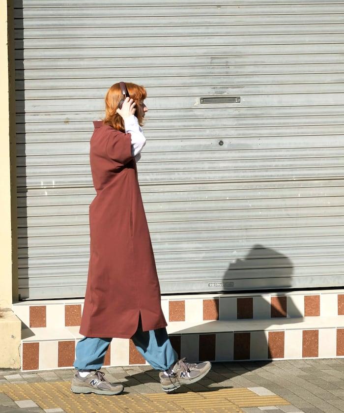 由於下襬處有側邊開衩,因此也建議搭配多層次的下裝。