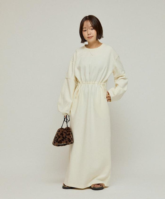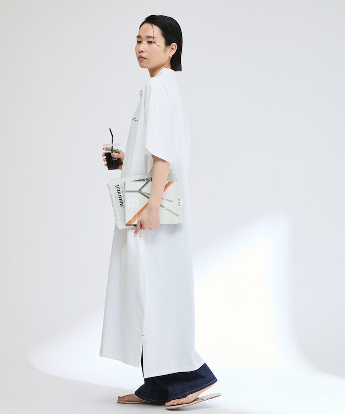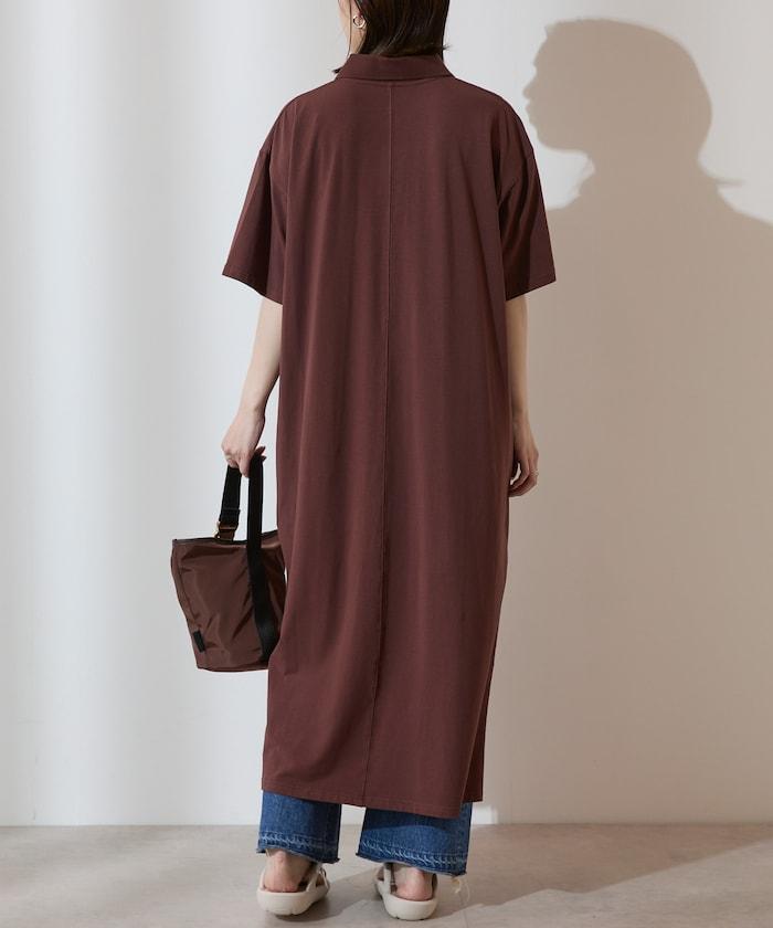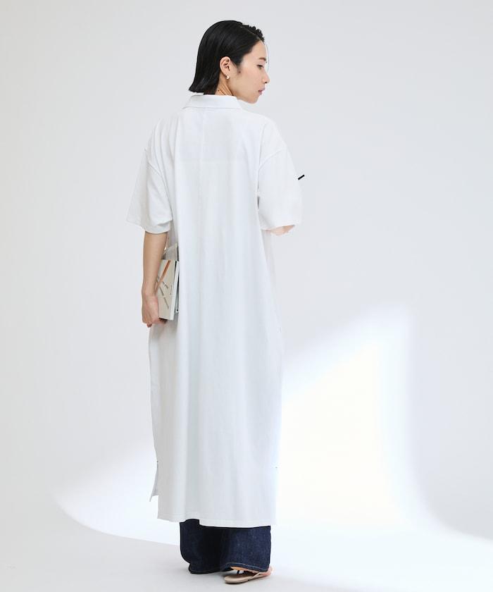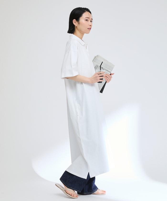 採用原創針織面料的寬鬆馬球連衣裙。