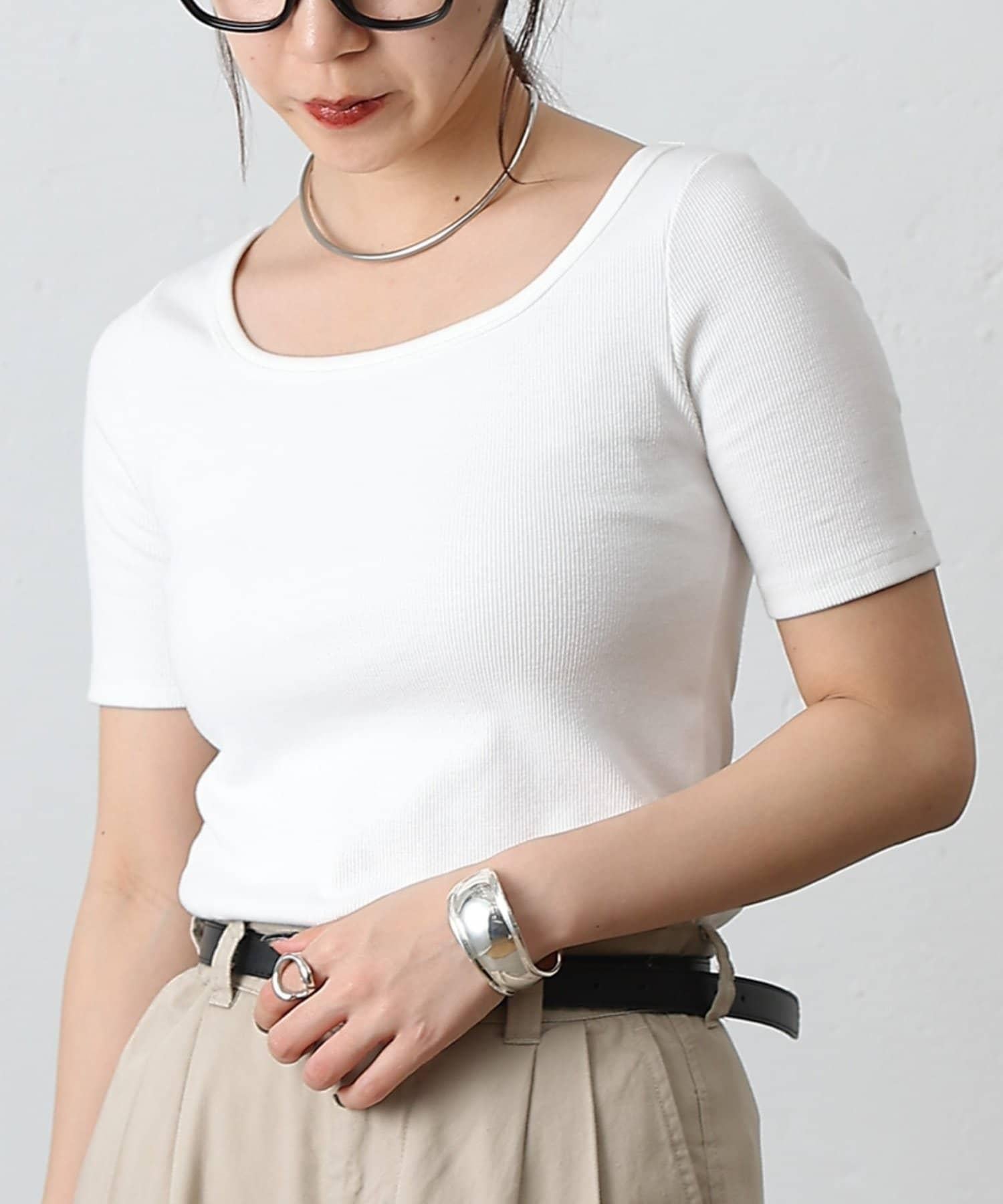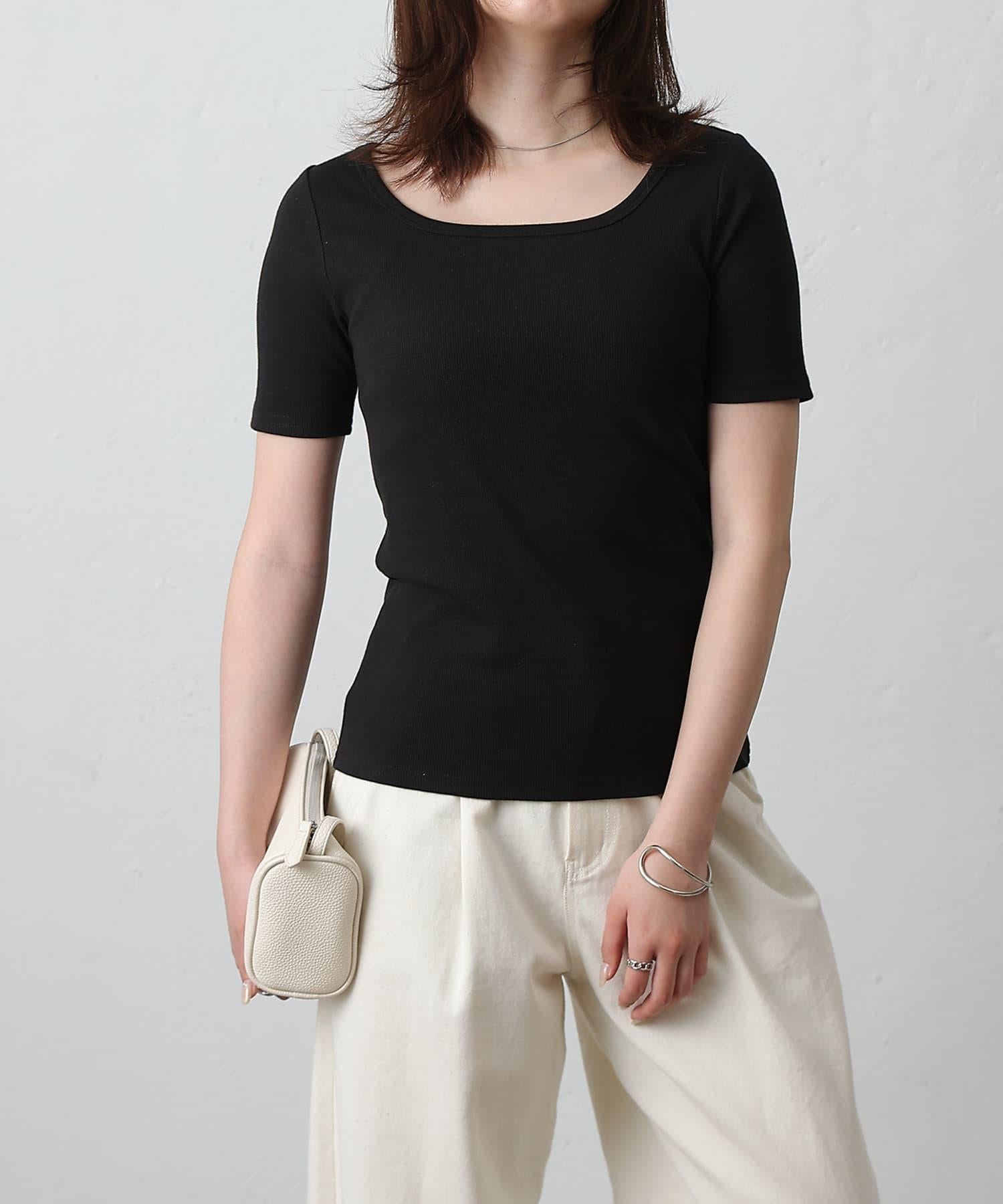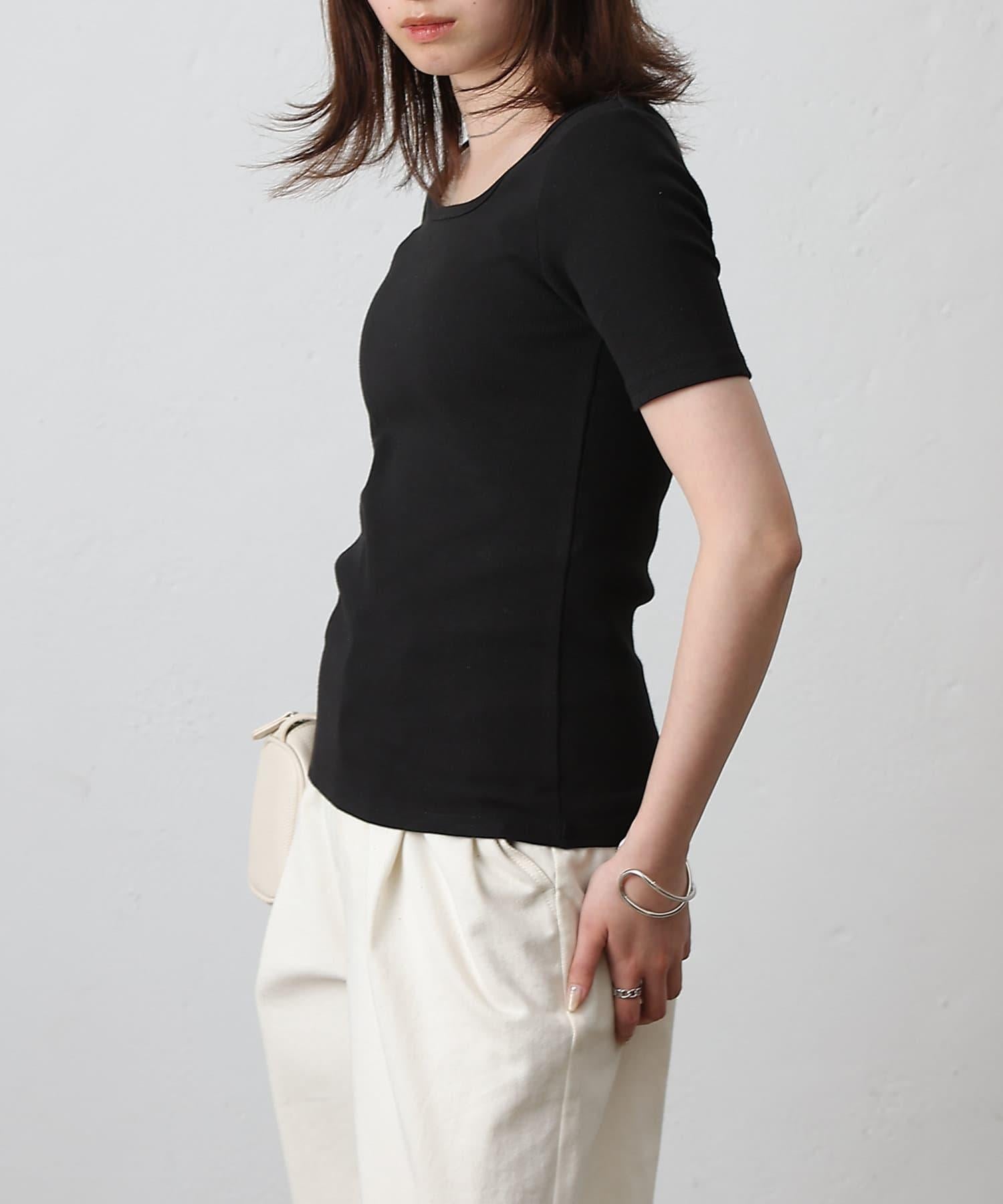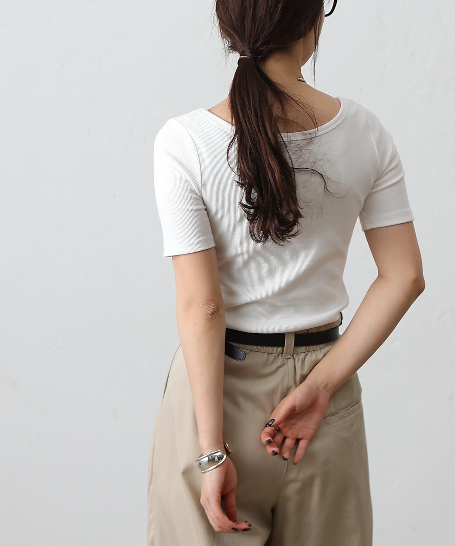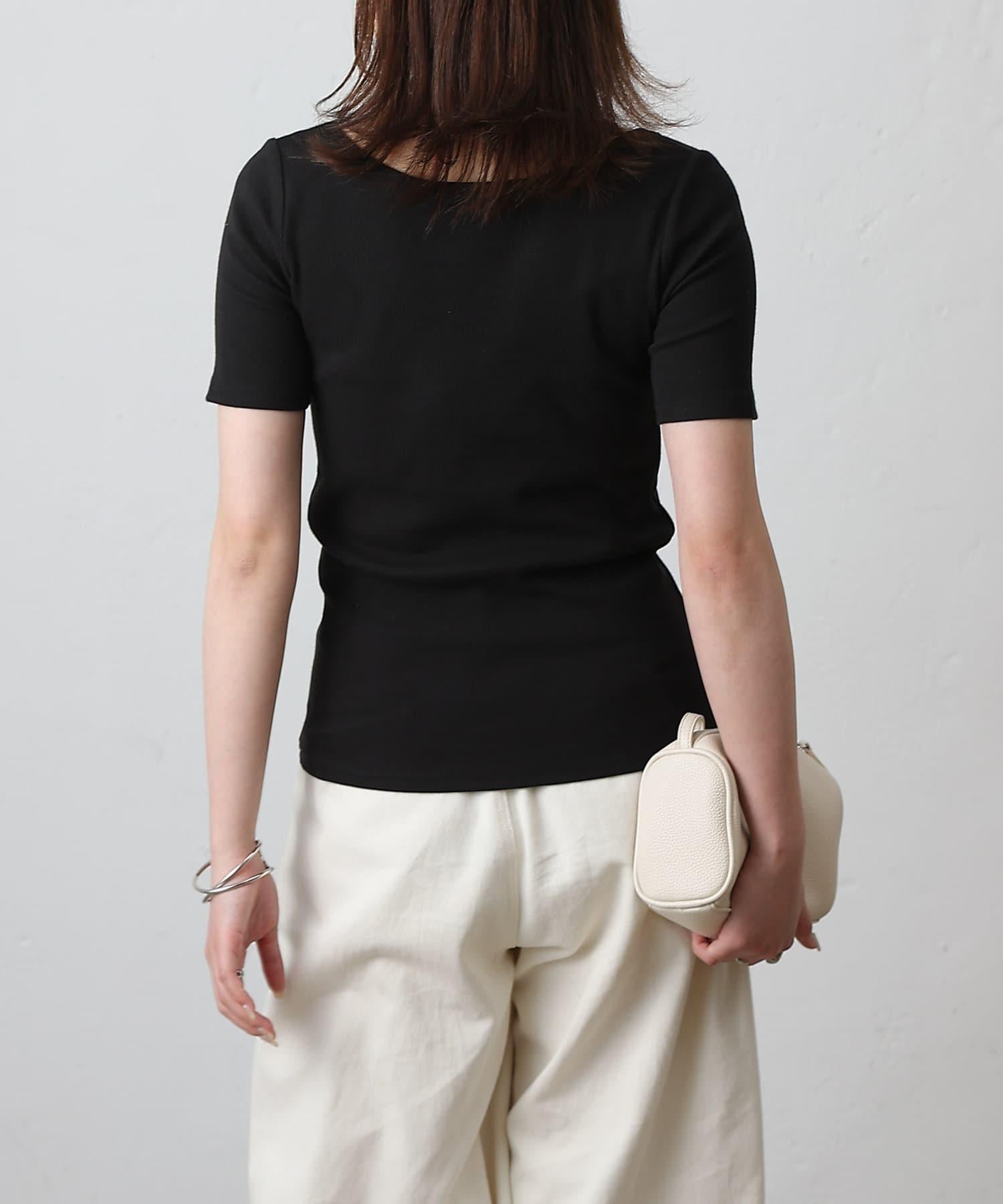 簡約羅紋短袖 T 恤,美觀的肩部設計。