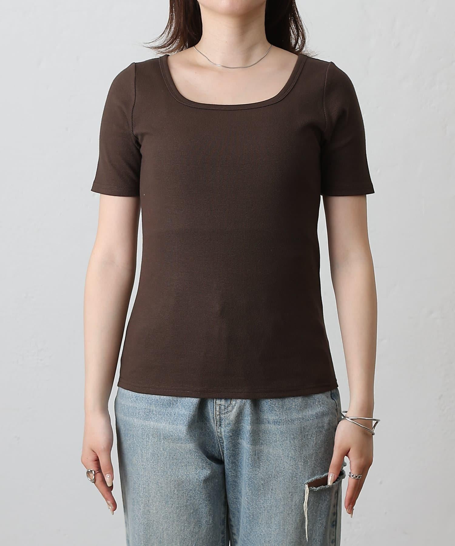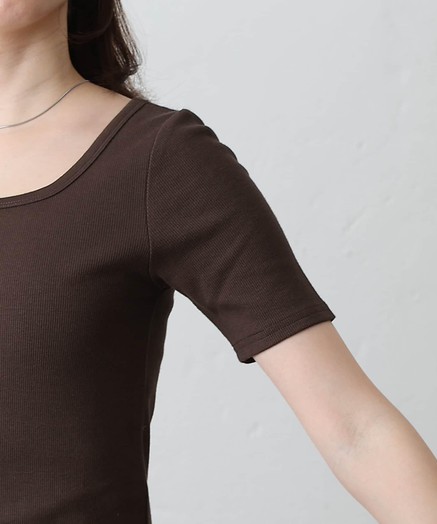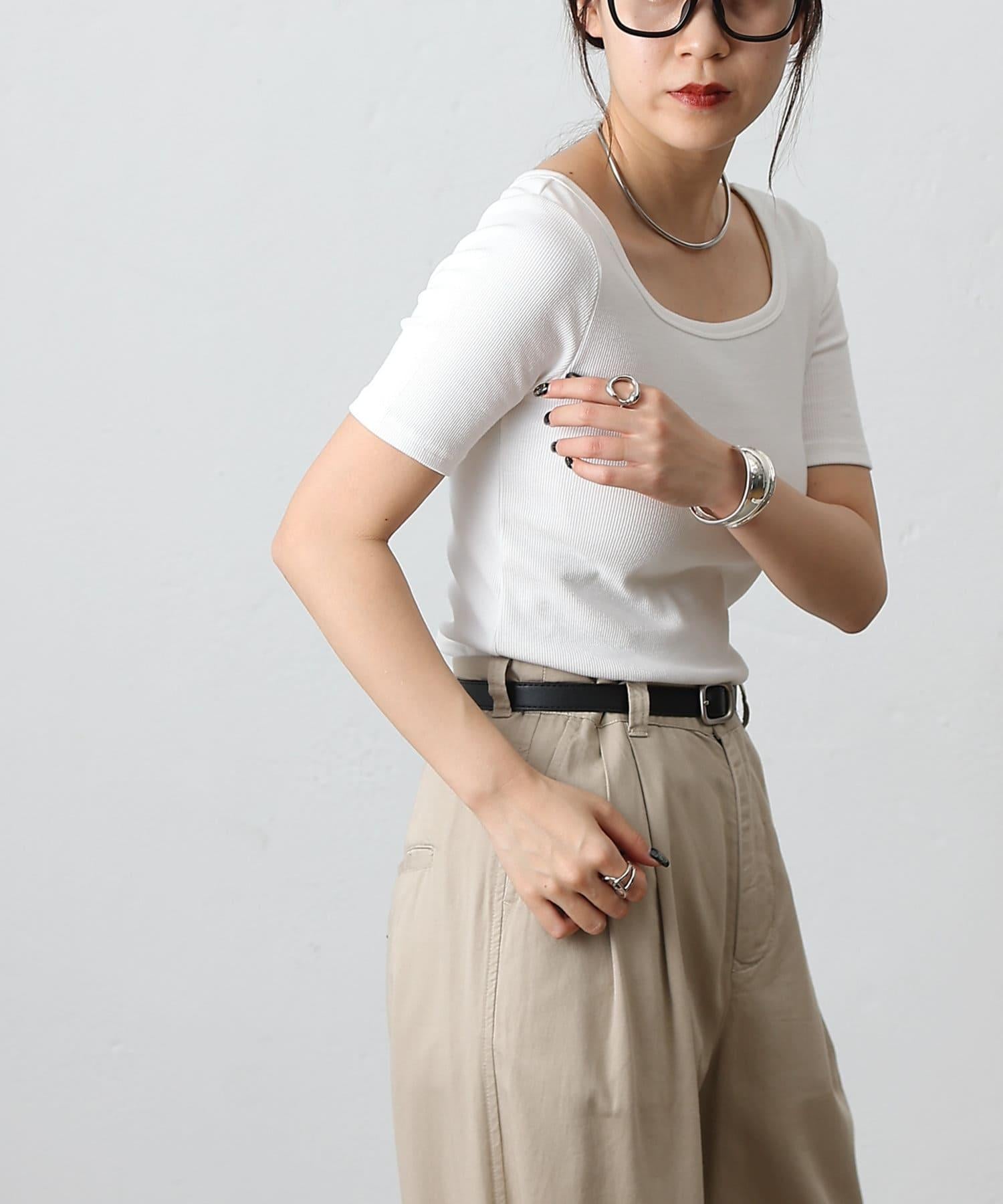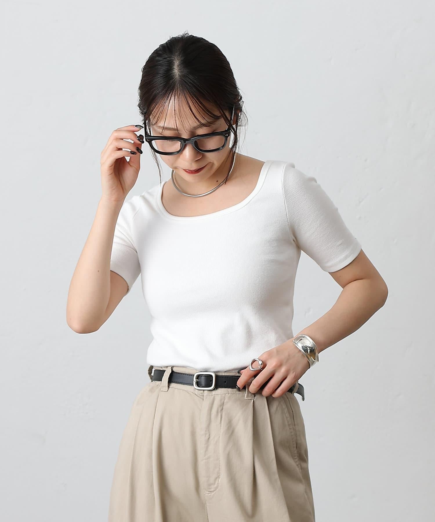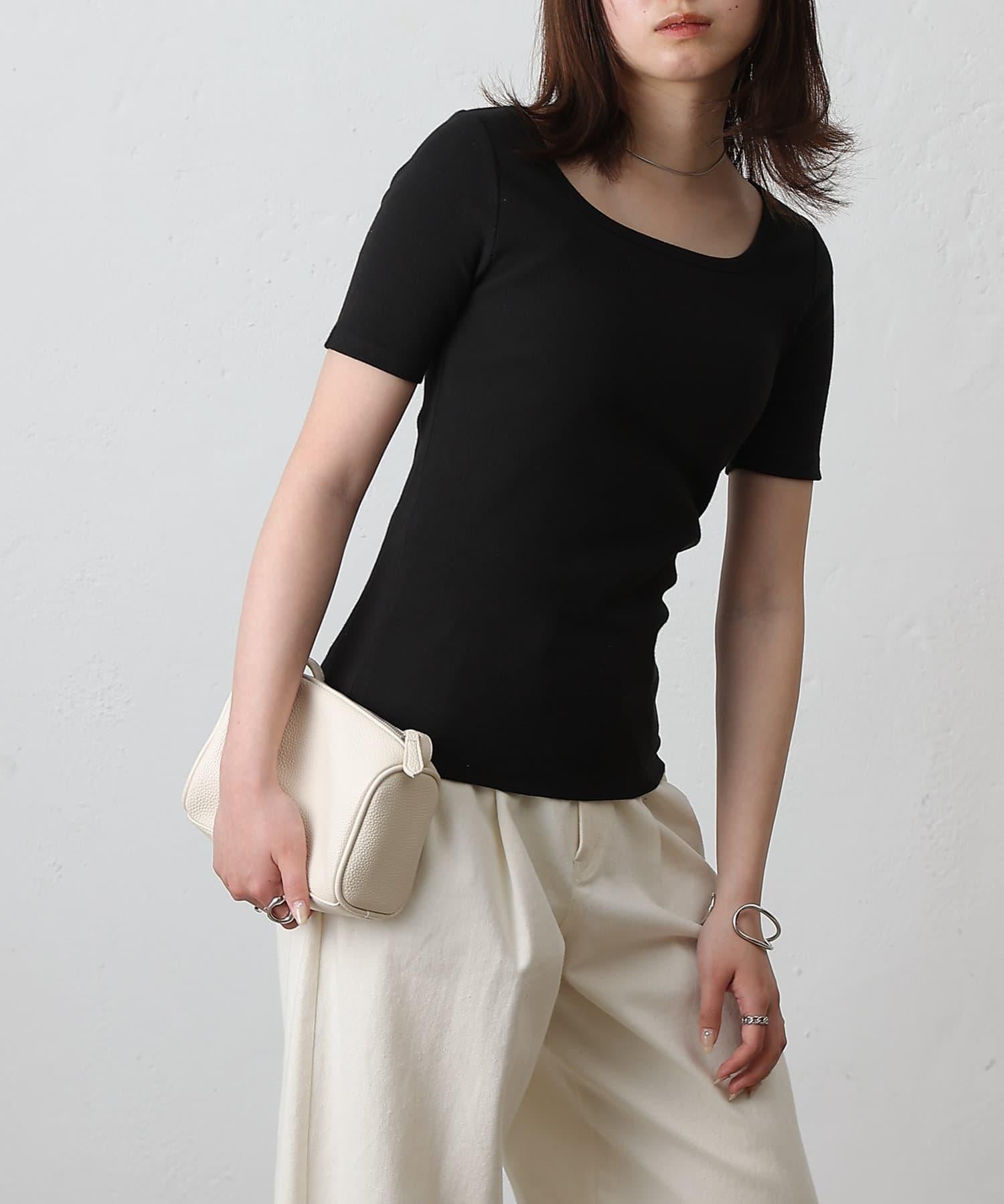 簡約羅紋短袖 T 恤,美觀的肩部設計。
