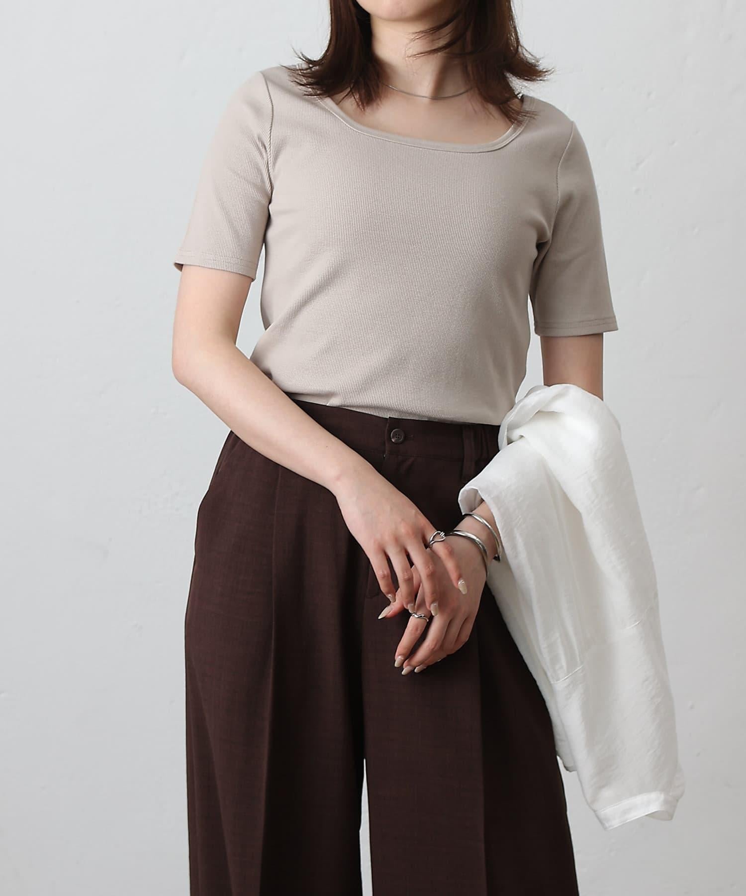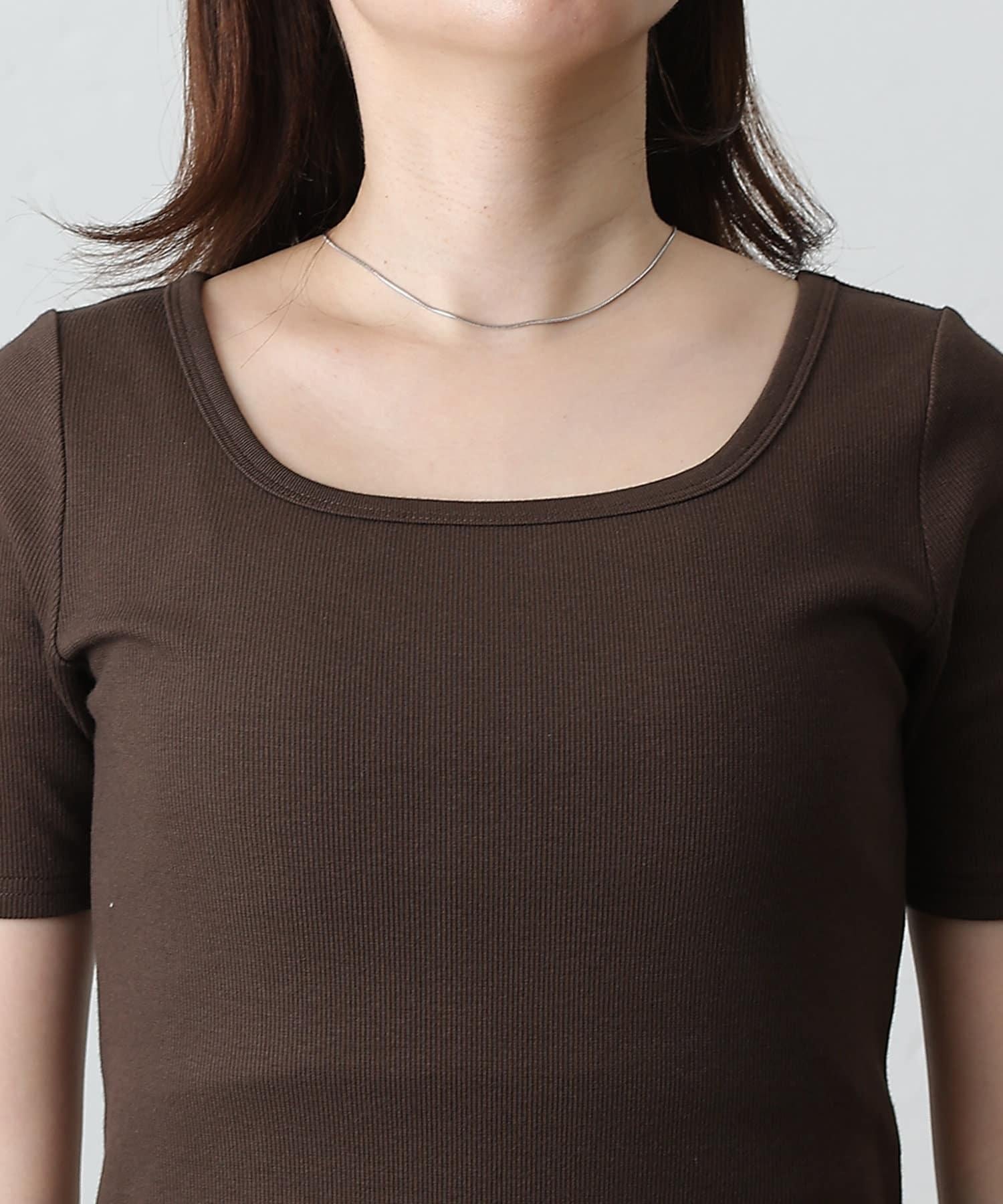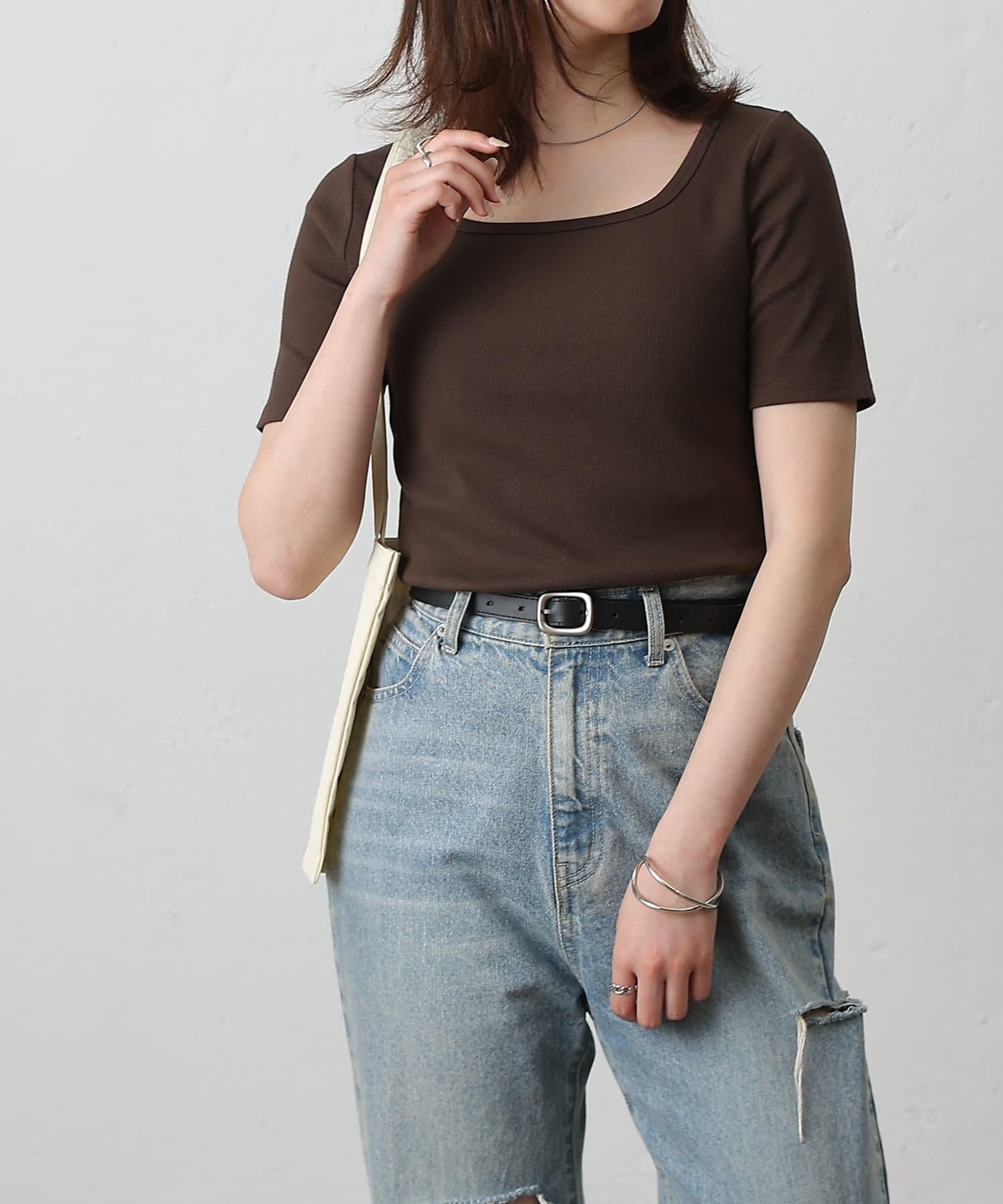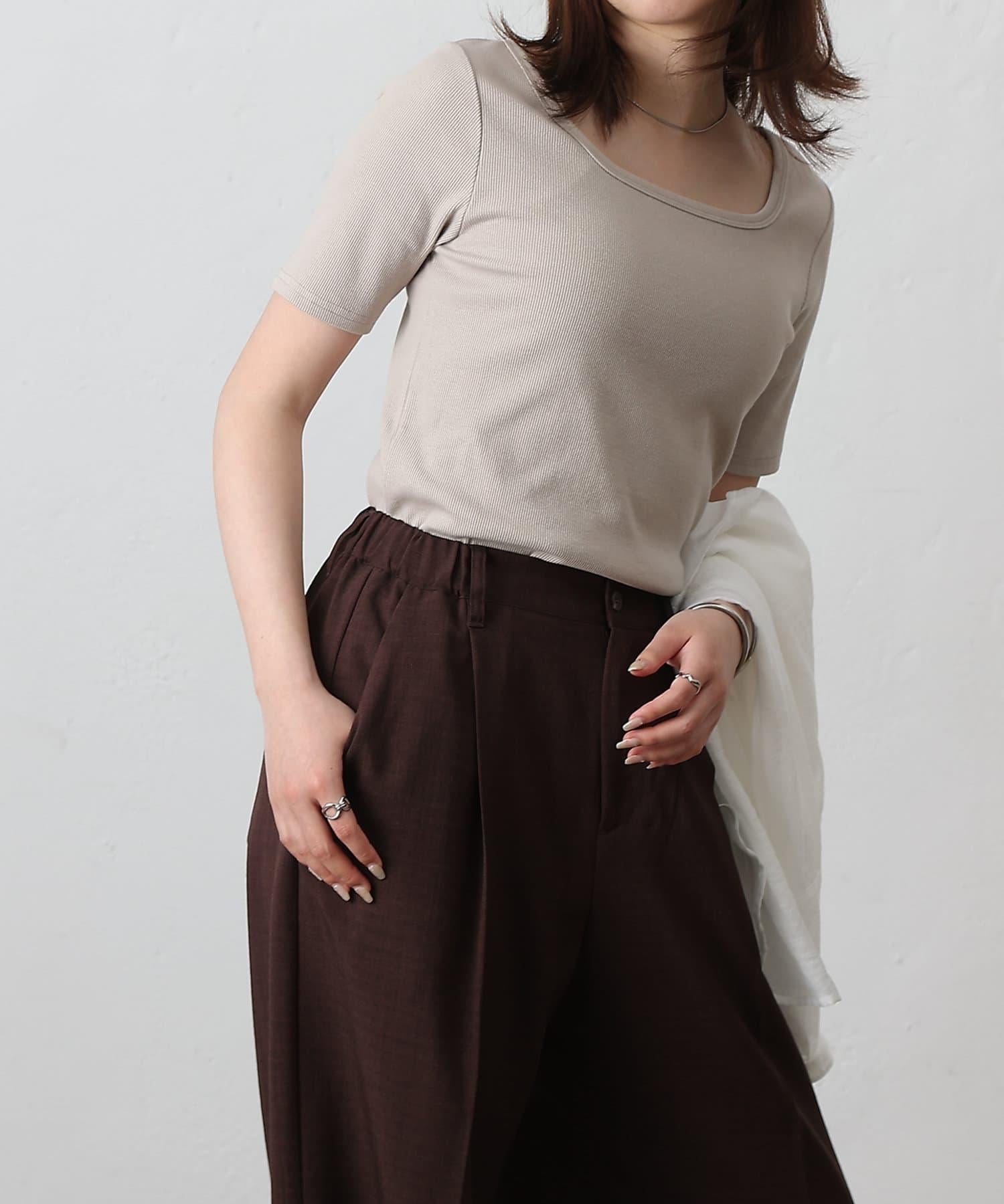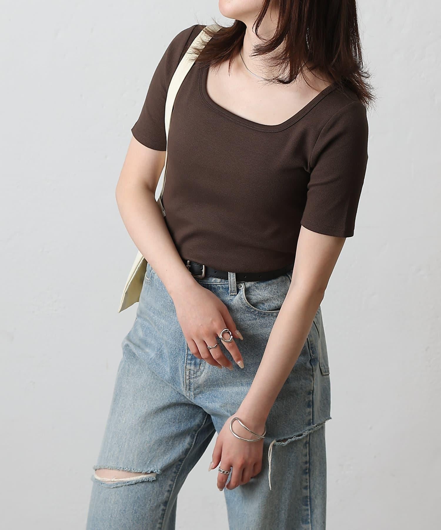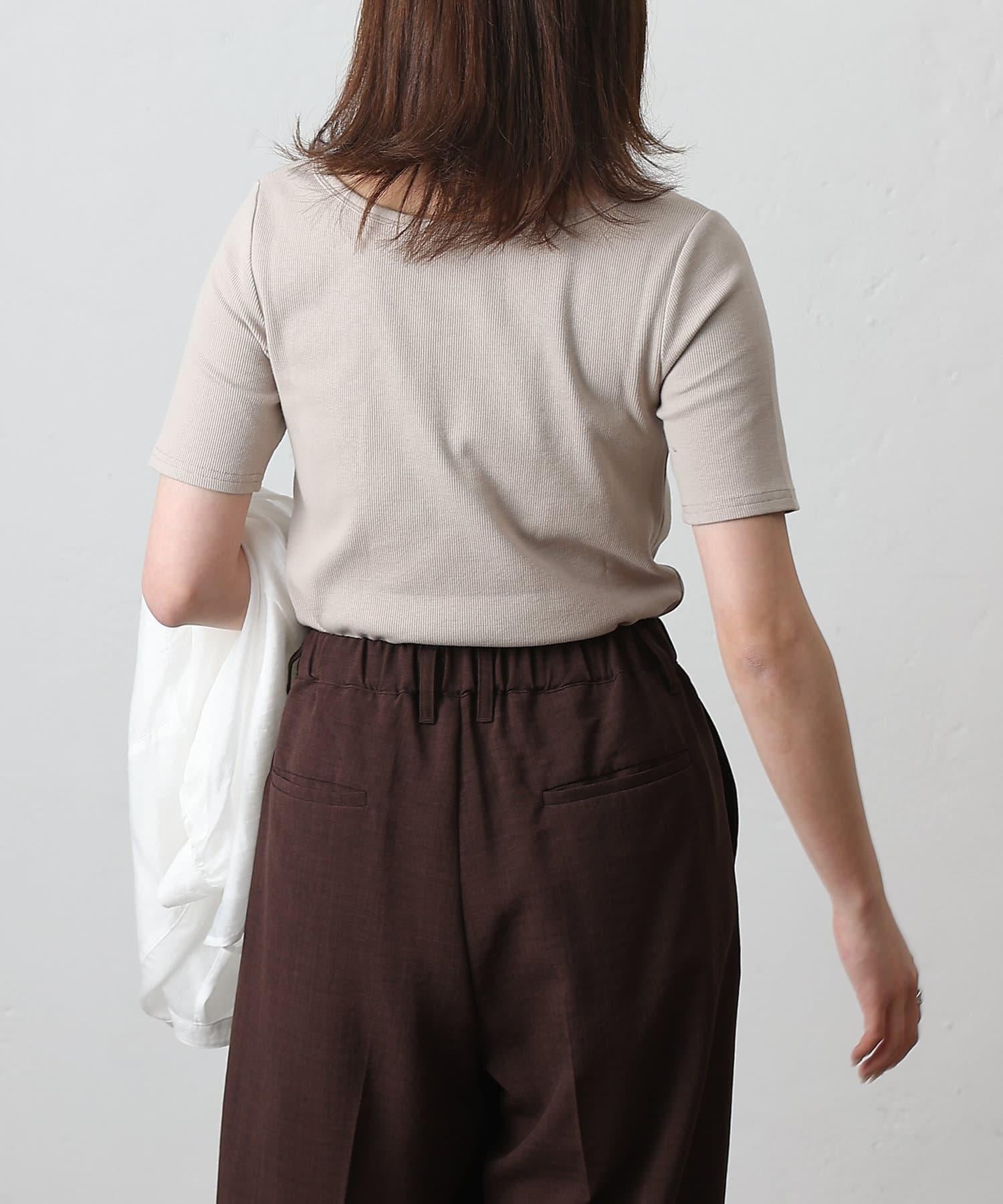 簡約羅紋短袖 T 恤,美觀的肩部設計。