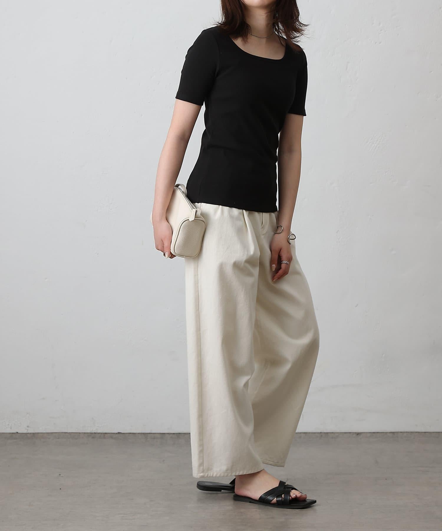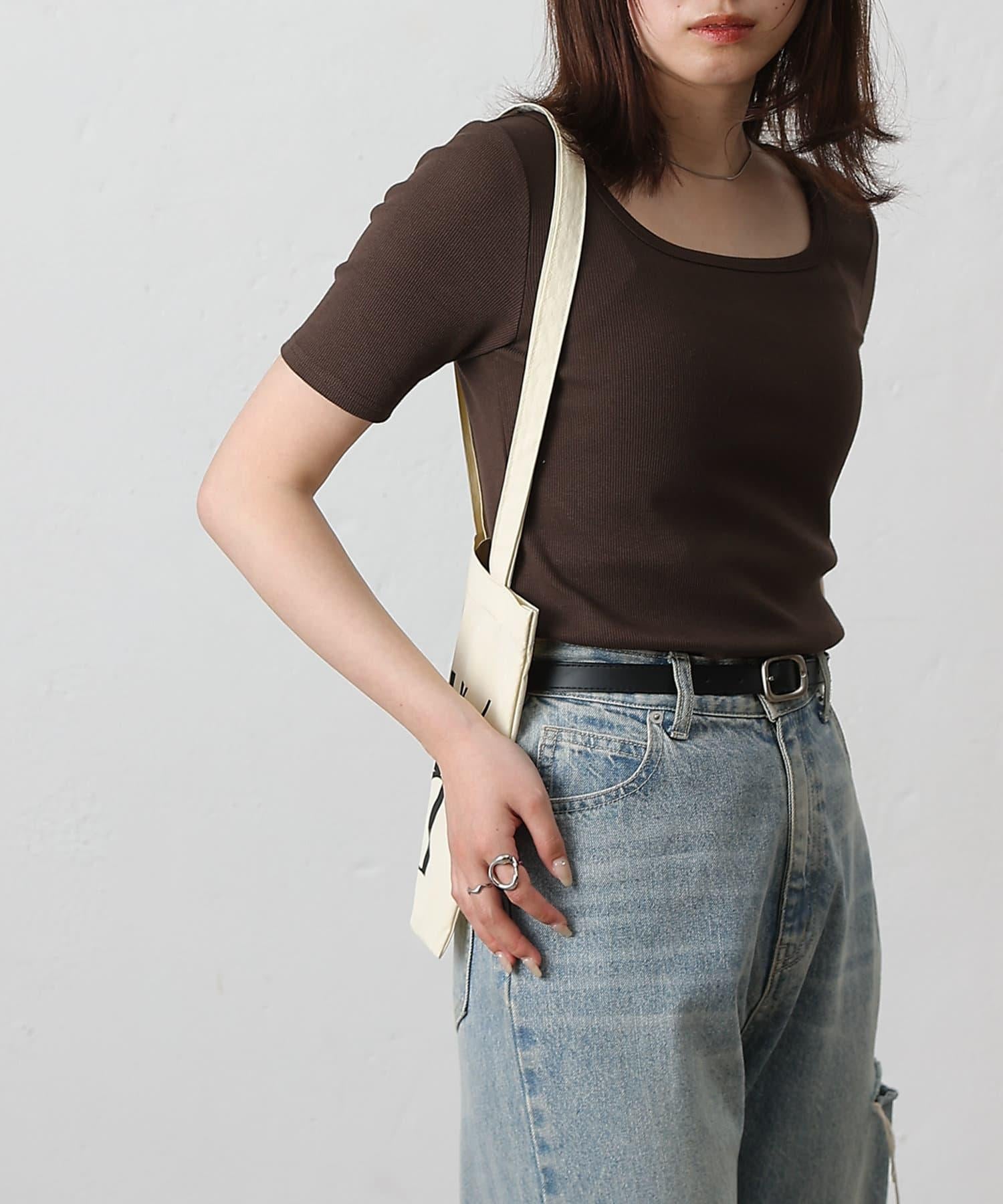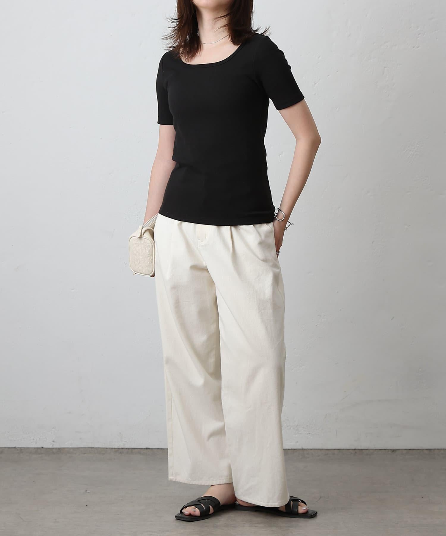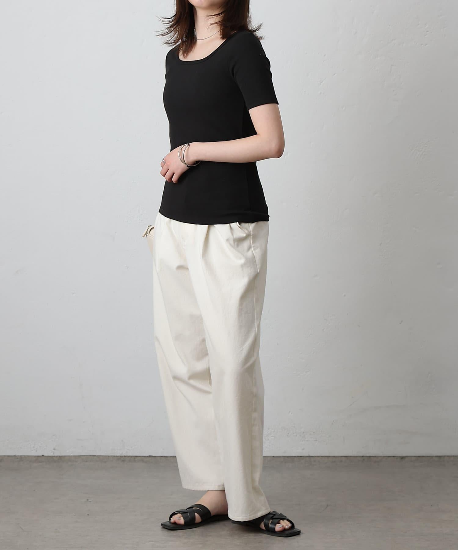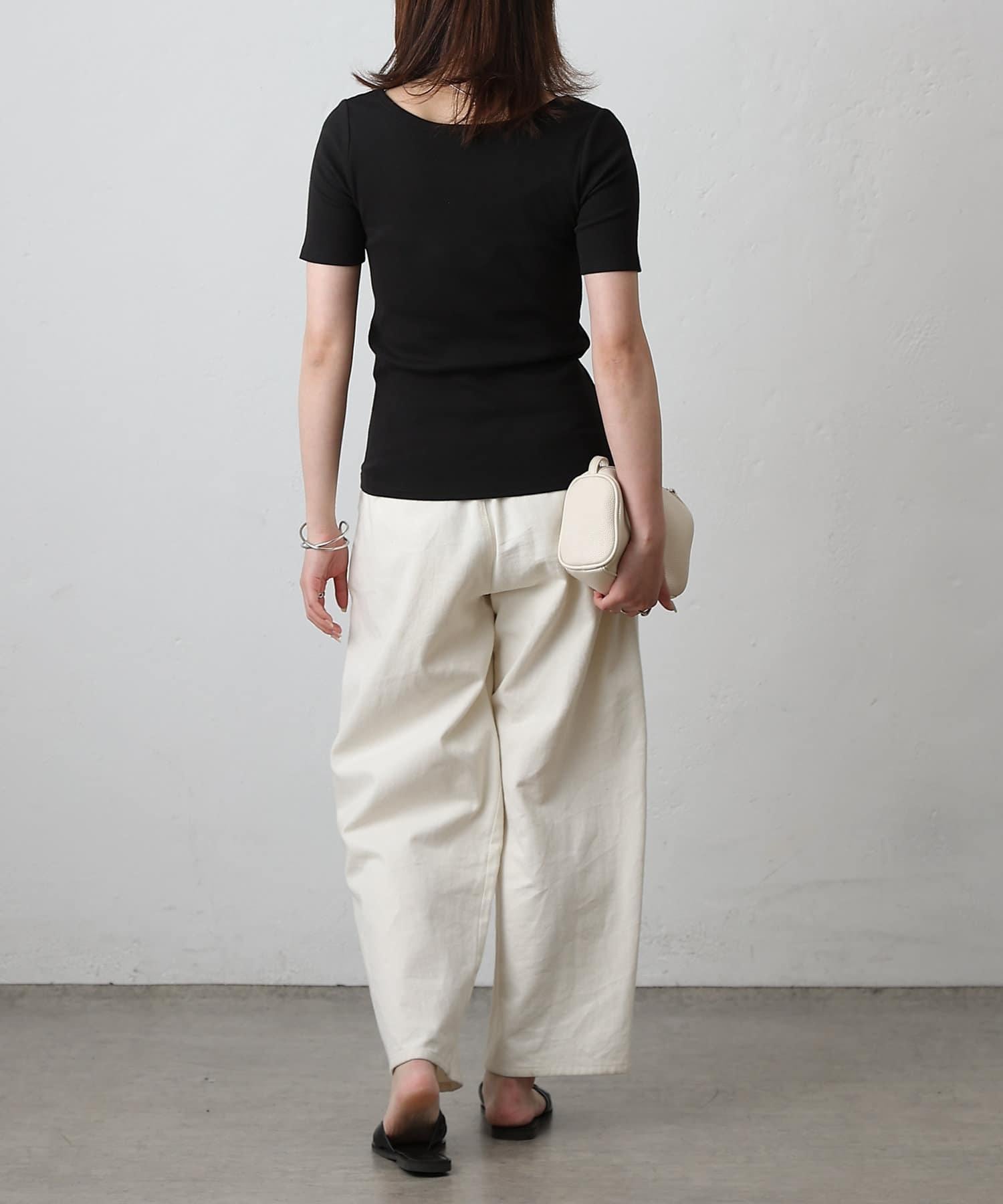 簡約羅紋短袖 T 恤,美觀的肩部設計。