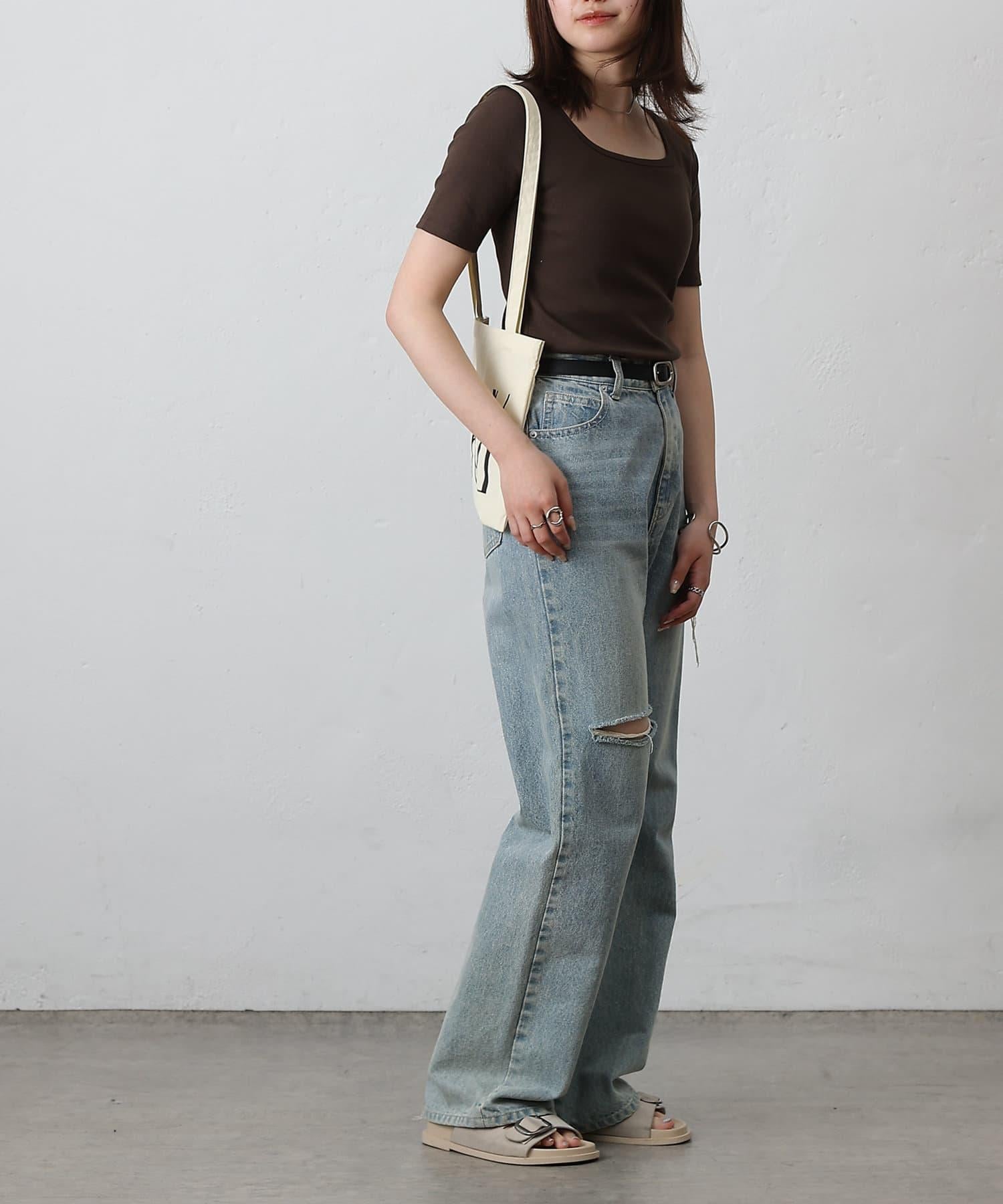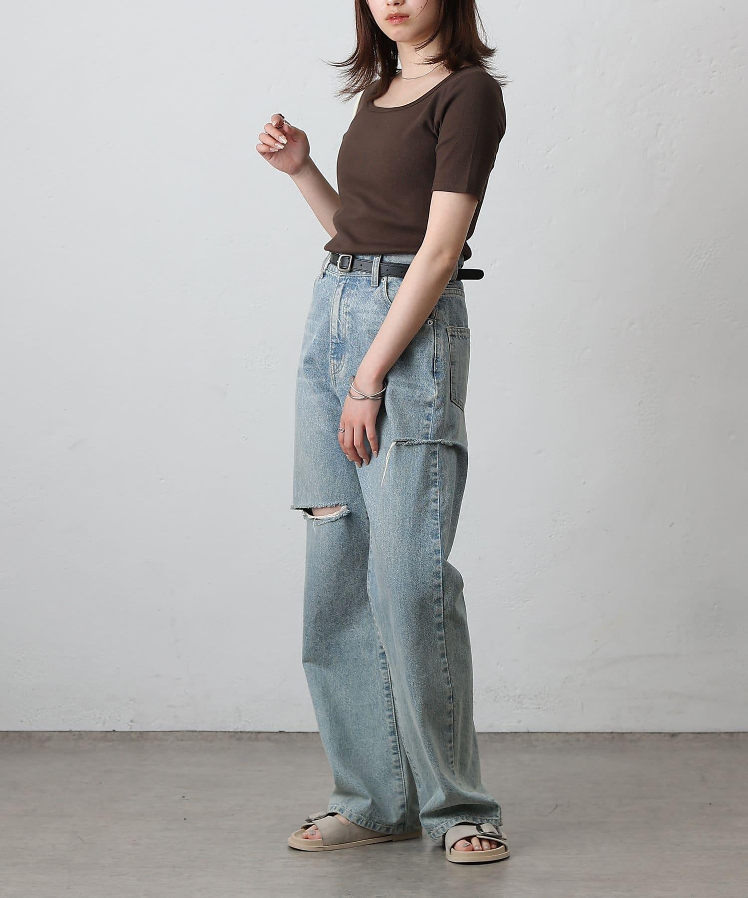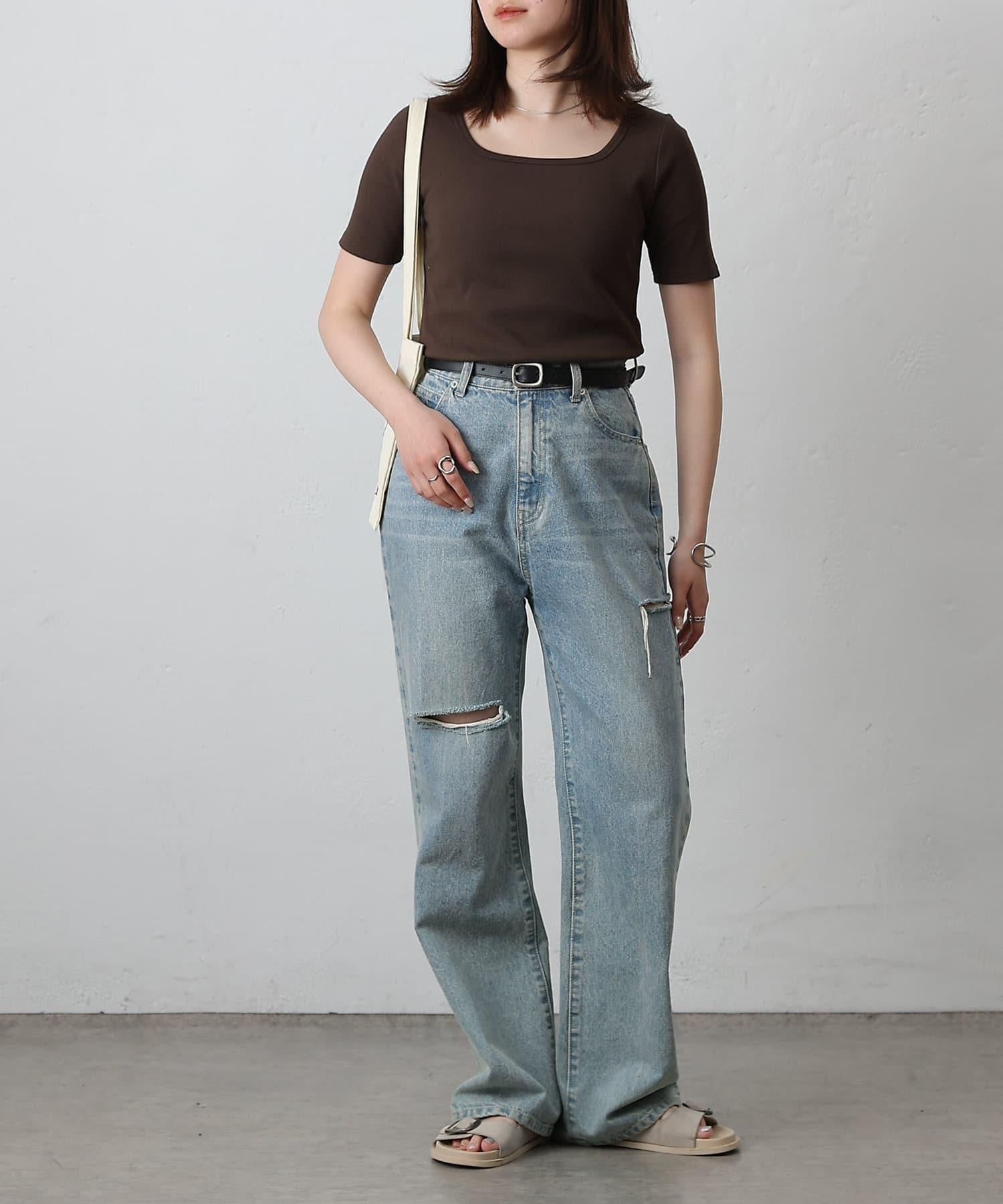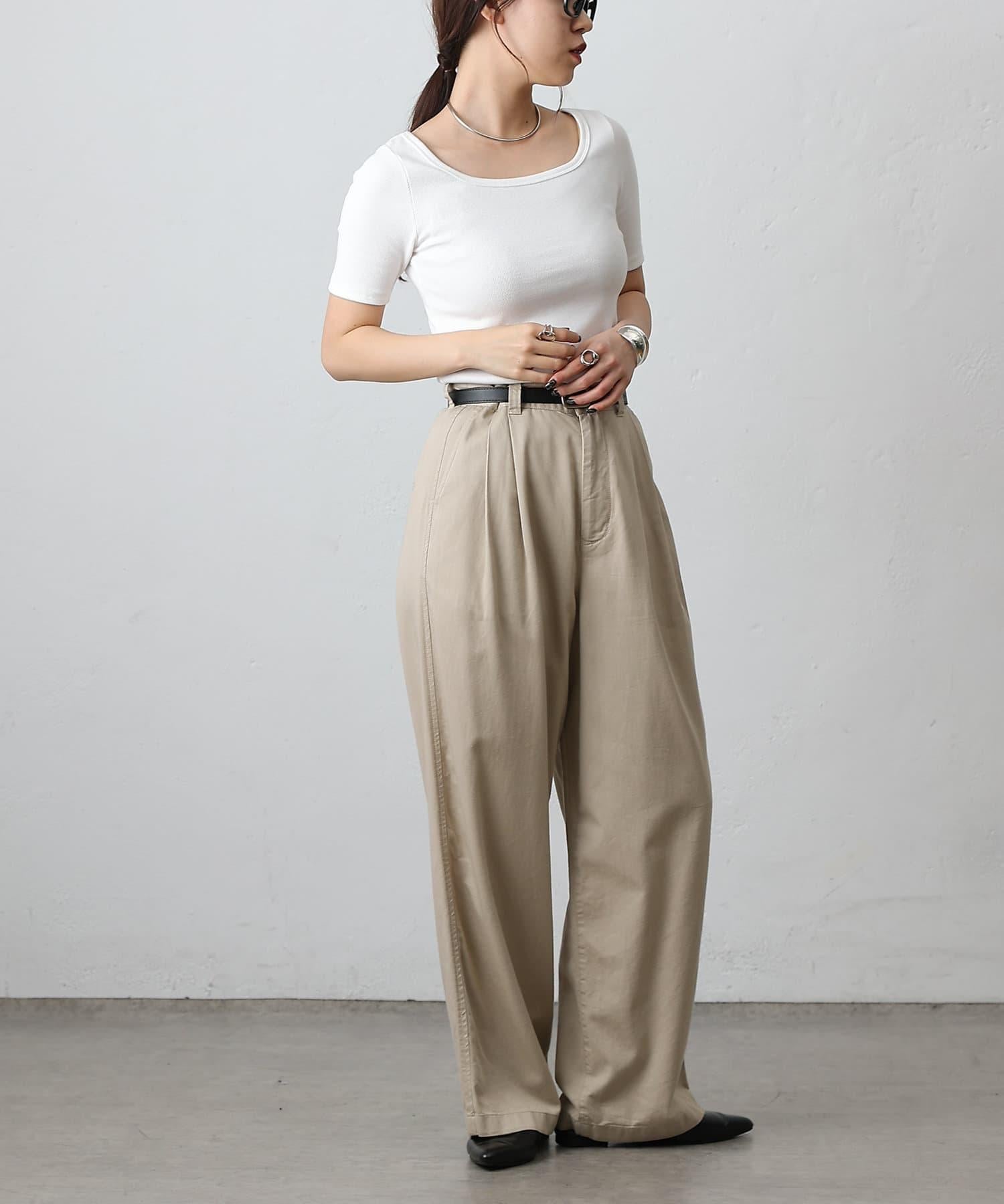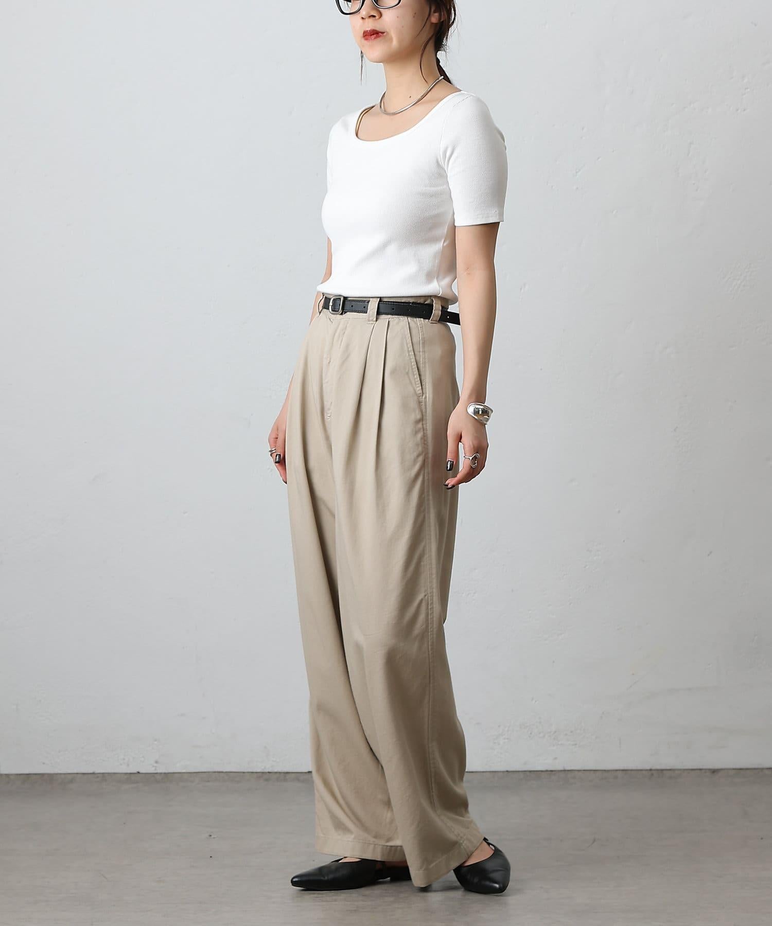 簡約羅紋短袖 T 恤,美觀的肩部設計。