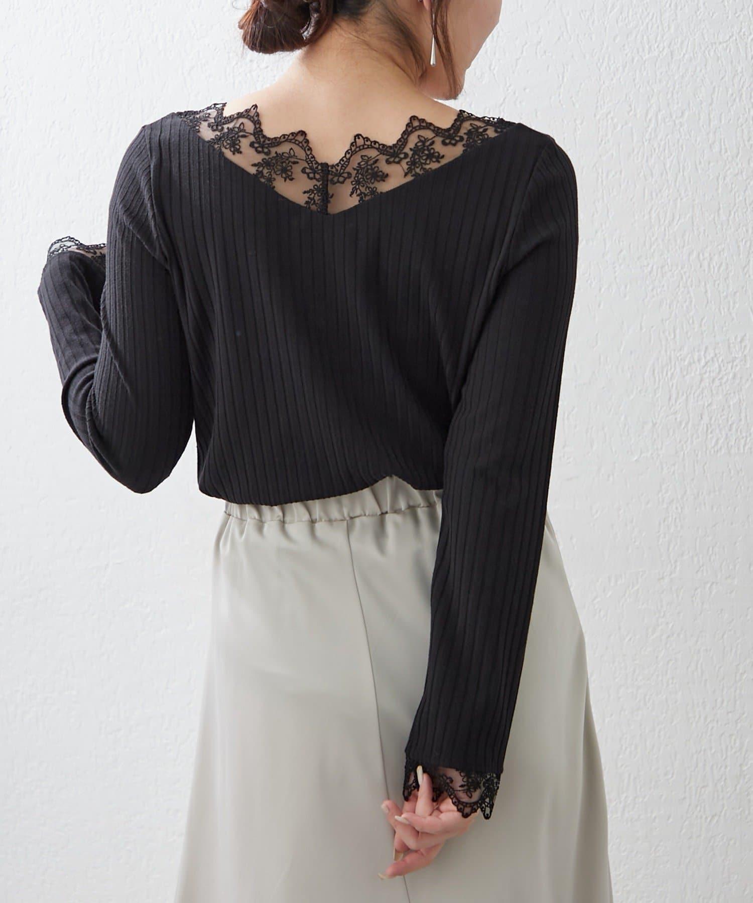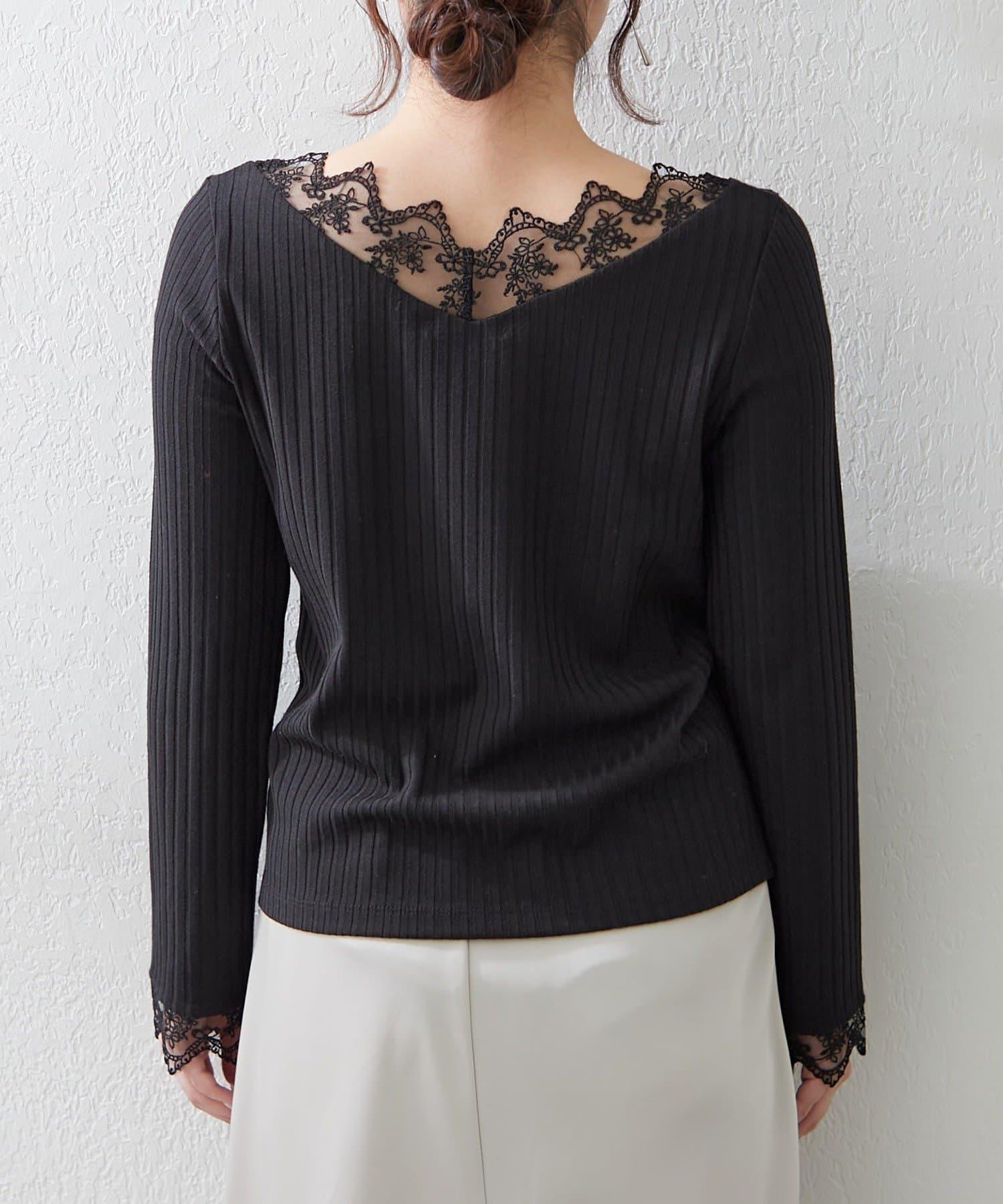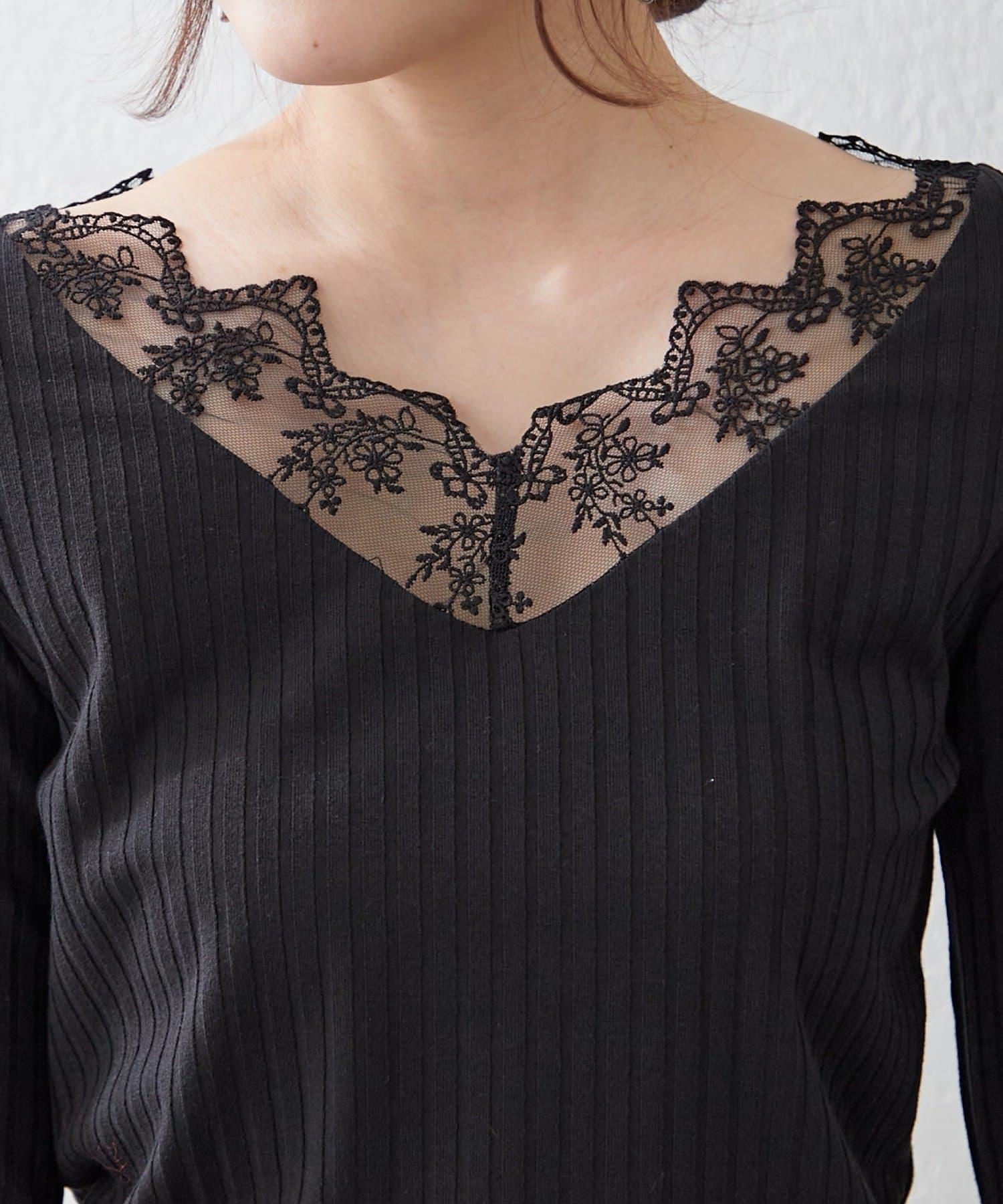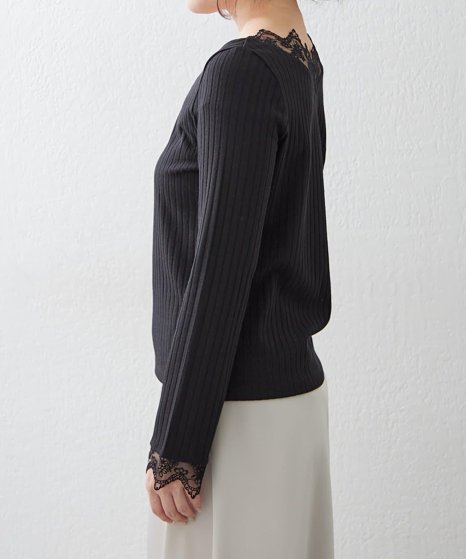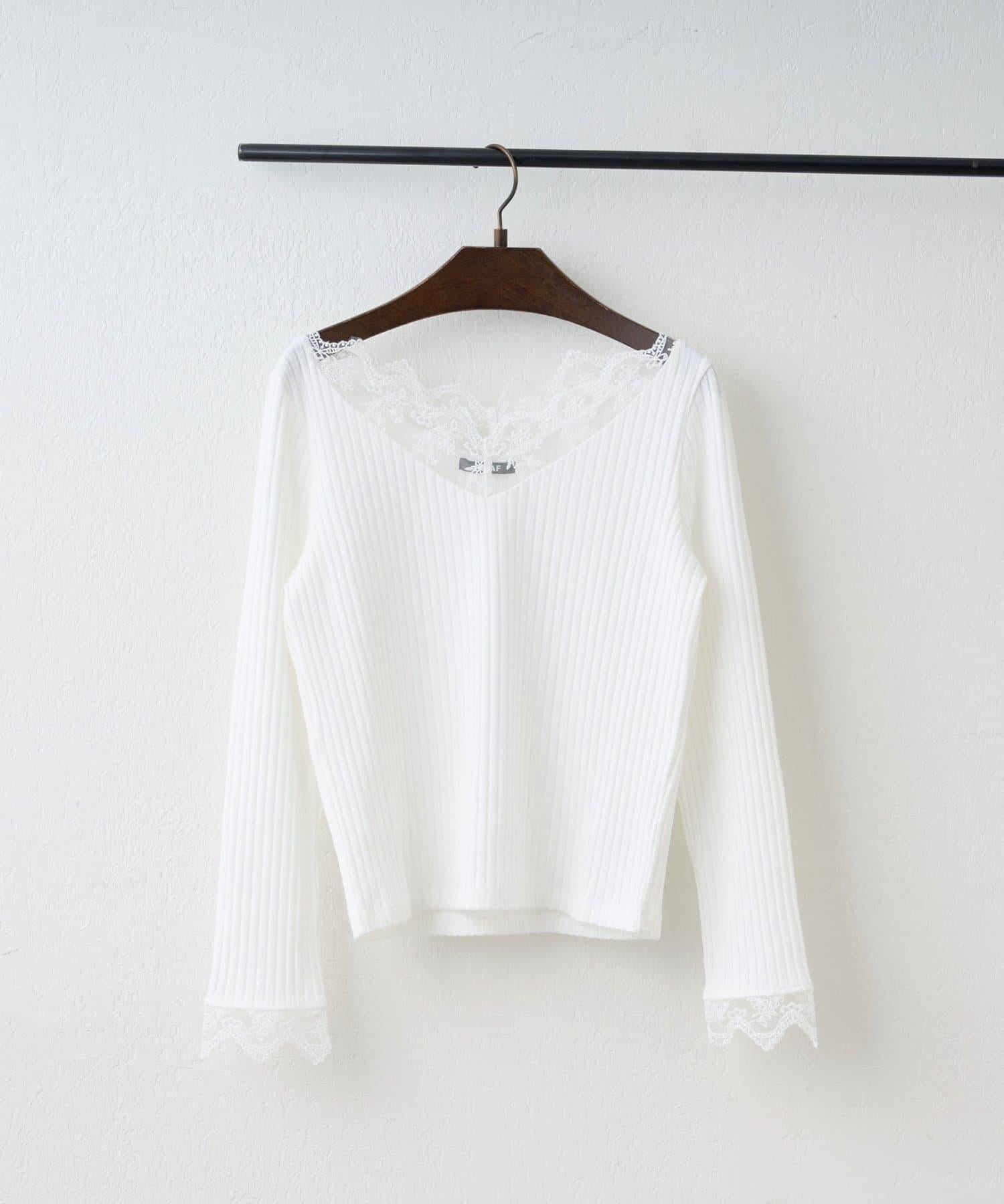 基礎款 羅紋 V字蕾絲 長袖套頭上衣