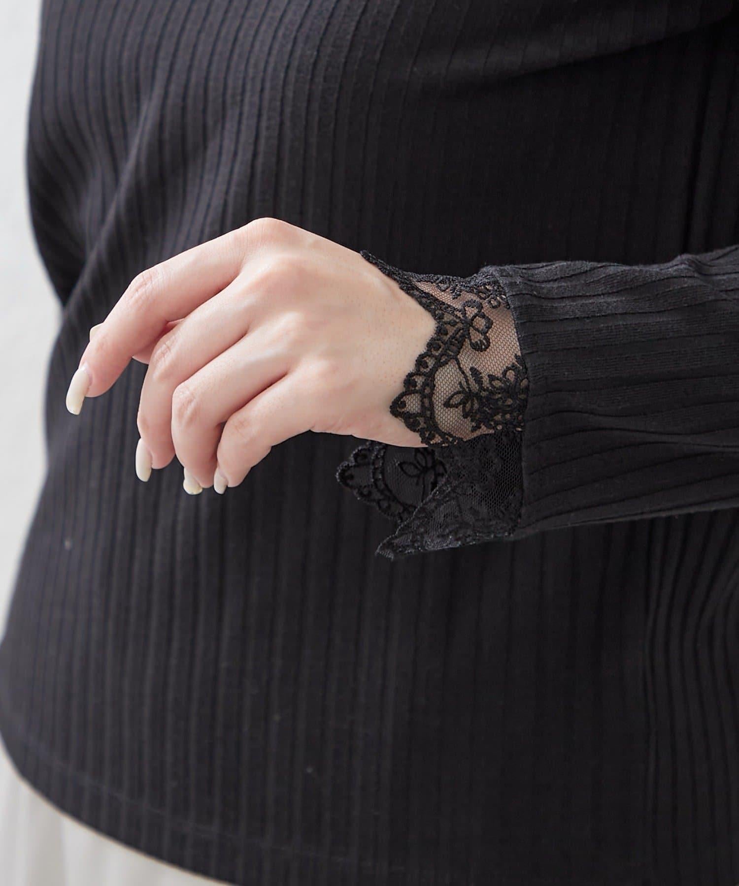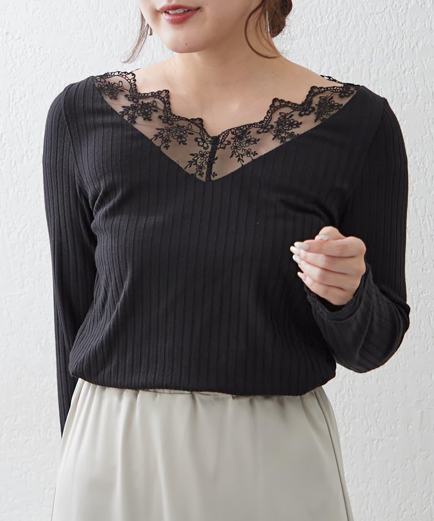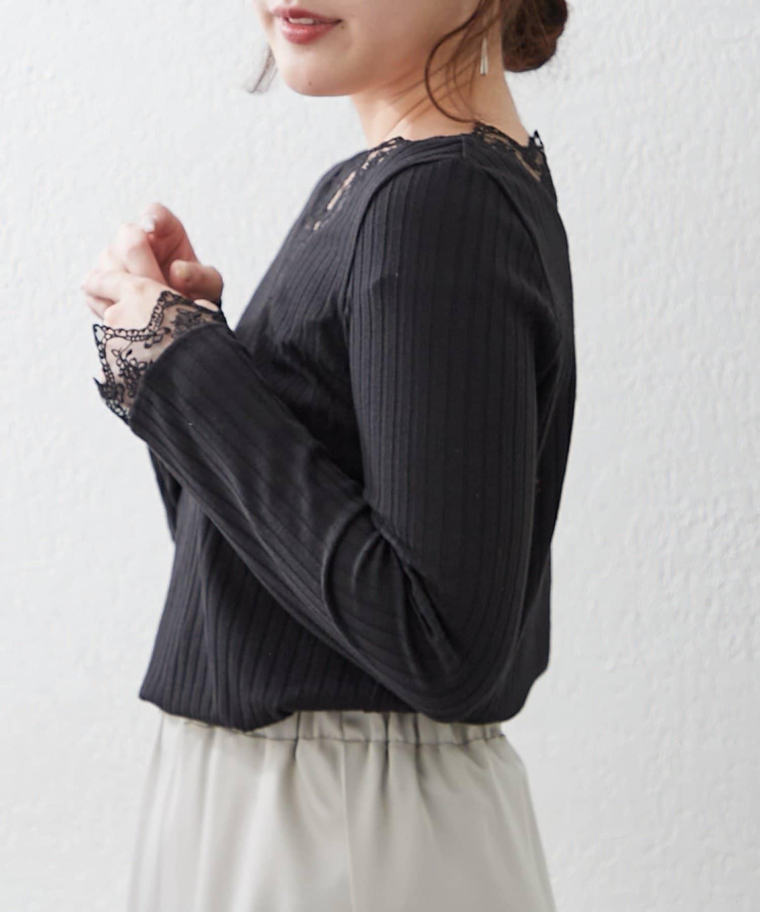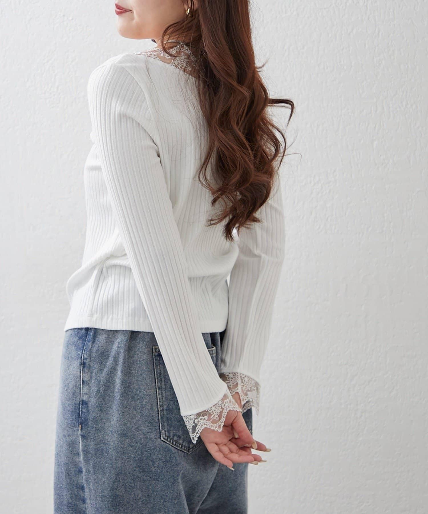 基礎款 羅紋 V字蕾絲 長袖套頭上衣