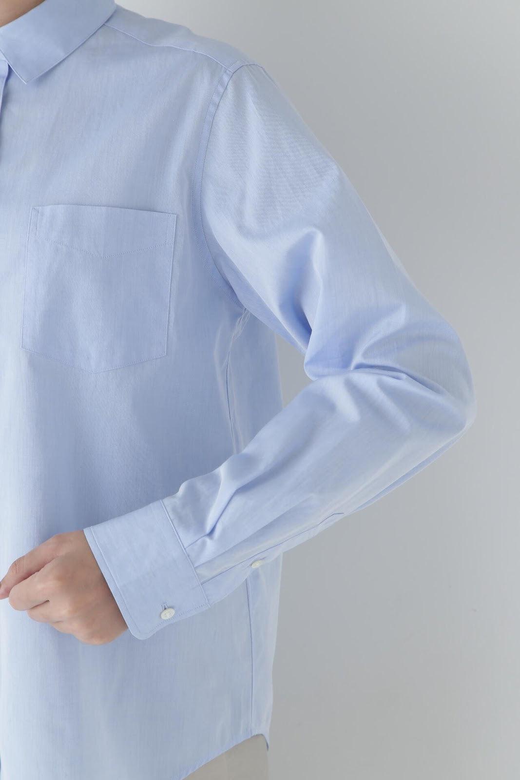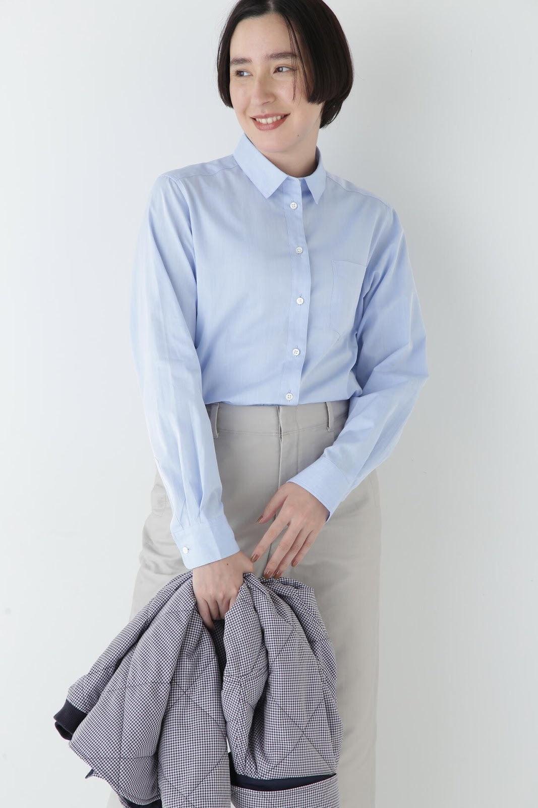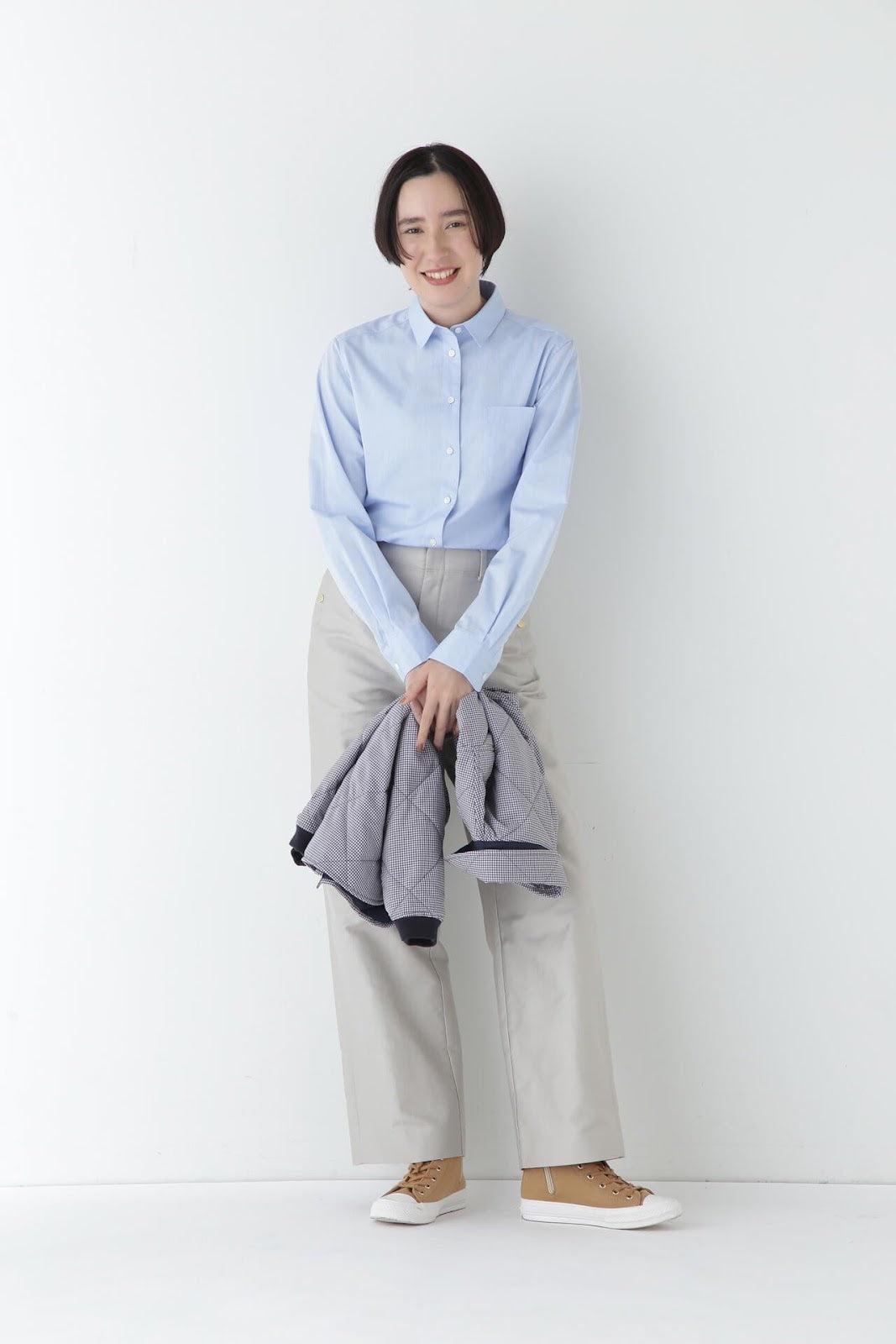 HUMAN WOMAN 的長季節基本款襯衫已經更新!經典的基本款襯衫已經更新。領子的尺寸更適合搭配外衣。領子的設計使其與外衣搭配更舒適,肩部空間也有所增加。襯衫採用優雅的襯衫面料,手感舒適。白色面料經過後處理,減少了洗滌後的褶皺。藍色是一種 Chambray 面料,因此是一種能與皮膚很好融合的顏色。這款襯衫即使單穿也顯得整潔休閒,適合整個季節穿著。