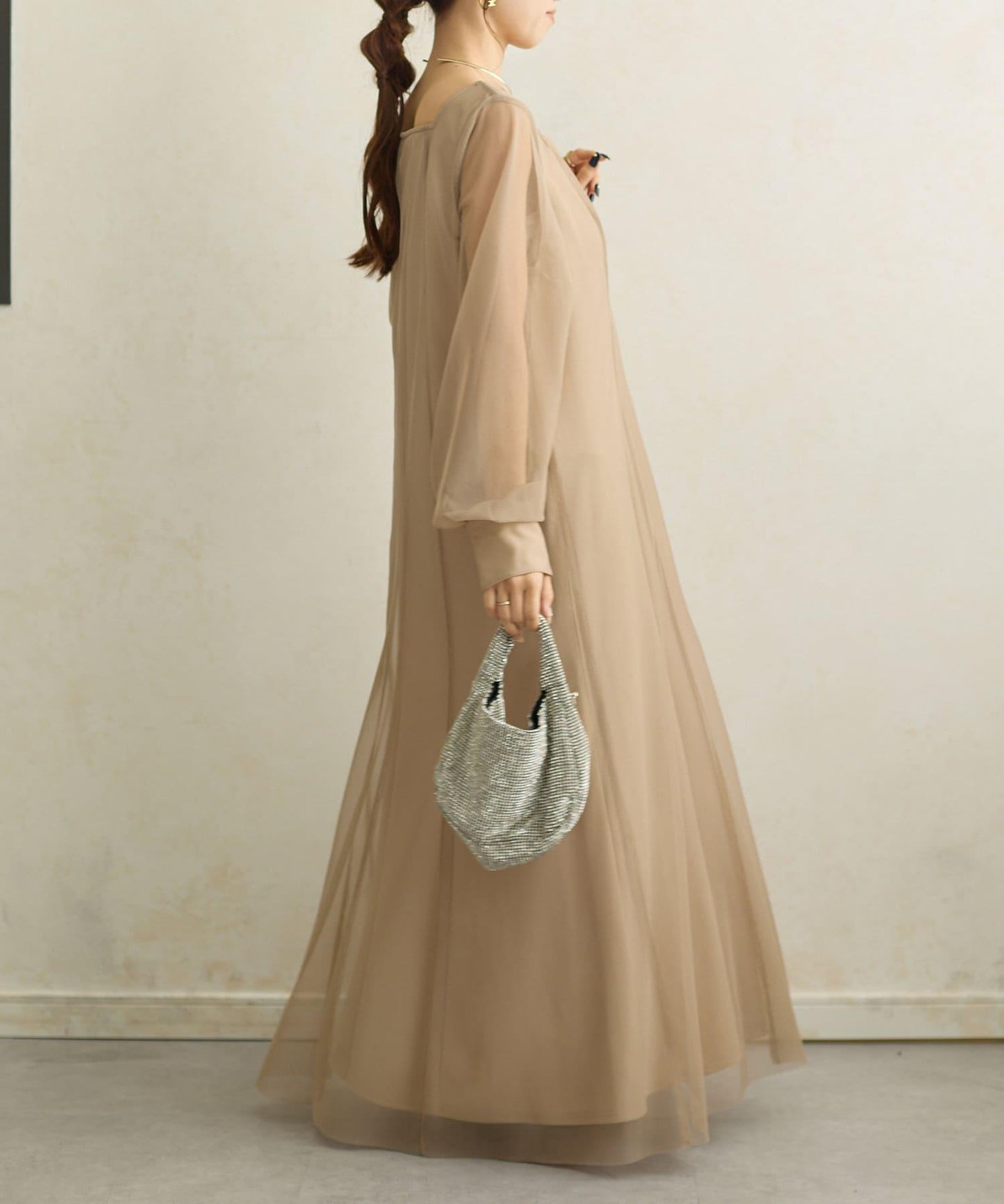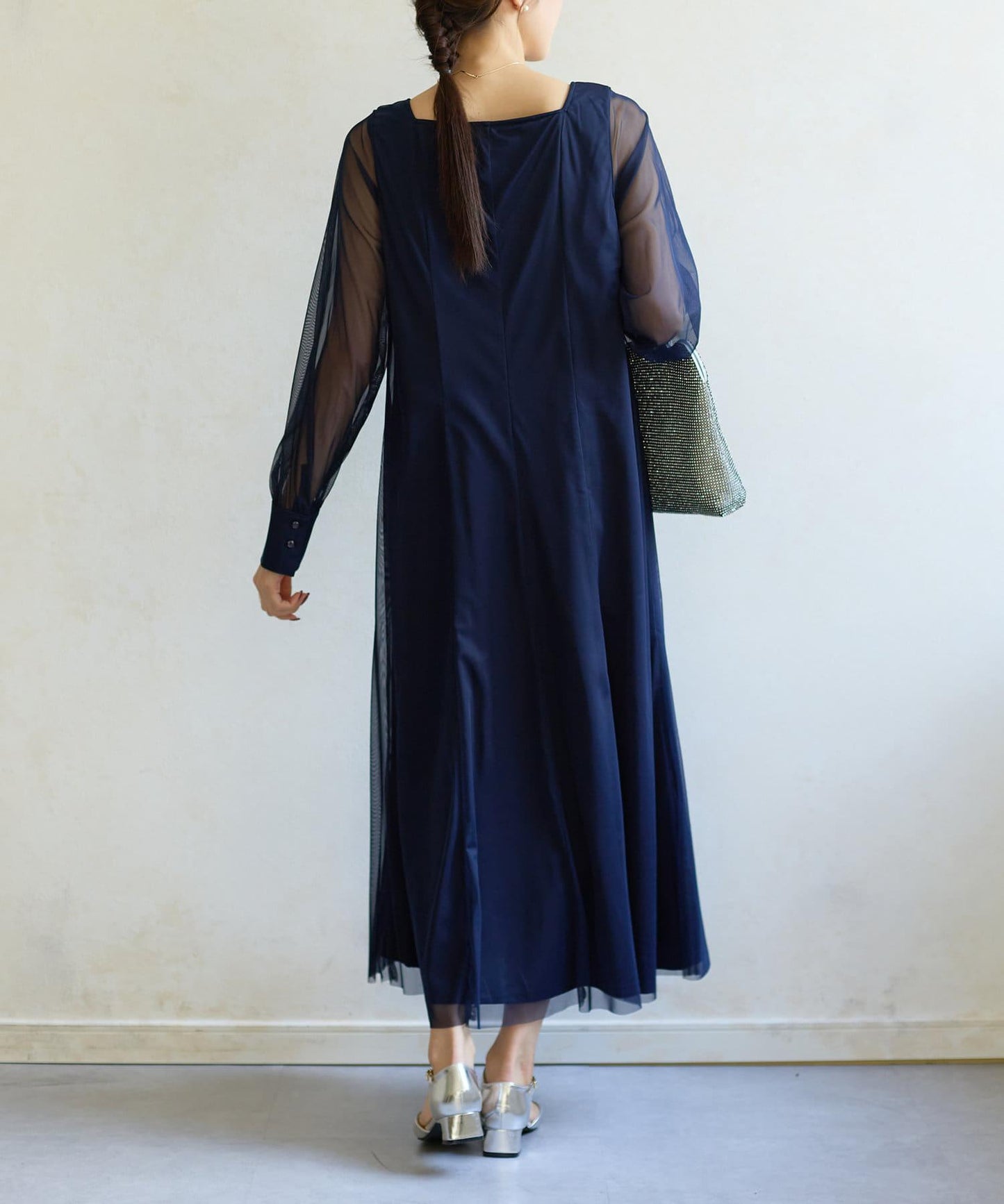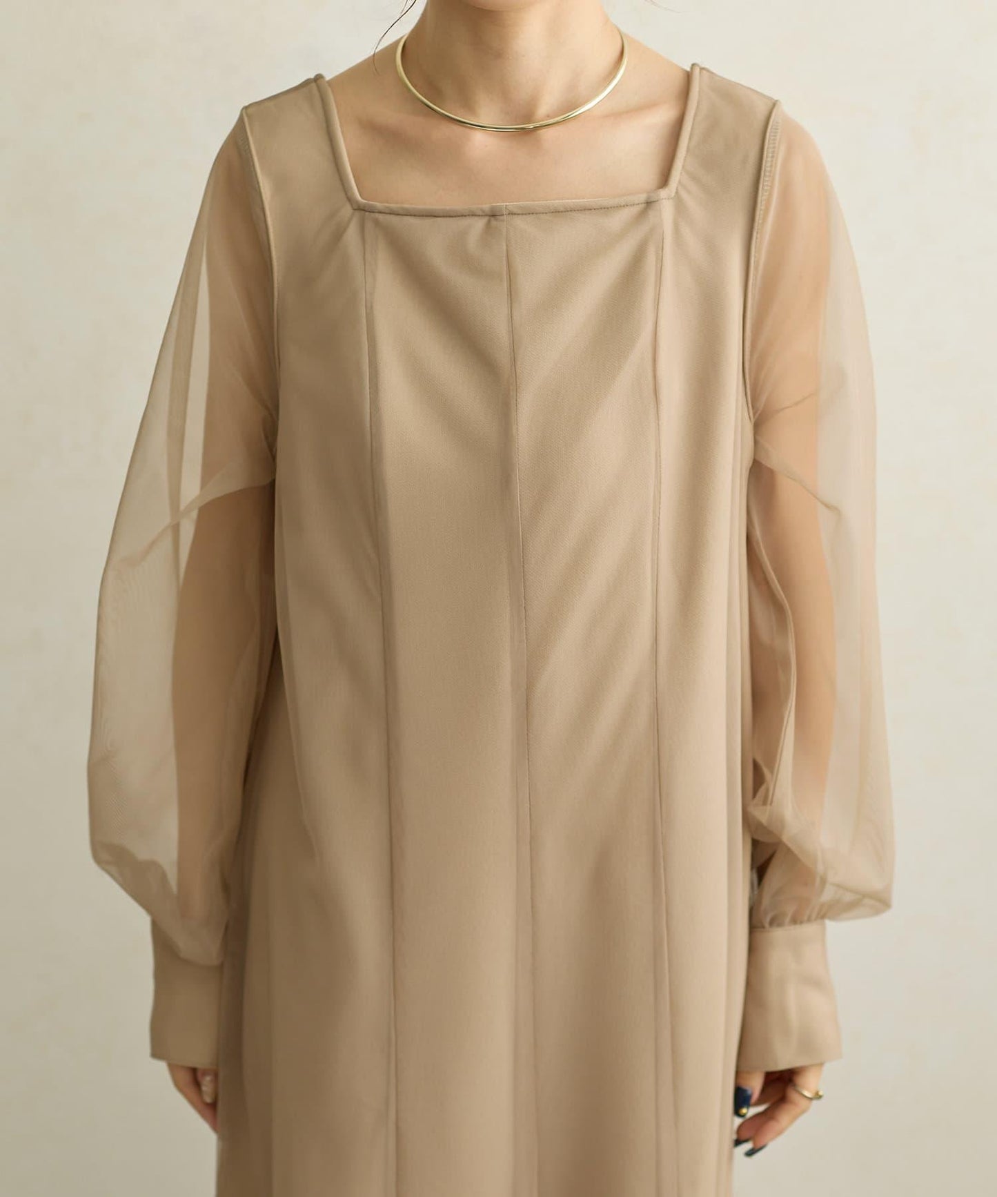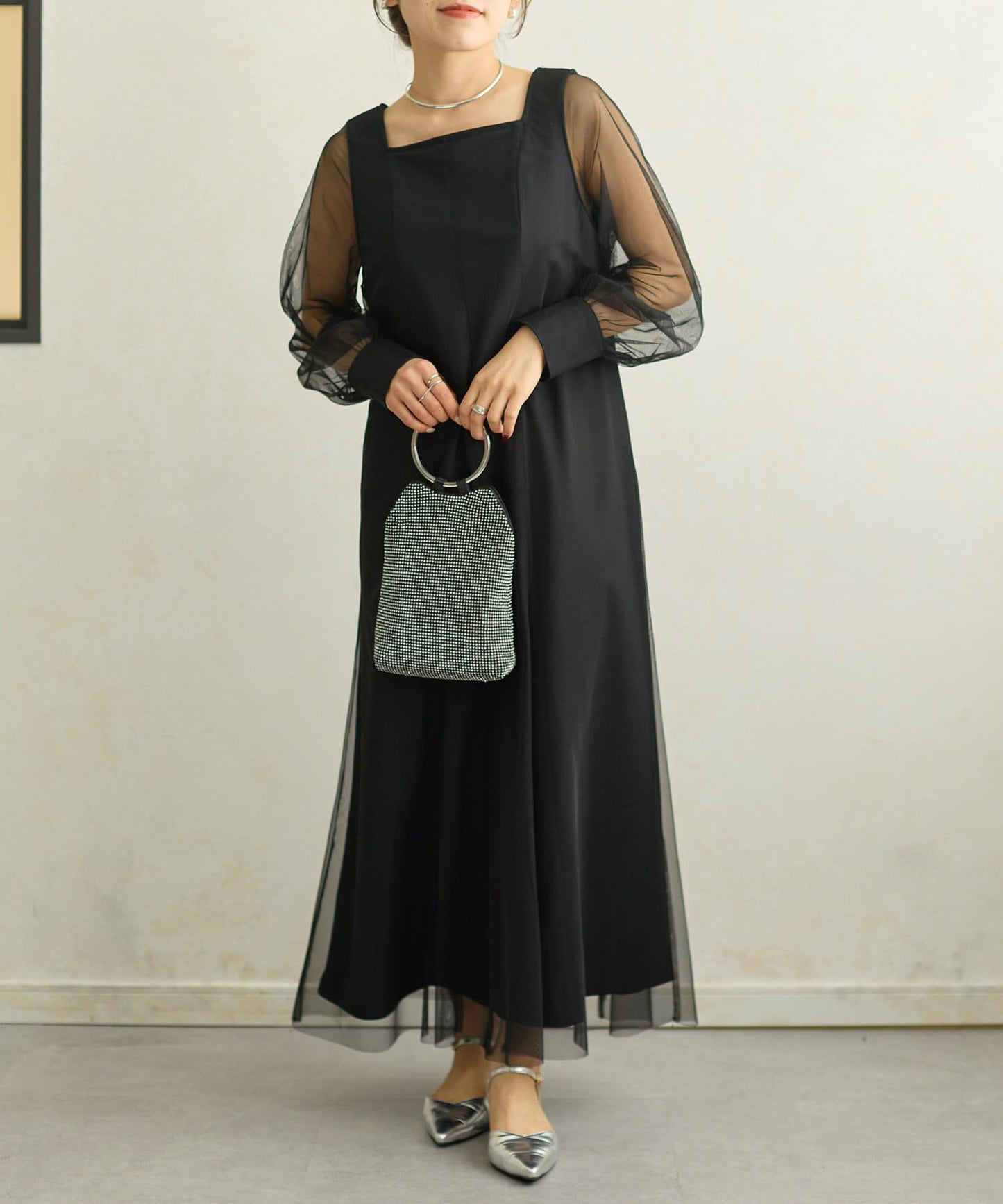這款連衣裙的肩頸部線條優美,項鍊與之相得益彰。