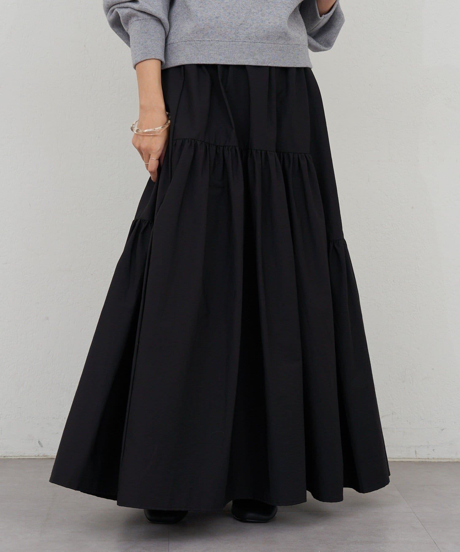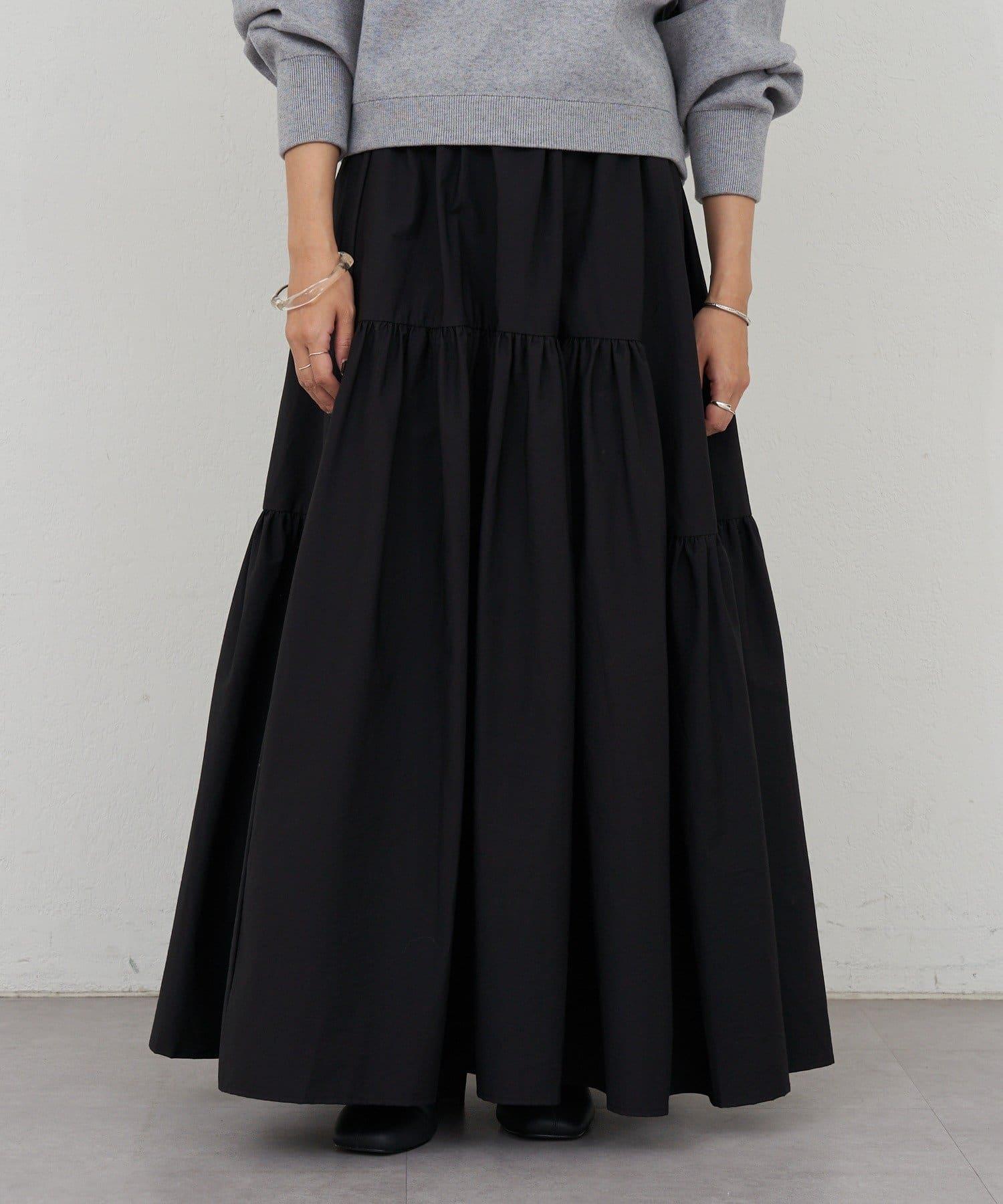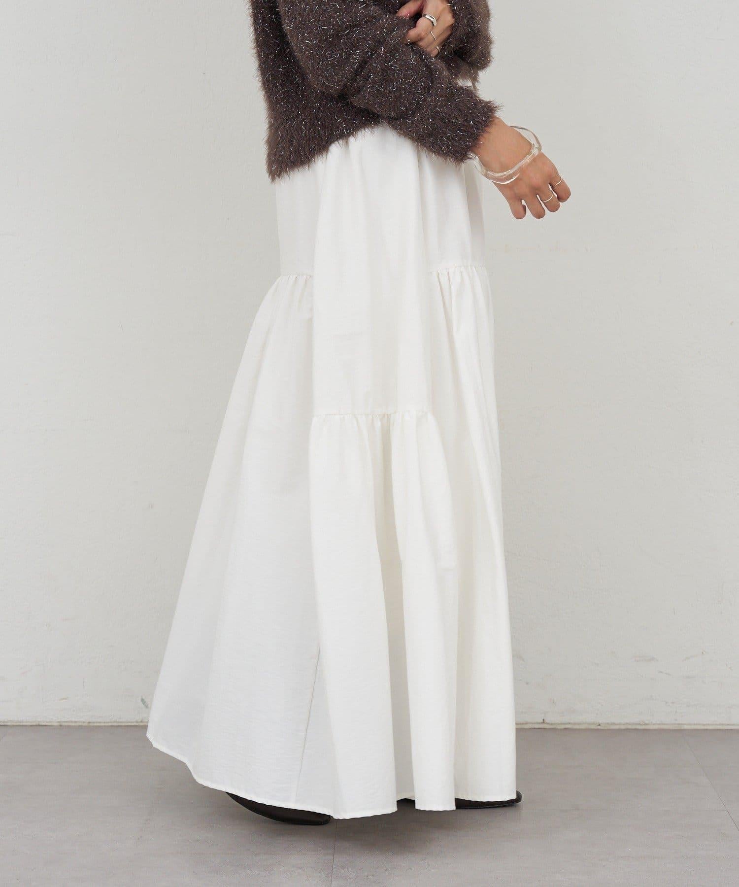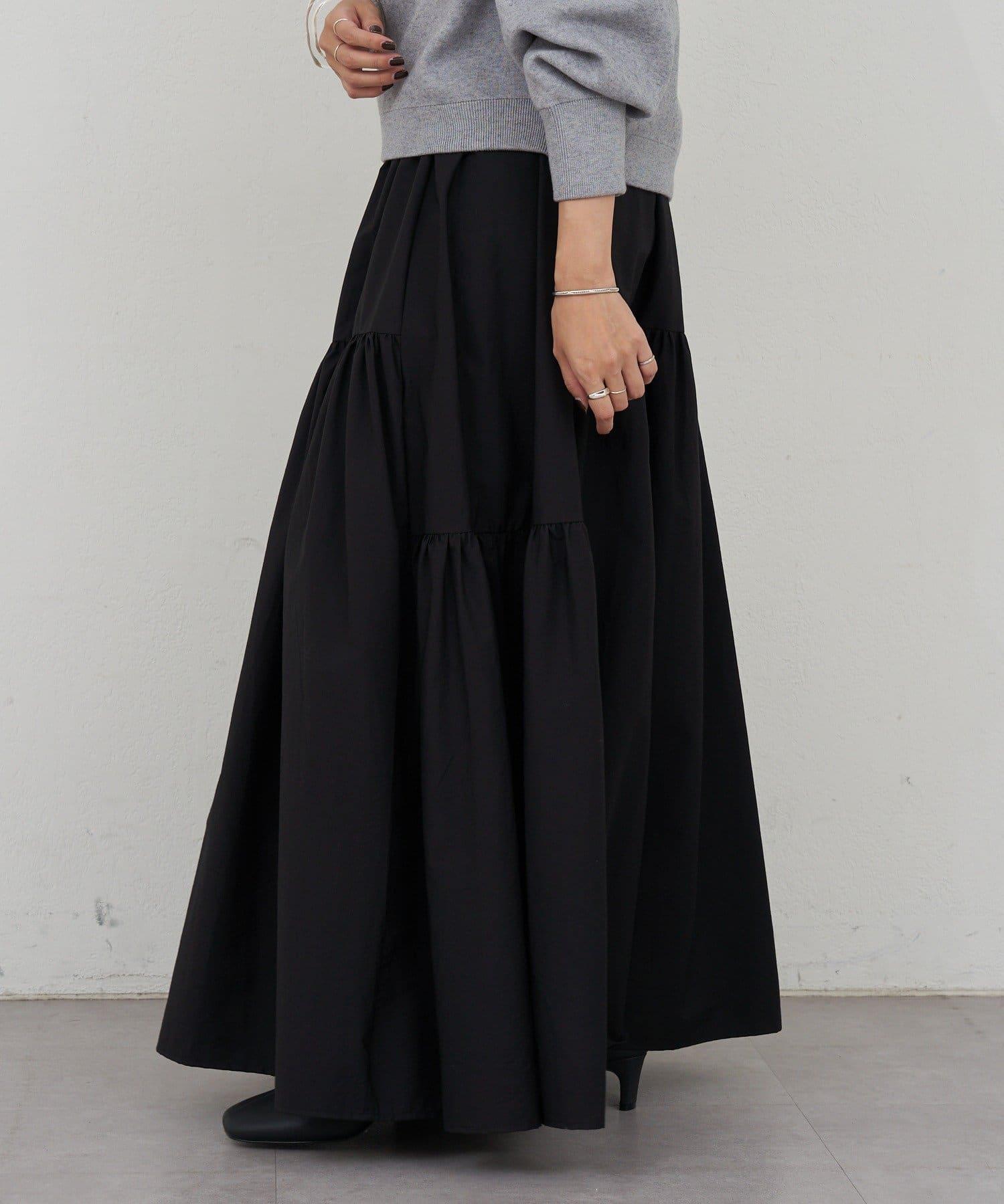 這款長裙採用塔夫綢面料製成,質感硬挺。