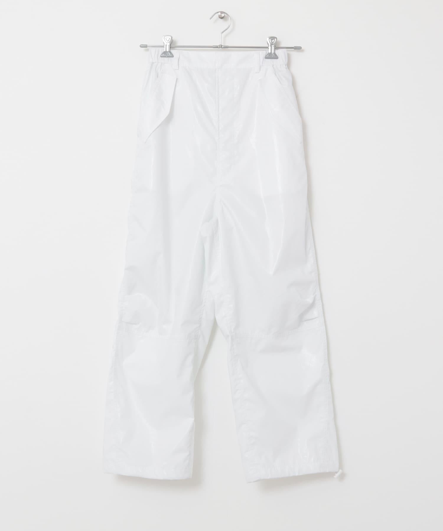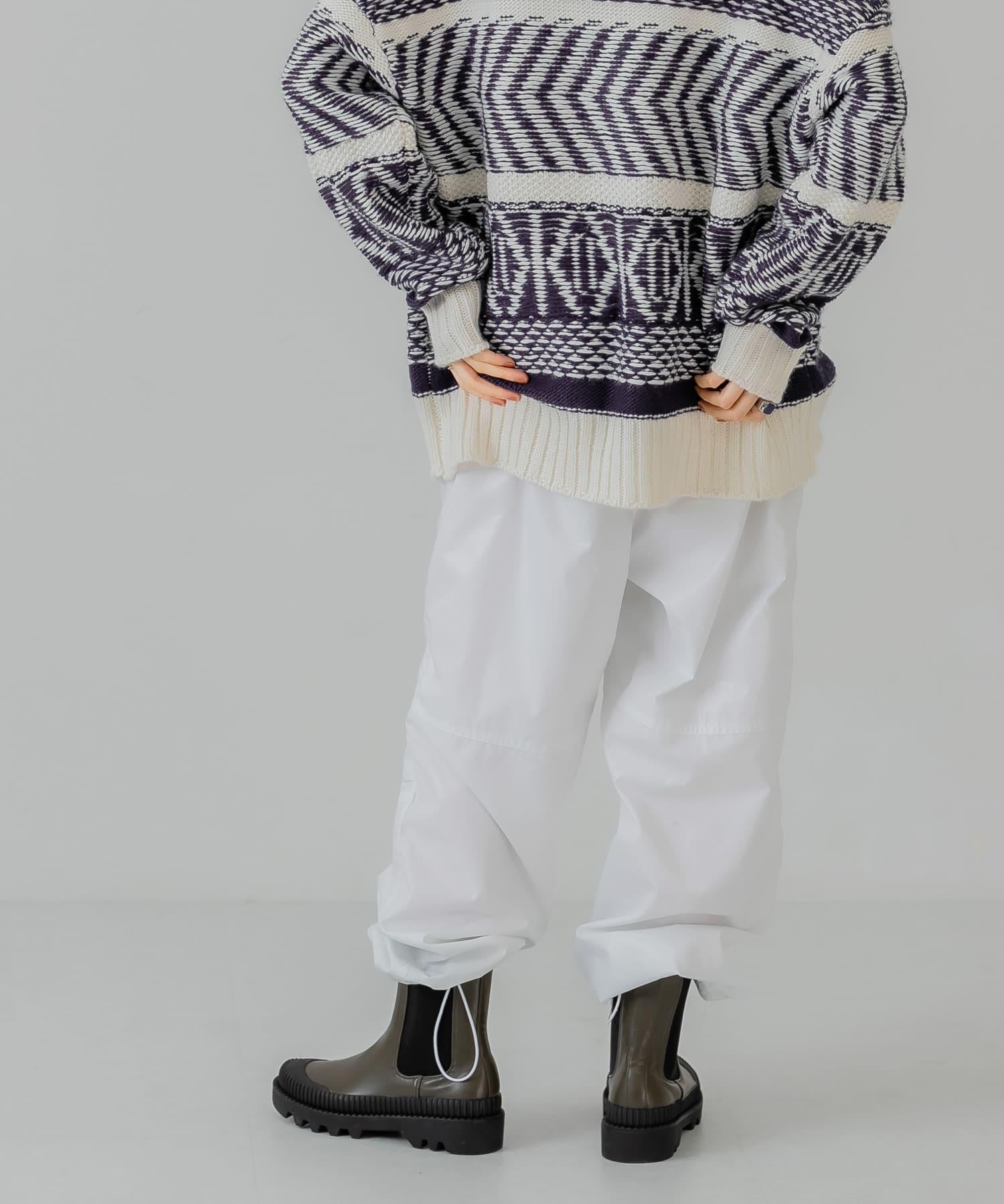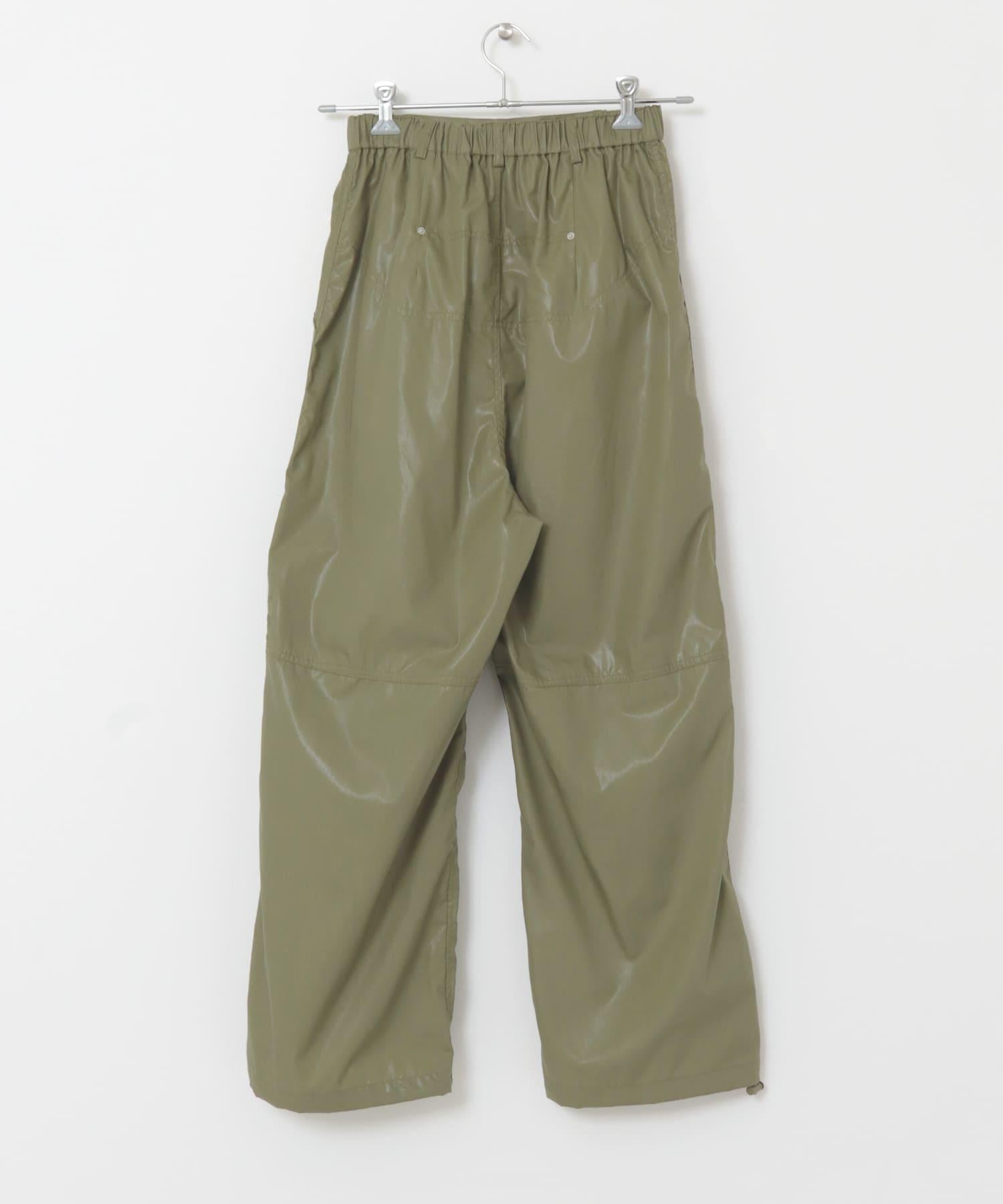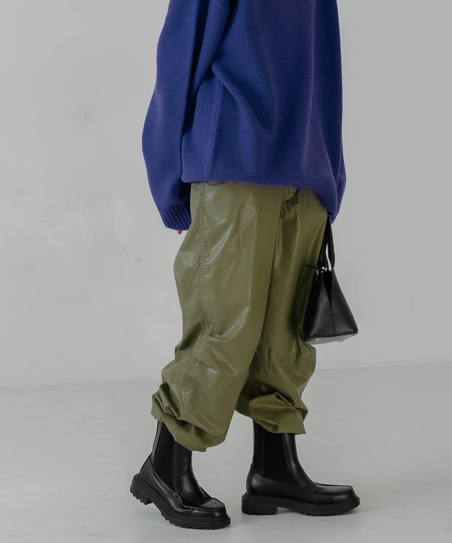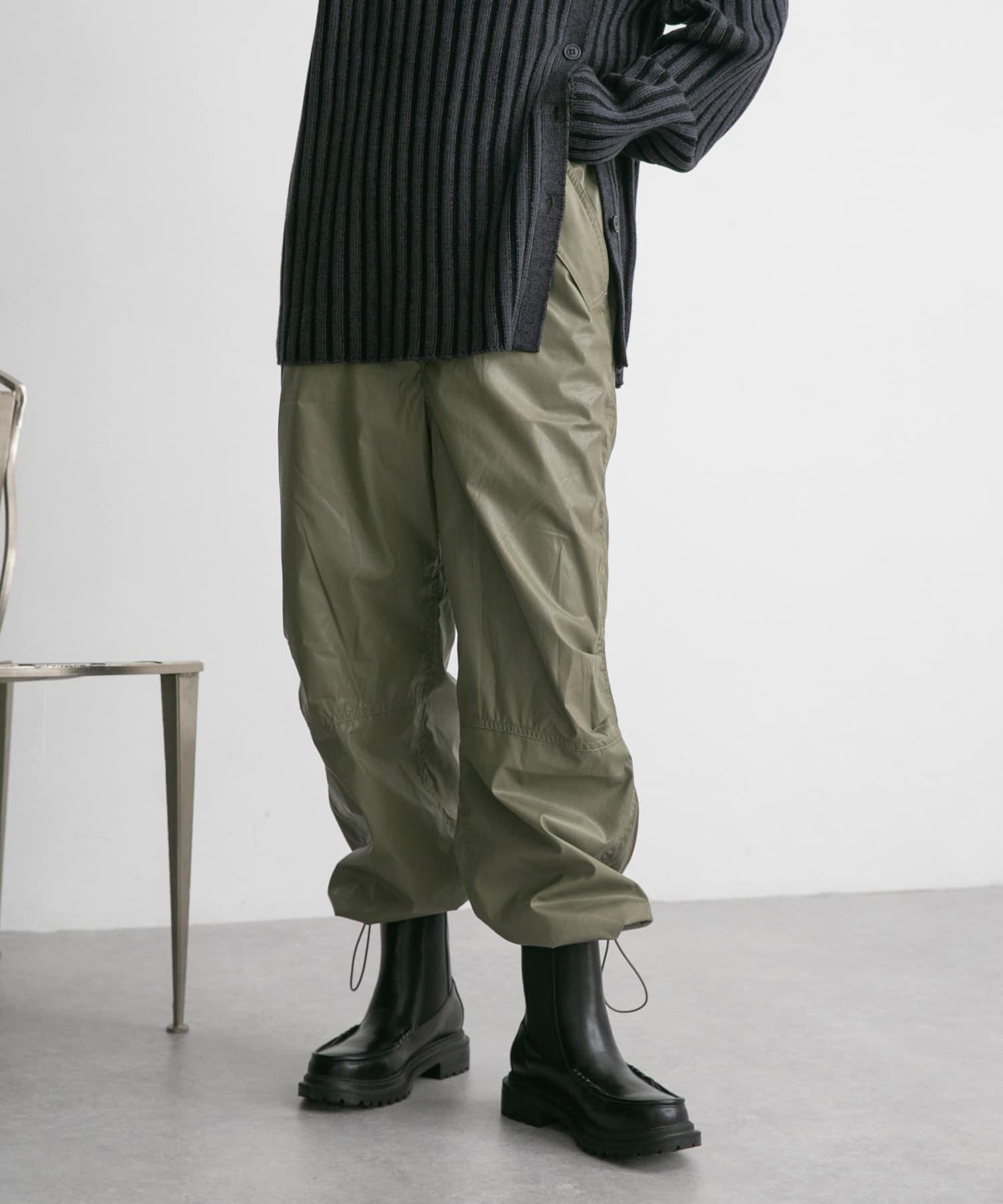 顧名思義,這款長褲充滿了工作味道,為您的著裝增添了一份休閒感。輕薄的棉質面料上塗有樹脂,使其具有彈力感。下襬採用抽繩規格,可根據心情更換。這款單品是針織衫的絕配。