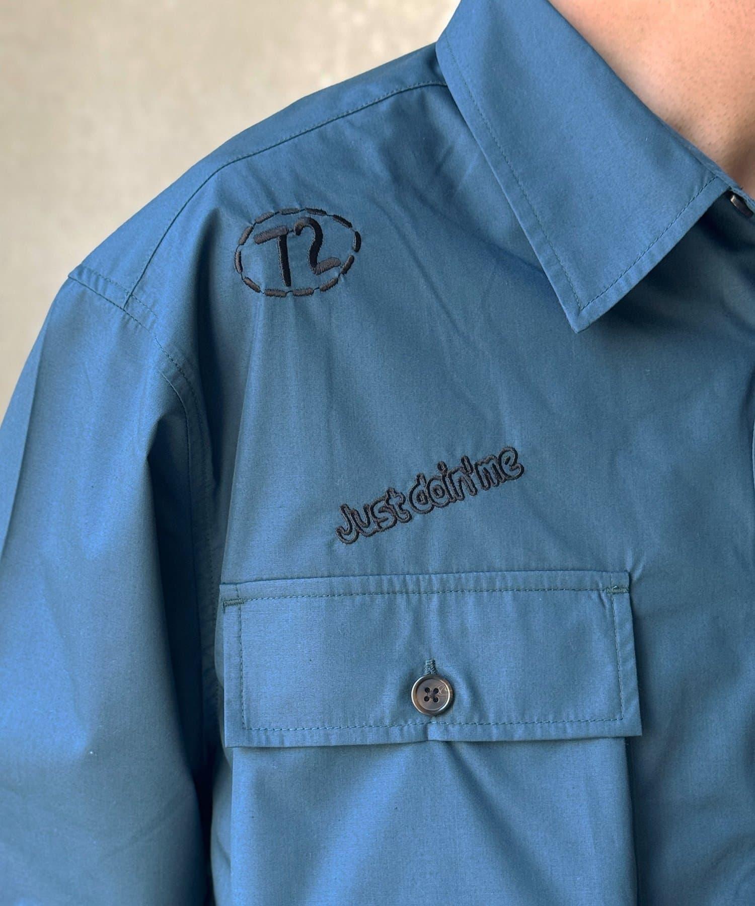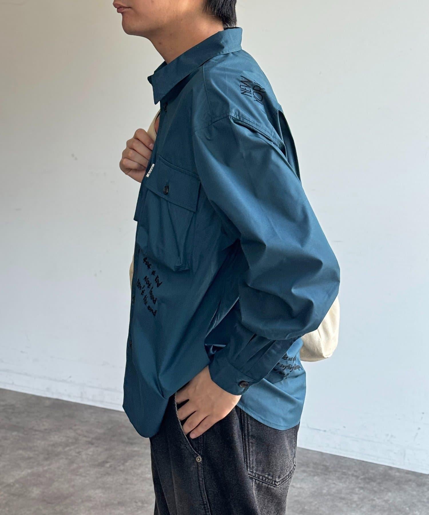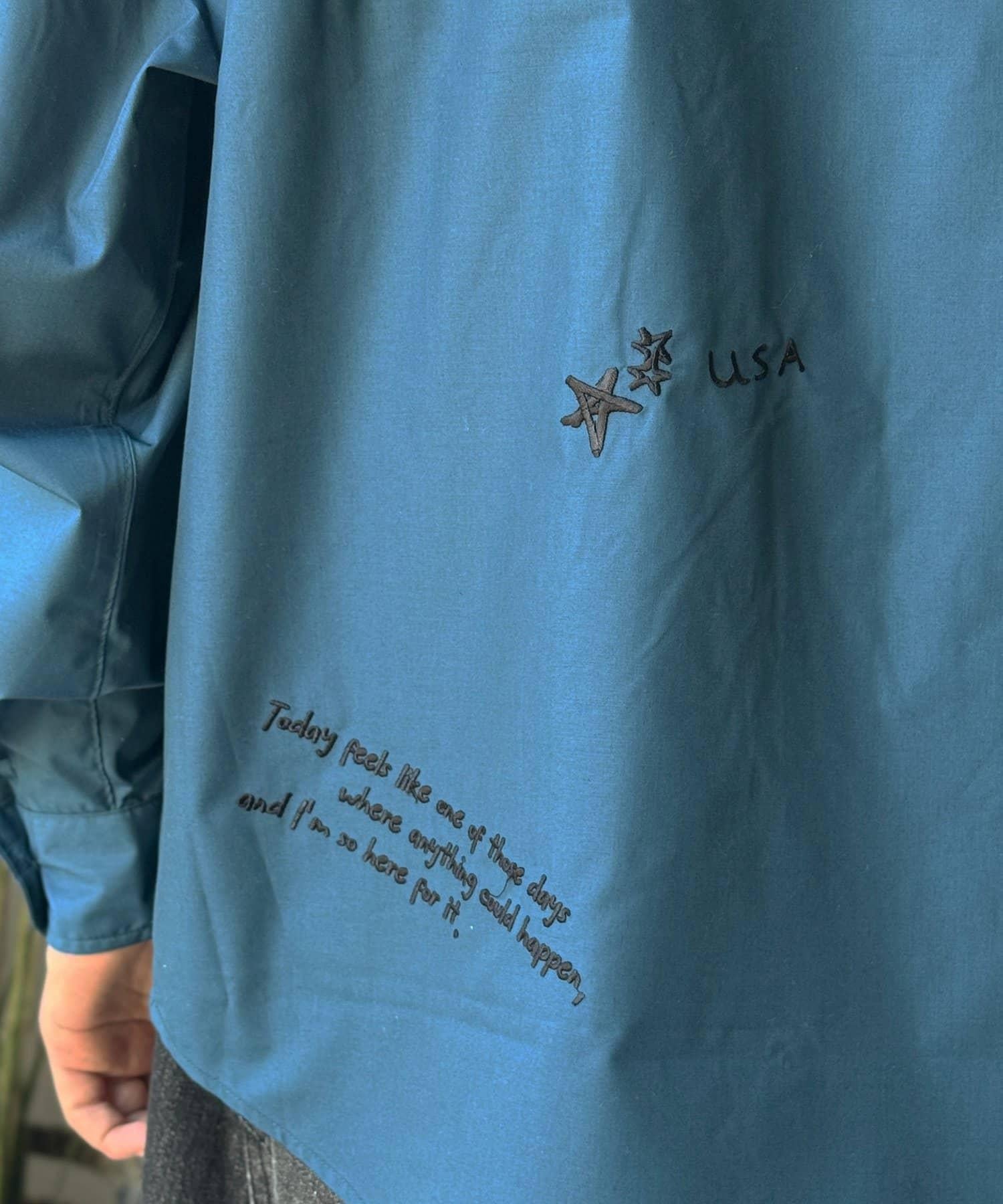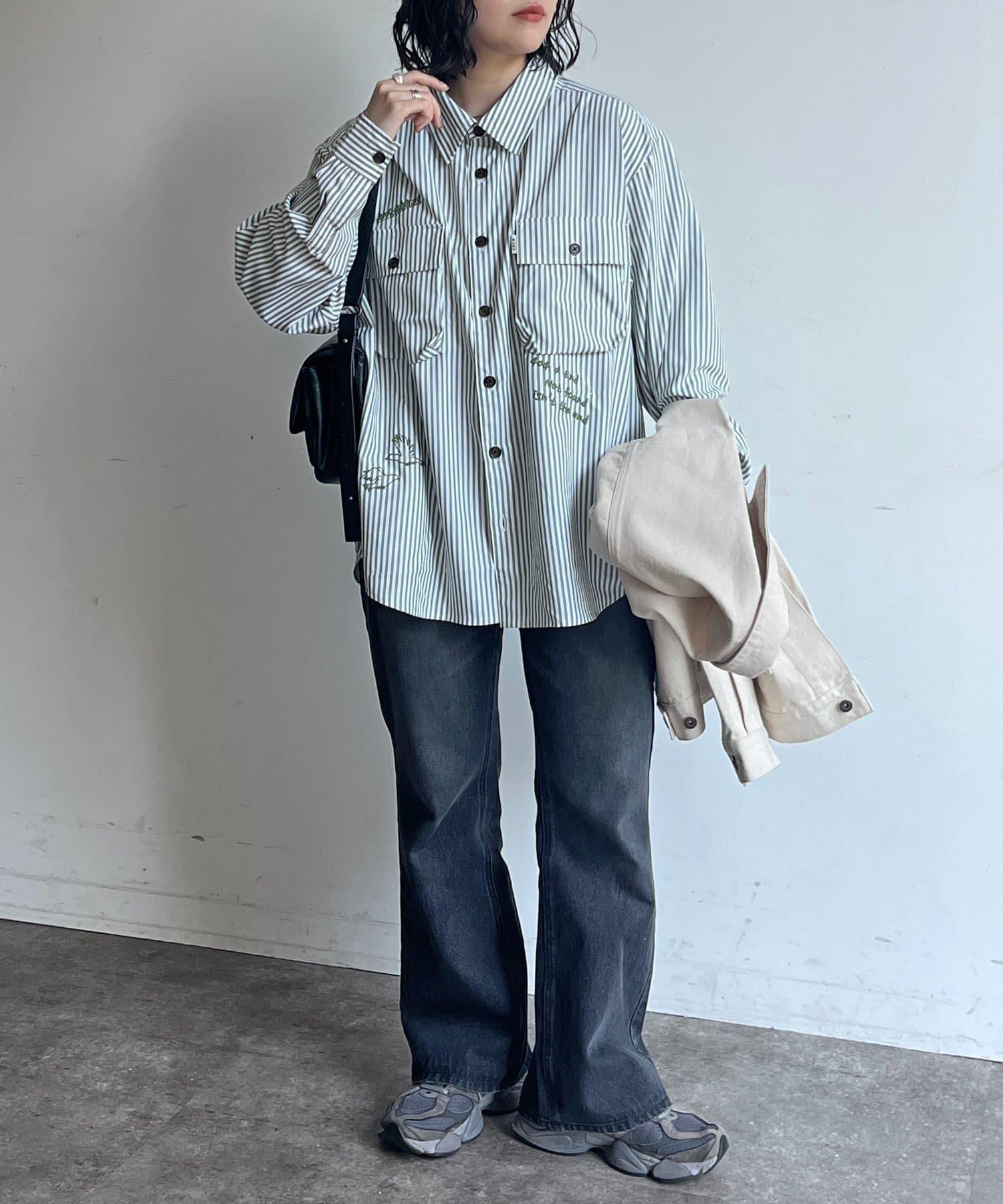 寬鬆的襯衫上繡有俏皮醒目的塗鴉圖案。